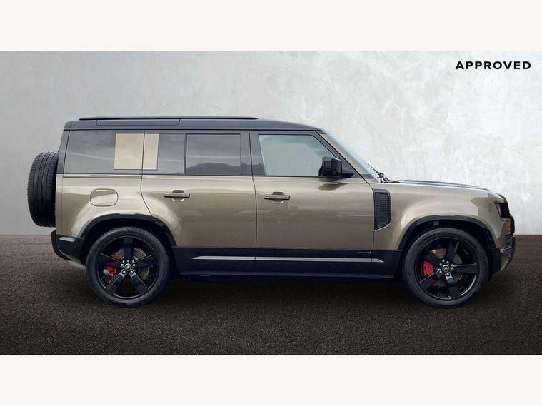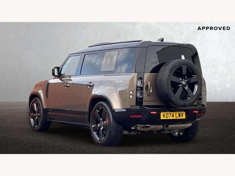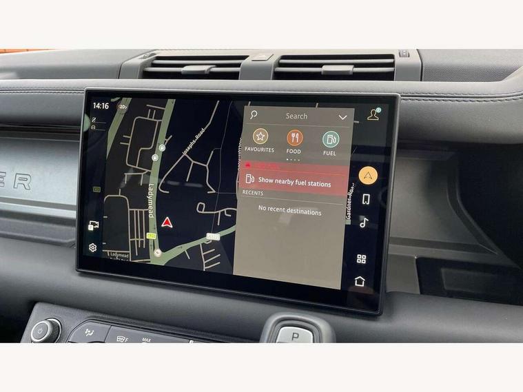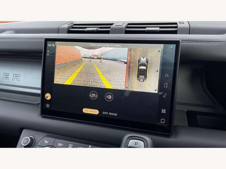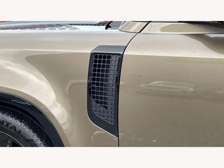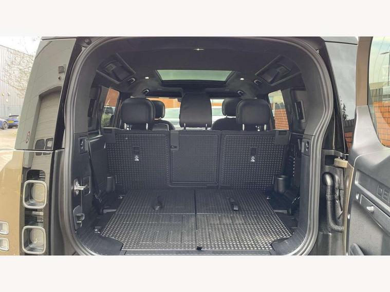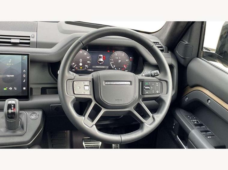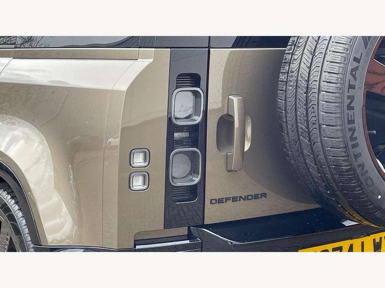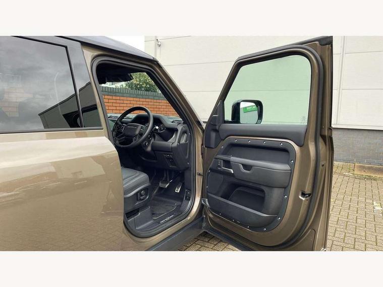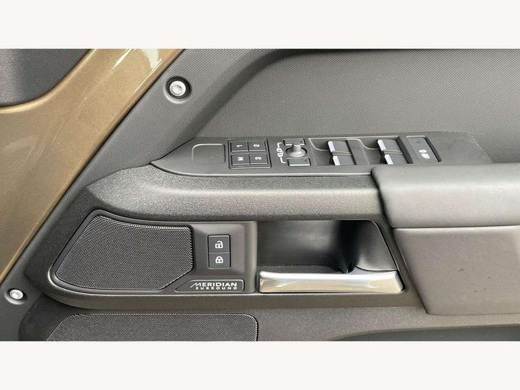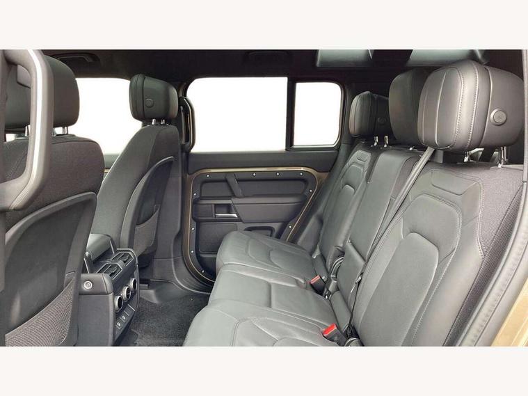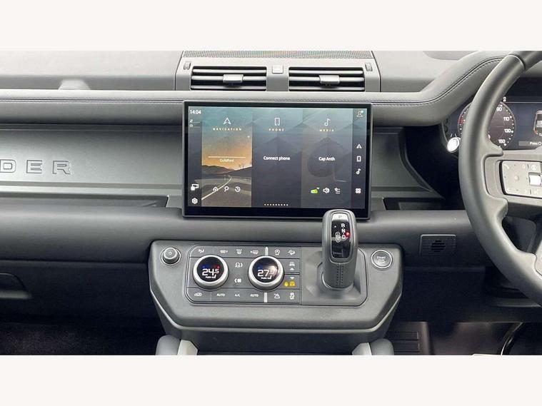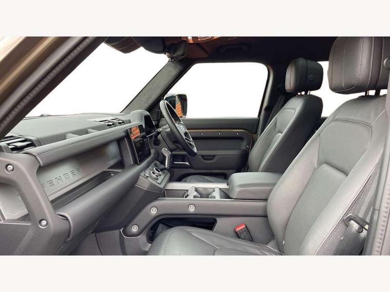 1 x USB-C (power only) & 1 x USB-C (power & data) in Row 1, 2 x USB-C in Row 2, 11.4" touchscreen, 2 x USB-C in Row 3, 360 degree parking aid, 3D Surround Camera with 360 View, 180 Rear View, Front Traffic Detection, Forward Vehicle Guidance, Tow Hitch Assist and clear sight Ground View, Adaptive cruise control, Android Auto, Apple CarPlay, Blind spot assist, Bluetooth system, Brake pad wear indicator, Clear exit monitor, Connected navigation pro, Driver condition monitor, Electric power assisted steering (EPAS), Head up Display, Interactive driver display, Lane keep assist, Push button start, Rear collision monitor, Rear traffic monitor, Traffic sign recognition with adaptive speed limiter, Trip computer, Wade Sensing, Wireless device charging, 8 speed automatic transmission, Adaptive dynamics, All terrain progress control, All wheel drive system, Configurable Terrain Response, Electronic active differential with brake torque vectoring, Electronic air suspension, Terrain Response 2, Twin speed transfer box, DAB Radio (Digital Audio Broadcasting), Meridian 700w surround sound audio system with 15 speakers, Pivi pro connected, Automatic headlight levelling, Automatic headlights, Centre high mounted stop light, ClearSight interior rear view mirror, Darkened LED tail lights, Electric heated/power fold door mirrors with approach lights and auto dimming driver side, Electric windows with one touch open/close and anti-trap, Follow me home lighting, Front fog lights, Heated rear window with timer, Heated windscreen, Illuminated metal treadplates with brand name script, Matrix LED headlights with signature DRL, Privacy glass, Puddle lights, Rain sensing windscreen wipers, Rear fog lights, Rear side wing doors, Rear wiper, Side hinged tailgate, Sliding panoramic roof, Standard tail door, Trailer stability assist, X badge, 12V power socket in loadspace, 14 way heated and cooled electric memory front seats with 4 way manual winged headrests, 2 seat bench in 3rd row, 3 seat bench in 2nd row, 60:40 load through climate rear seats with winged headrests, manual slide and recline and centre armres, Alpine lights, Bright metal pedals, Configurable cabin lighting, Domestic plug socket, Durable rubber cabin flooring, Durable rubber loadspace flooring, Electric reach + rake adjustable steering column, Electrically adjustable steering column, Footwell lights, Front head restraints, Front passenger isofix child seat attachment, Heated steering wheel, Loadspace cover, Loadspace Hook, Multifunction steering wheel, No flat load floor storage, Overhead stowage for sunglasses, Rear headrests, Rear ISOFIX, Rear reading lights, Signature interior upgrade, Single front passenger seat, Soft close tail door, Storage glovebox, Sunvisors with illuminated vanity mirrors, Twin front cupholders, Family Comfort Pack - Defender 7 Seat, Non-smoker package, Online pack with data plan - Defender, 7 three point seatbelts, ABS, Brake hold function, Cornering brake control (CBC), Cross car beam in metallic grey powder coat brushed finish, Customer configurable autolock, Driver and passenger airbags, DSC - Dynamic Stability Control, EBD - Electronic brakeforce distribution, Electric parking brake (EPB), Emergency brake assist, Emergency braking, ESP + traction control, Front airbags with passenger seat occupant detector, HDC - Hill descent control, Hill launch assist, Low traction launch, Orange brake calipers, Power operated child locks, Remote for (e-Call, Optimised assistance call, InControl app, Climate, beep and flash and door), RSC - Roll stability control, Seat belt reminder, TPMS (Tyre pressure monitoring system), Alarm, Immobiliser, Intrusion sensor, Keyless entry, Locking wheel nuts, Secure tracker pro,
