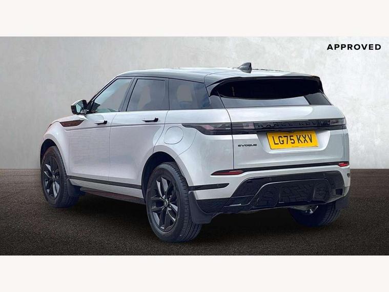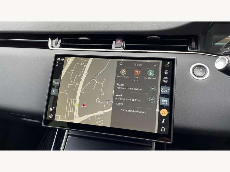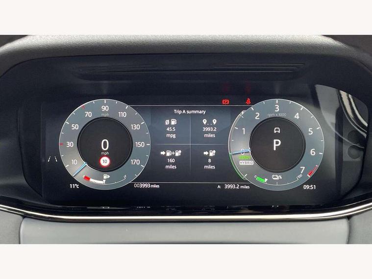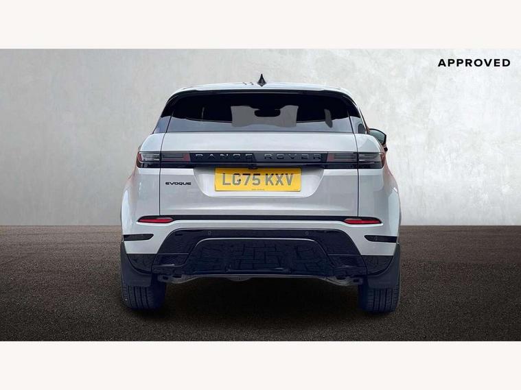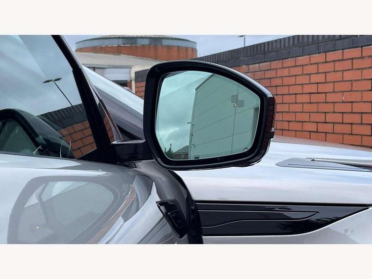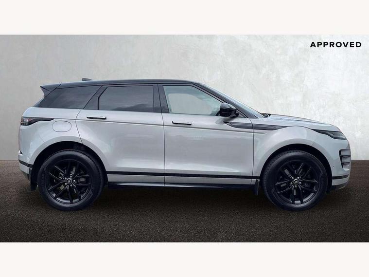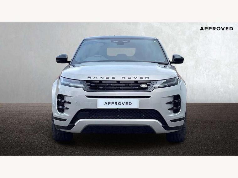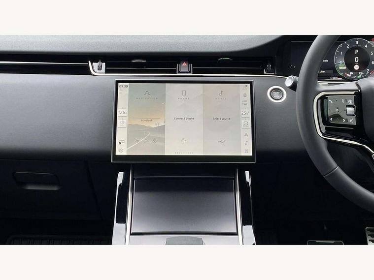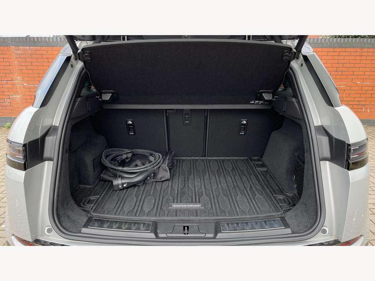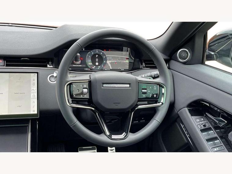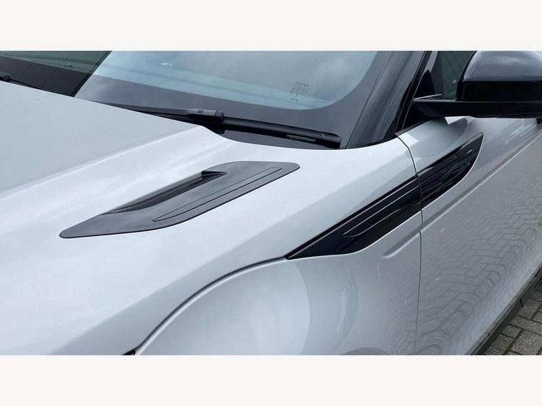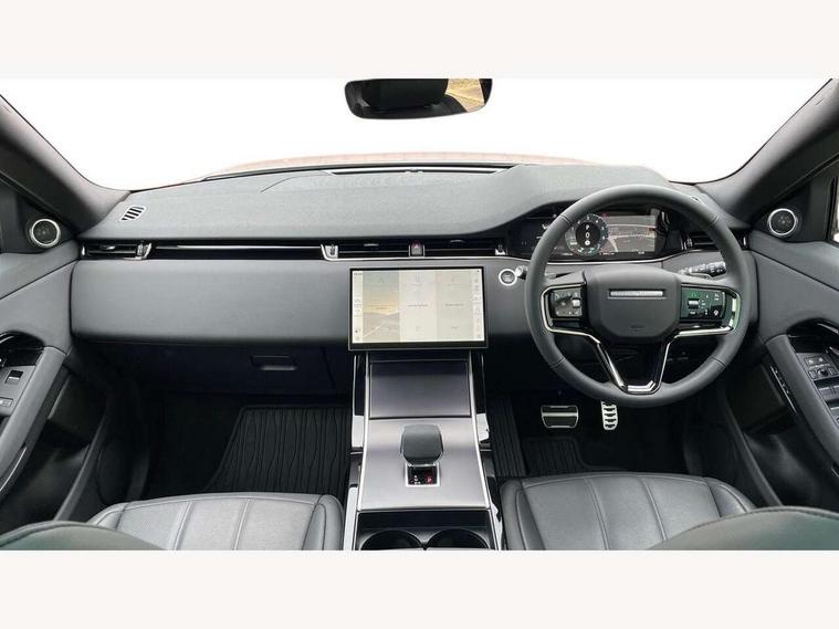 11.4" touch screen, 3D 360 degree surround camera with wade sensing, Adaptive cruise control, Android Auto, Apple car play, Blind spot assist, Bluetooth connectivity, Brake pad wear indicator warning light, Driver condition monitor, eCall emergency system, Eco mode, Electronic power assisted steering (EPAS), Front and rear parking aid, InControl remote, Interactive driver display, Land Rover InControl apps, Lane keep assist, Pivi pro connected includes diamond pivi variant, smart settings, connected navigation pro, nuance speech licence, Powered tailgate/boot lid, Rear collision monitor, Rear traffic monitor, Tailgate, Traffic sign recognition with adaptive speed limiter, Voice control system, Wireless device charging, All terrain progress control, Electric rear axle drive, Home charging cable, Large fuel tank, Passive suspension, Public charging cable, Terrain Response 2, Digital Audio Broadcast radio-DAB, Meridian sound system with 400W subwoofer and 11 speakers, Steering wheel mounted controls, Acoustic laminated windscreen, Auto dimming interior rear view mirror, Auto headlights, Auto high beam assist, Automatic headlight levelling, Black contrast roof, Electric windows with one touch open/close and anti trap, Fixed panoramic sunroof with powered sunblind, Flush deployable exterior door handles, Front and rear recovery eyes, Heated rear window with timer, Heated washer jets, Heated windscreen, LED headlights with signature DRL and LED tail Lights, Metallic paint, Power fold, auto-dimming, heated door mirrors with approach lights and auto dimming driver side, Privacy glass, Rain sensing windscreen wipers, Rear animated directional indicators, Rear fog lights, Rear side wing doors, Rear wiper, Tailgate spoiler, Third brake light, Winter wiper park position, 12 way driver memory and 10 way passenger electric front seats with 2 way manual headrest + 4 way lumbar support, 40:20:40 split folding rear seats with centre headrest and armrest, Bright metal pedals, Cabin lighting, Carpet mats, Chrome tread plates with range rover branding Includes stainless steel loadspace scuff plate with etched graphic, Customer configurable single point entry, Front and rear cupholders, Grained Leather upholstery, Heated front seats, Heated steering wheel, Isofix system on outer rear seats, Manually adjustable steering column, Overhead lighting console, Overhead stowage for sunglasses, Passive front head restraints, Rear air vents, Rear head restraints, Satin chrome gearshift paddles, Single passenger seat, Standard steering wheel with Moonlight Bezel, Sunvisors with illuminated vanity mirrors, Twin sliding front centre armrest, Two zone climate control, Black exterior styling pack - Evoque, Power socket pack 2 - Evoque, 3 rear 3 point seatbelts, Anti-lock braking system (ABS), Black brake calipers, Brake hold function, Customer configurable autolock, DSC - Dynamic Stability Control, Electronic brake force distribution, Electronic parking brake, Electronic traction control, Emergency braking, Front and rear seatbelt reminder, Hill descent control, Hill launch assist, Low traction launch, Occupant protection assist, Passenger seat occupant detector, Power operated child locks, Roll stability control, Six airbags - Driver and passenger airbags/driver knee airbag/front side airbag and curtain airbags, Torque vectoring brake, Tyre pressure monitoring system, Alarm, Immobiliser, Intrusion sensor, Keyless entry, Locking wheel nuts, Secure tracker pro, Black brushed aluminium finisher, 19" gloss black alloy wheels - Style 5136, All season tyres, Tyre repair system,