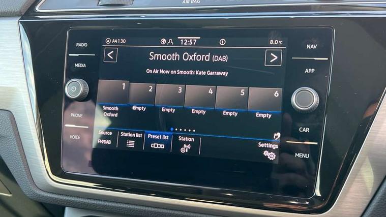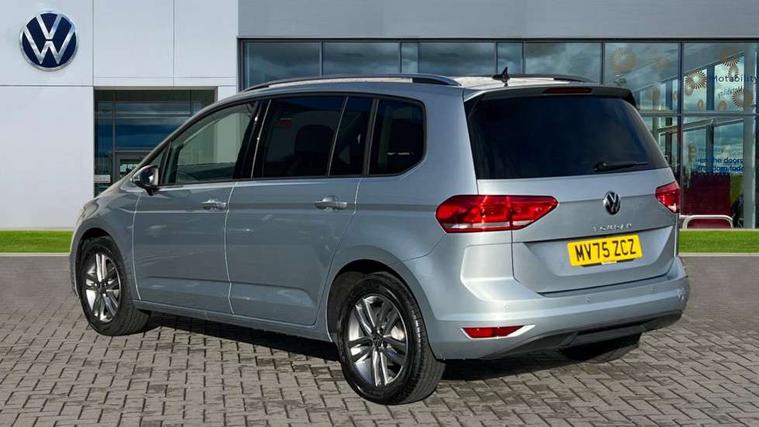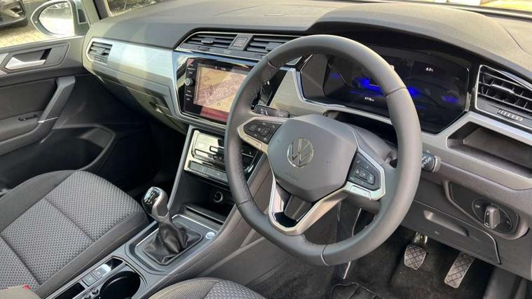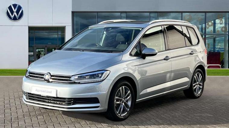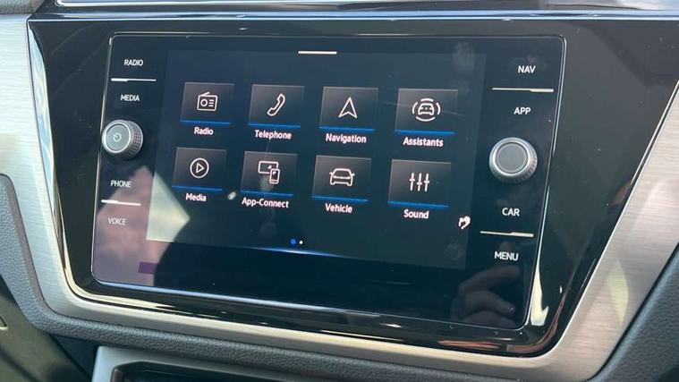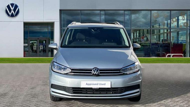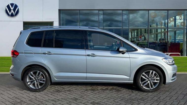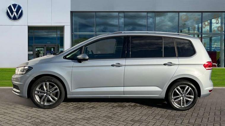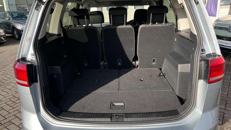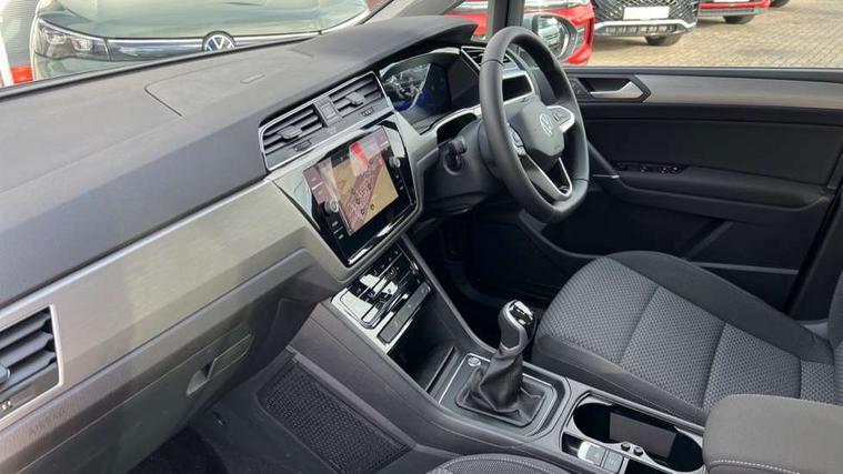 Adaptive cruise control, Audible lights on warning, Discover media navigation touchscreen navigation/radio system with streaming and internet, Driver alert system, Driver profile selection, Dynamic road sign display, Electric tailgate, Electronic odometer, Emergency services call system, Extended, crash-active and proactive Pedestrian and cyclist monitoring, External temperature gauge, Front parking sensors, Lane change system side assist and rear traffic alert, Lane keep assist, Misfuelling protection device, Mobile pairing with SMS function, Mobile phone interface with inductive charging, Rear view camera displayed via vehicles audio system display, Rev counter with fuel gauge, Side scan, Speed limiter, Speed sensitive power steering, Stop/start system, Think blue trainer driver tips and journey analysis, Trip and service interval display, We connect' and 'We connect plus' functionality, Petrol Particulate Filter, Rear stabiliser bar, XDS electronic differential lock, 4x20 watt output, 8 Speakers, Audio Connectivity System, DAB Digital radio, External USB-C data socket with increased charging performance - 2 USB sockets 45W, MP3/WMA compatability, SD card slot, Title and cover art display, USB connection, Aerial integrated into side window, Auto dimming door mirrors, on driver side, surround lighting and front passenger side mirror lowering function, Auto dimming rear view mirror, Automatic coming/leaving home lighting function, Body colour bumpers, Body colour door handles, Body colour door mirrors with integral indicators, Door mirrors with memory function, Dusk sensor + auto driving lights, Electric folding door mirrors, Electric heated + adjustable door mirrors, Electric, glass sliding/tilting panoramic sunroof including integrated roller blind and LED lighting around aperture, Front and rear electric windows, Fully galvanised body, Gloss black finish B pillar, Green tinted heat insulating glass, High level third brake light, Rain sensor, Rear fog lights, Rear side wing doors, Rear tinted glass from B-pillar backwards approx 65% tinted, Rear wash/wipe with intermittent wipe setting, Removable engine badge, Silver roof rails, Tailgate wiper- reverse gear activation, Twin chrome exhaust tailpipes, Volkswagen roundel, Windscreen wipers intermittent wipe, 12V power point for Row 2, 12V socket in luggage compartment, 2 individual fold flat 3rd row seats, 2 three point seatbelts in 3rd row, 2nd row centre armrest, 2nd row centre seat converts into table, 3 single slide/fold/removable 2nd row seats, 3 spoke steering wheel, 3x3 point seatbelts on 2nd row with height adjust on outer seats, 4 boot load lashing points, 4 way adjustable front head restraints, 5 headrests, Activated charcoal canister for intensified evaporation system, Air care climatronic 3 zone air conditioning system with rear air conditioning control panel, Chrome plated radiator grille inserts, air vent surrounds and light switch surrounds, Driver and front passenger under seat drawer, Dust/pollen filters, Foldable front passenger seat backrest with load through function, Front and rear reading lights X 2, Front centre armrest with storage compartment, Front comfort seats with lumbar support, Front cupholders x 2, Front passenger seat height adjust, Front seat storage pockets, Front seatback folding tables, Height adjustable driver's seat, Height/reach adjust steering wheel, Illuminated glovebox, Instrument lighting white adjustable panel illumination with red night time illumination, Interior light with delay, Isofix on 2nd row outer seats, Isofix on 3rd row seats, Large storage compartment in roof console, Lasano cloth upholstery, Leather multifunction steering wheel with gear knob, Leatherette on rear of front seats, Low tunnel 2nd row seat, Luggage compartment lighting, Media box in dashboard on passenger side, Multi storage in passenger/luggage areas, Multi-function centre console with storage facilities, Retractable luggage cover, Split folding rear seat backrests, Storage bins on all doors, Sun visors with illuminated vanity mirrors, Family Pack - Touran, Winter pack without heated washer jet - Touran, 3 point height adjustable front seatbelts, Auto hold function, Automatic post collision braking system, Door open warning reflectors, Driver/Front Passenger airbags, Drivers knee airbag, EDL + ASR, Electronic parking brake, Energy recovery system, ESC with ABS, First aid kit, Front and rear (row 2) curtain airbags, Front assist with autonomous emergency braking, Front seat side impact airbags, Front seatbelt pretensioners, Front/rear disc brakes, Hill hold control, Hydraulic Brake Assist (HBA), Loose wheel warning function, Manual passenger airbag deactivation function, Pre crash preventive occupant protection, Proactive passenger protection system with front and side assist, Rear child proof door locks, Road sign recognition, Seatbelt warning lamp and buzzer, Traction control, Two tone horn, Warning triangle, Alarm with remote central locking and interior protection, Electronic engine immobiliser, Keyless Access Keyless locking and starting system with SAFELOCK, New brushed design decorative inserts in dash and front doors, 17" Salvador alloy wheels with anti-theft wheel bolts, 215/55 R17 self sealing tyres with low rolling resistance,