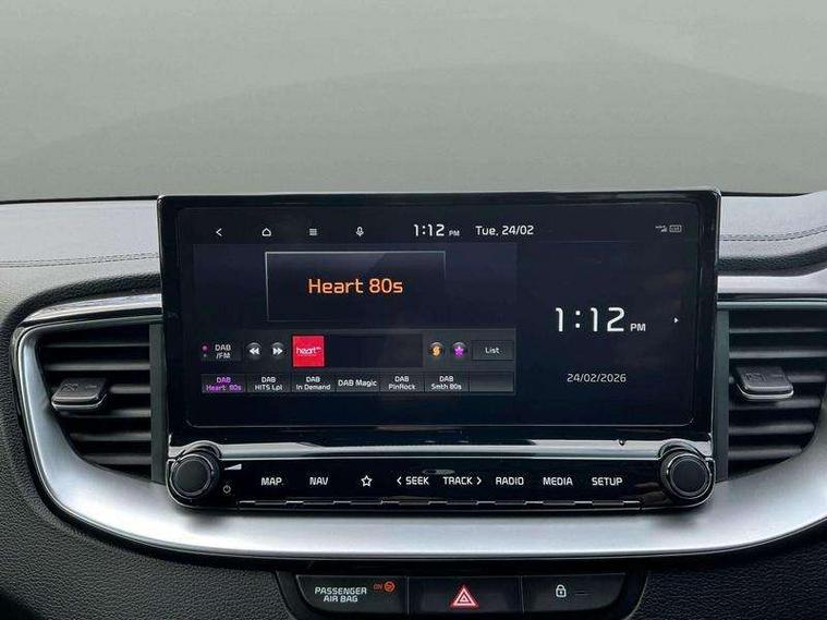 10.25" touchscreen satellite navigation, 4.2" supervision colour cluster display, Apple car play/Android Auto with voice control, Bluetooth with Voice Recognition & Music Streaming, Drive mode select (Normal and Sport), Driver attention warning + (DAW) with leading vehicle departure warning, Emergency call service, Emergency stop signalling system, Forward Collision-Avoidance Assist (FCA) - City/Pedestrian/Cyclist, Kia connect UVO, Lane Following Assist (LFA), Lane keep assist, Manual speed limit assist, Motor driven power steering, Rear parking sensor, Reversing camera system with dynamic guidelines (Integrated into centre fascia screen), Smart cruise control with stop/go functionality, Trip computer, Intelligent Stop and Go, 6 speaker audio system, DAB Radio with MP3, Illuminated USB ports, Steering wheel mounted controls, USB Fast Charger in Front Centre Console, USB type A port, All-round Electric Windows with Front Auto Up & Down Function, Auto dimming rear view mirror, Automatic defog system, Automatic headlights control, Body colour bumpers, Body colour exterior door handles, Body coloured and dark chrome rear skid plate, Body coloured side sill mouldings, Dark chrome window surround, Electric adjustable/heated/folding door mirrors with LED Indicators, Heated rear window with timer, High beam assist, High gloss black and dark chrome radiator grille, High gloss black door mirrors, High Gloss Black rear spoiler - roof, LED daytime running lights, LED front fog lights, LED Headlights, LED High-mounted Brake Light, LED honeycomb rear light, LED rear combination lights, LED rear fog light, Privacy glass (rear side windows and tailgate), Rain sensing front wipers, Rear side wing doors, Rear wash/wipe, Satin chrome dual exhaust trim, Tinted glass, Wide view drivers door mirror, Windscreen Washer Level Warning, 1 x Front 12V socket, 12V power socket in luggage compartment, 3 seat bench in 2nd row, 3 x passenger assist grips, 60/40 split folding rear seat, All-round height adjustable headrests, Aluminium pedals, Black headlining, Centre console storage box/armrest, Cloth/faux leather upholstery, Cupholders in centre console, Cupholders in rear armrest, Dash illumination dimmer switch, Door courtesy lamps, Driver & Front Passenger Sunvisors with Vanity Mirror Illumination & Ticket Holder, Driver + front passenger electric lumbar support, Driver's seat height adjuster, Dual Height Luggage Area Floor, Dual zone automatic air conditioning, Faux leather door centre trim, Front and rear door storage, Front cabin map light with sunglasses case, Front Passenger Seat Height Adjuster, Front seat back pockets, Heated front seats, Heated steering wheel, Interior door lock/unlock function, ISOFIX Child seat top tethers and anchor fixings, Leather D-Cut steering wheel, Leather handbrake, Luggage area light, Luggage area parcel shelf, Luggage hooks, Rear centre armrest, Rear coat hooks, Single front passenger seat, Tilt/telescopic adjustable steering wheel, All round 3-point seatbelts, Anti-lock braking system (ABS), Brake assist system, Dual front side airbags, Dual horn, EBD - Electronic brakeforce distribution, Electronic parking brake, Electronic stability control (ESC) and vehicle stability management (VSM), Front passenger airbag cut-off switch, Height adjustable front seatbelts, Hill start assist control (HAC), Impact sensing auto door unlocking, Rear door child safety locks, Seatbelt reminder warning, Twin curtain airbags, Twin front airbags, Tyre pressure monitoring system, Alarm system, Engine Immobiliser & Deadlocks, Locking wheel nuts, Remote central door locking with fold away key, Speed sensitive auto door locking, Satin Chrome Fascia Trim, 17" GT-Line alloy wheels, Tyre mobility kit,