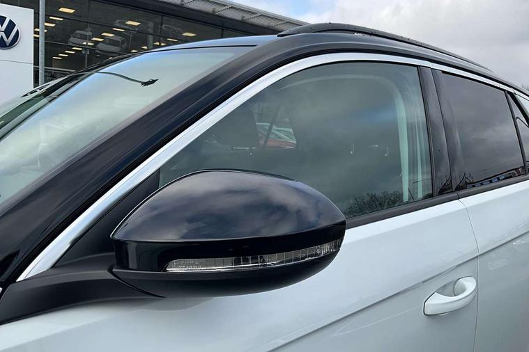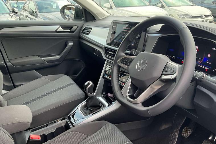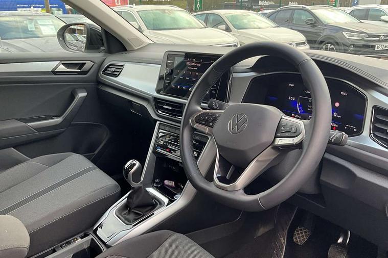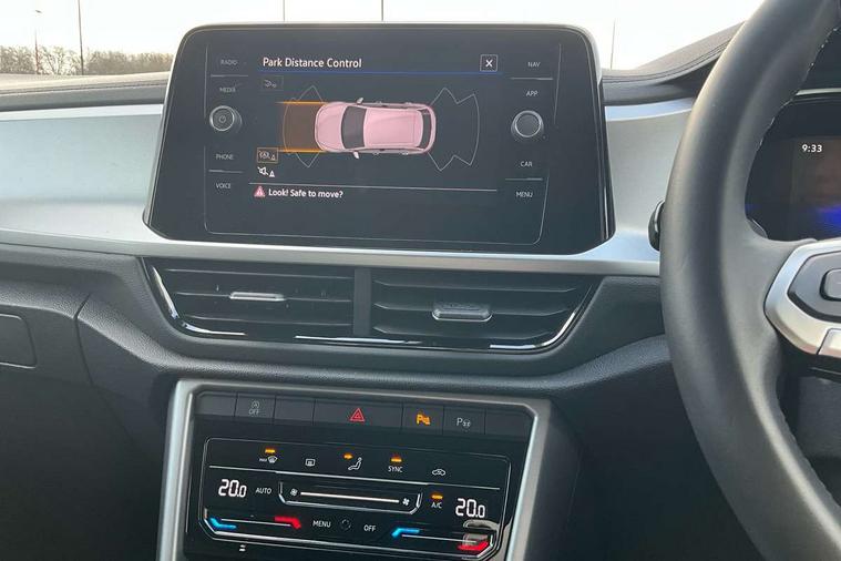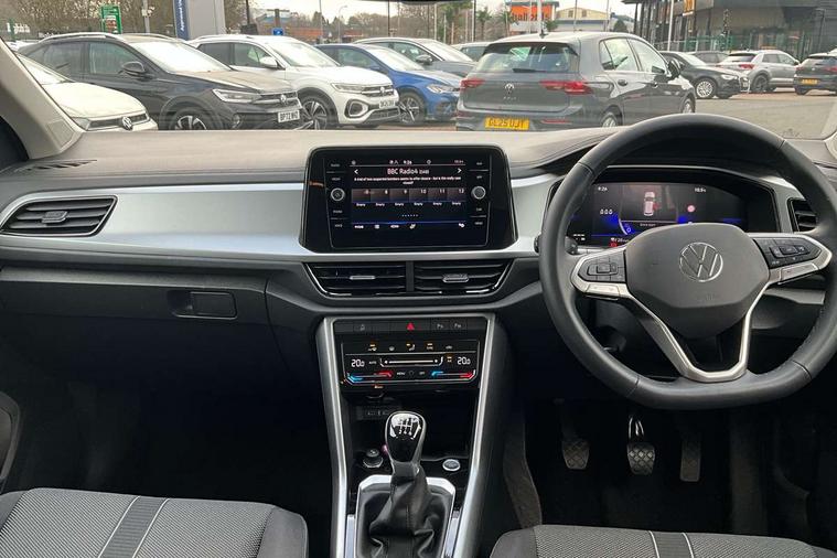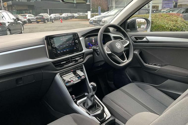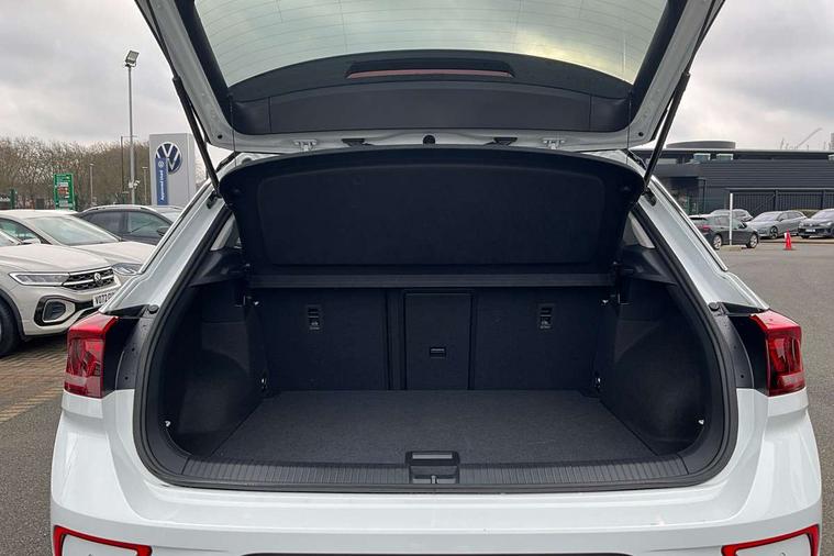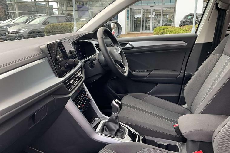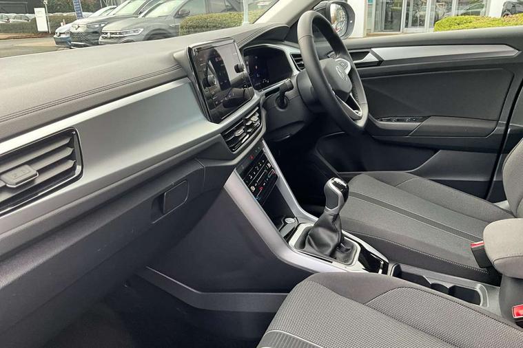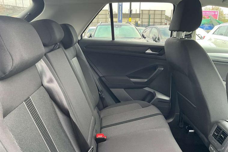 Advanced driver attention and drowsiness monitor, Dynamic road sign display, Emergency call service, Lane keeping system Lane Assist, Mobile phone interface, Modified key software - reduce switch off time for key status change to Long no motion, Online services, Park assist including front and rear parking sensors, Power assisted speed sensitive steering, Rear view camera, Service interval indicator, Tailgate/trunk lid release from outside, Think blue trainer driver tips and journey analysis, Warning sound and light for front seatbelts unfastened, Wireless app connect, Battery regeneration during braking, Front shock absorption, Rear shock absorption chassis with increased ride height, Start/stop function with battery regeneration, DAB Digital radio, Diversity antenna for FM reception, Music playback - MP3, WMA and AAC files, SD card slot, Simultaneous pairing of 2 compatible mobile devices, Title and cover art display, We Connect and We Connect Plus functionality, Auto dimming interior rear view mirror, Automatic hazard lights activation under emergency braking, Automatic headlight control with LED separate daytime running lights with coming/leaving home function, Black roof rails, Body coloured bumpers and radiator grille with chrome trim and front fog lamps with chrome bezel, Body coloured exterior mirror housings and door handles, Electrically adjustable and heated door mirrors, Extended roof spoiler, Exterior mirrors aspherical on driver side, convex on front passenger side, External USB type C socket and charging sockets, Front windscreen wiper with intermittent wipe and 4 position delay, Heated rear window, LED 3rd brake light, LED rear combination lamps, LED rear number plate lights, Power windows with comfort operation and circuit breaker, Privacy glass for rear side windows and rear window, Rain sensor, Rear exhaust tailpipe, Rear fog light on one side and reversing lights on both sides, Rear side wing doors, Rear wash/wipe with intermittent wipe setting, Remote electrically foldable door mirrors, puddle lights and reverse activated passenger's door mirror, 12V power socket in centre console, 3 rear head restraints, 3 seat bench in 2nd row, 4 load lashing points in luggage compartment, Air care climatronic air conditoning system with active combination filter and 2-zone temperature control, Black stitching for floor mats, Ceramique roof liner, Cloth upholstery, Door and side trim panel in cloth, Drawer under drivers seat, Driver/front passenger seat height adjustment, Front centre armrest, Front comfort sports seats, Front cupholders x 2, Front reading light, Front seat back storage pockets, Glove compartment door with light, Instrument lighting, white adjustable panel illumination, Interior ambient lighting and surround lighting, Interior light delay, Isofix child seat preparation, Leather gearshift handle, Load-through provision with cup holder when folded down ('Unsplit rear seat bench, split folding backrest, with centre armrest), Luggage compartment lighting, Lumbar support for driver's and front passengers seat, Non-folding front passenger seat backrest, Single front passenger seat, Storage compartment in left and right luggage area, Storage compartment in rear doors, Storage compartments in driver and front passenger doors, Sunvisors with illuminated vanity mirrors, Variable boot floor, height adjustable and removable, Driver assistance pack without proactive passenger protection - T-Roc Life/Match, 3 point height adj front seatbelts + pretensioners, 3 point seatbelts in outer rear with ECE label, ABS, Child locks on rear doors, City emergency braking and pedestrian monitoring, Driver and front passenger airbag with front passenger airbag deactivation, Driver and front passenger safety-optimised head restraints, Drivers seatbelt reminder, Electronic parking brake, Electronic Stability Control (ESC) inc EDL (Electronic Differential Lock) and ASR (Traction Control), Front and rear passengers curtain airbag system including front side airbags, Front disc brakes, Hill start assist, Predictive pedestrian protection, Rear disc brakes, Two tone horn, Tyre pressure loss indicator, Volkswagen roadside assistance, Alarm with interior protection, Keyless locking and starting system keyless access with safelock, Pewter matt decorative inserts for intrument panel, centre console and door panels at the front, Trims for alloy wheels,