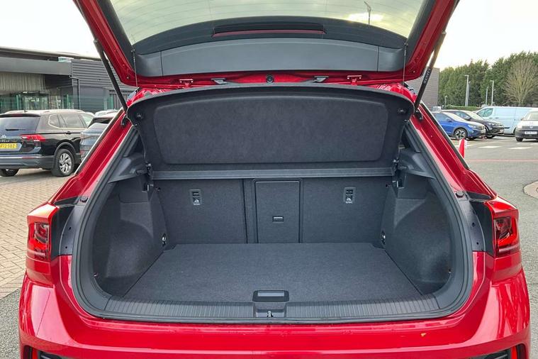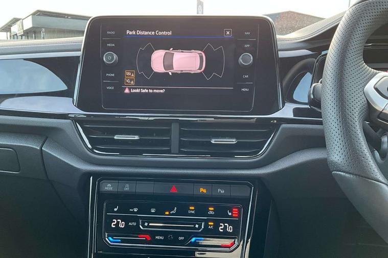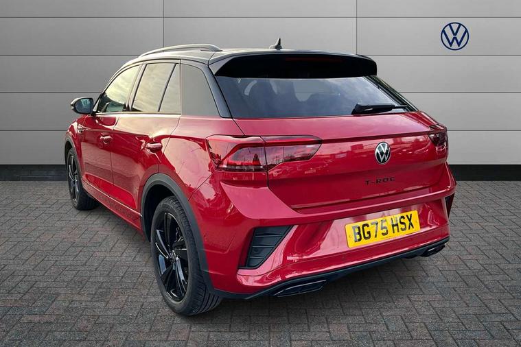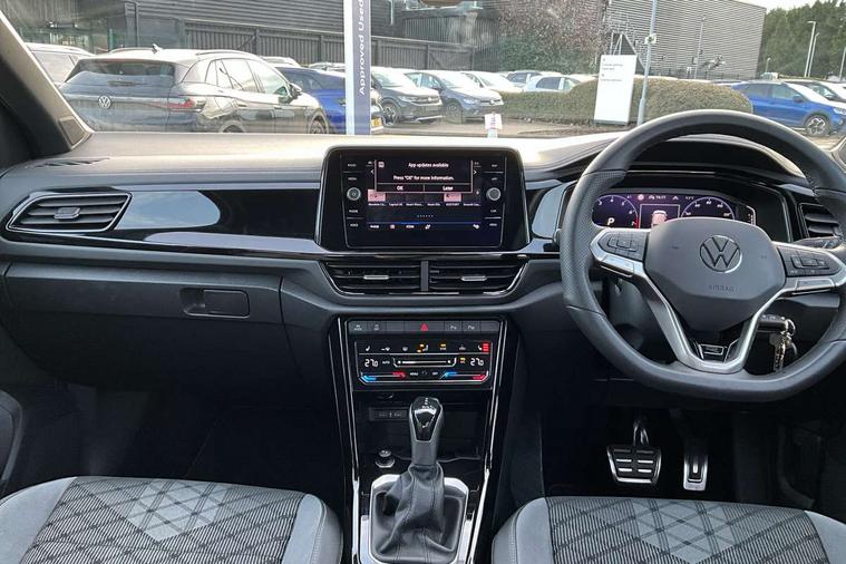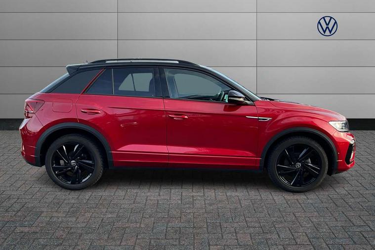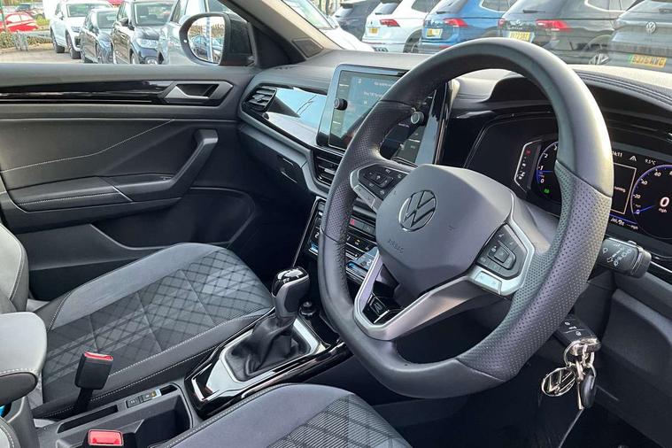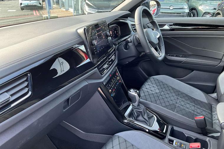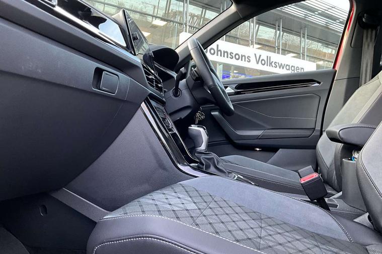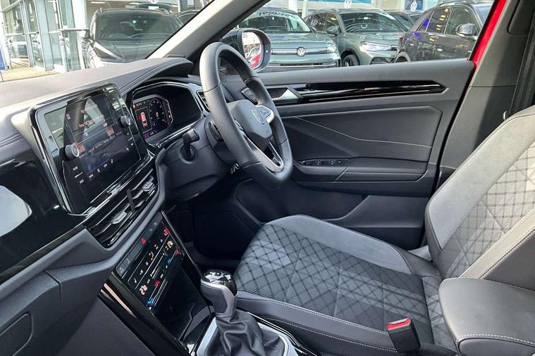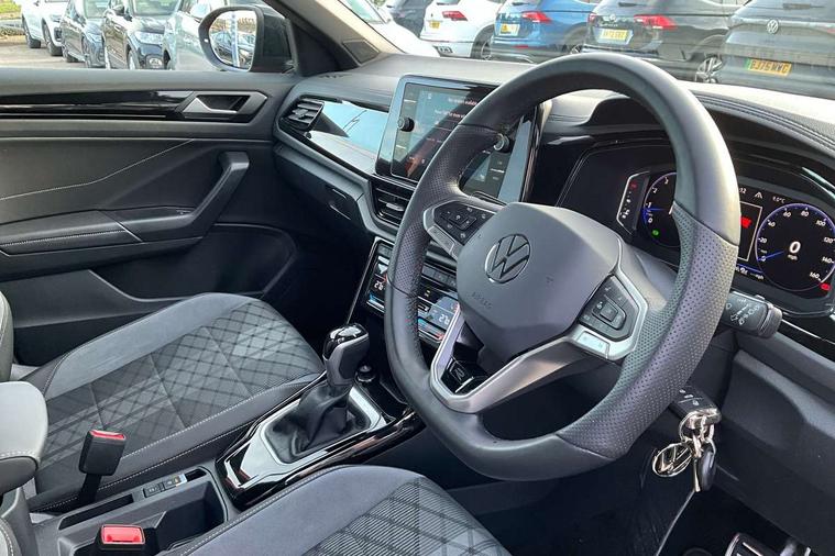 10.25" Digital cockpit pro, Advanced driver attention and drowsiness monitor, Emergency call service, Lane keeping system Lane Assist, Mobile phone interface, Modified key software - reduce switch off time for key status change to Long no motion, Online services, Park assist including front and rear parking sensors, Power assisted speed sensitive steering, Service interval indicator, Tailgate/trunk lid release from outside, Think blue trainer driver tips and journey analysis, Warning sound and light for front seatbelts unfastened, Wireless app connect, Battery regeneration during braking, Rear shock absorption chassis with increased ride height, Start/stop function with battery regeneration, DAB Digital radio, Diversity antenna for FM reception, Front and rear 6 speakers, Music playback - MP3, WMA and AAC files, Premium USB cable in choice of either Apple or Android smartphone compatibility, SD card slot, Simultaneous pairing of 2 compatible mobile devices, Title and cover art display, We Connect and We Connect Plus functionality, Auto dimming interior rear view mirror, Automatic hazard lights activation under emergency braking, Automatic headlight control with LED separate daytime running lights with coming/leaving home function, Dynamic cornering light, Electrically adjustable and heated door mirrors, Extended roof spoiler, Exterior mirrors aspherical on driver side, convex on front passenger side, External USB type C socket and charging sockets, Front windscreen wiper with intermittent wipe and 4 position delay, Heated rear window, Illuminated front grille, IQ LED matrix headlights, LED 3rd brake light, LED rear number plate lights, LED rear tail lights with dynamic turn signal, Light mode for poor weather, rain, fog or snow, Power windows with comfort operation and circuit breaker, R-Line design body coloured bumpers, Rain sensor, Rear exhaust tailpipe, Rear fog light on one side and reversing lights on both sides, Rear side wing doors, Rear wash/wipe with intermittent wipe setting, Remote electrically foldable door mirrors, puddle lights and reverse activated passenger's door mirror, 12V power socket in centre console, 3 rear head restraints, 3 seat bench in 2nd row, 4 load lashing points in luggage compartment, Air care climatronic air conditoning system with active combination filter and 2-zone temperature control, Artvelours cloth upholstery, Black roof lining, Chrome plated radiator grille inserts, air vent surrounds and light switch surrounds, Door and side trim panel with leatherette insert, Drawer under drivers seat, Driver seat height adjust, Driver's seat lumbar support, Front + rear carpet mats, Front centre armrest, Front comfort sports seats, Front cupholders x 2, Front footwell illumination, Front reading light, Front scuff plates with R Line logo, Front seat back storage pockets, Glove compartment door with light, Instrument lighting, white adjustable panel illumination, Interior ambient lighting and surround lighting, Interior light delay, Isofix child seat preparation, Leather gearshift handle, Leather wrapped multifunction steering wheel with paddle shift, Load-through provision with cup holder when folded down ('Unsplit rear seat bench, split folding backrest, with centre armrest), Luggage compartment lighting, Non-folding front passenger seat backrest, Passenger seat height adjuster, Passenger seat lumbar support, Single front passenger seat, Stainless steel pedals, Storage compartment in left and right luggage area, Storage compartment in rear doors, Storage compartments in driver and front passenger doors, Sunvisors with illuminated vanity mirrors, Variable boot floor, height adjustable and removable, Winter pack without heated windscreen washer jets - T-Roc, 3 point height adj front seatbelts + pretensioners, 3 point seatbelts in outer rear with ECE label, ABS, Child locks on rear doors, City emergency braking and pedestrian monitoring, Driver and front passenger airbag with front passenger airbag deactivation, Driver and front passenger safety-optimised head restraints, Drivers seatbelt reminder, Electronic parking brake, Electronic Stability Control (ESC) inc EDL (Electronic Differential Lock) and ASR (Traction Control), Front and rear passengers curtain airbag system including front side airbags, Front disc brakes, Hill start assist, Predictive pedestrian protection, Rear disc brakes, Two tone horn, Tyre pressure loss indicator, Volkswagen roadside assistance, Tool kit, Trims for alloy wheels, Tyre mobility kit including compressor and sealing foam,