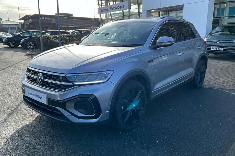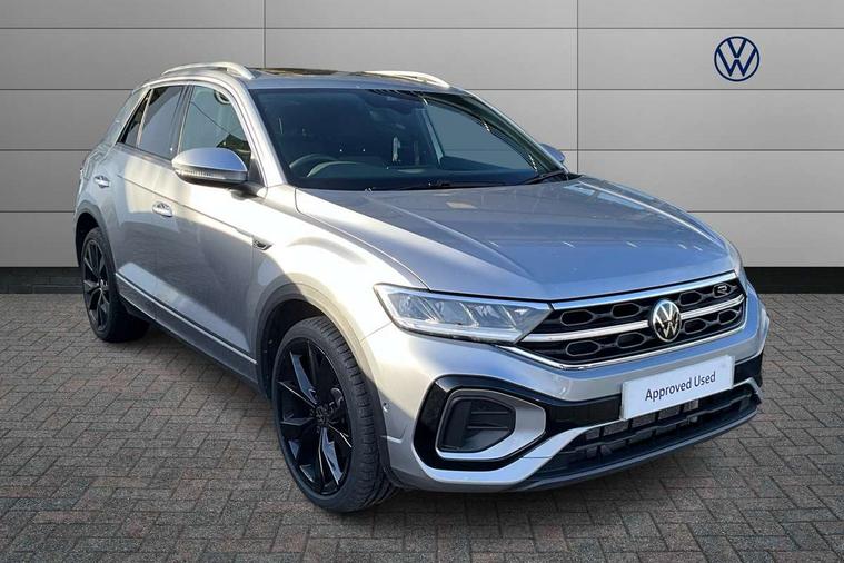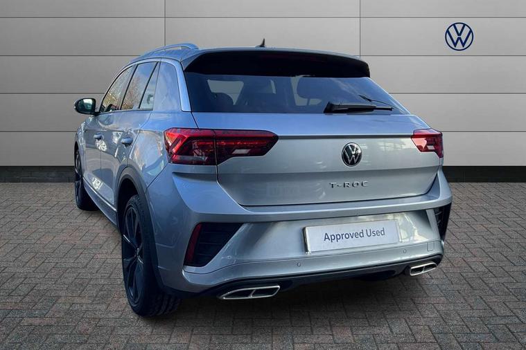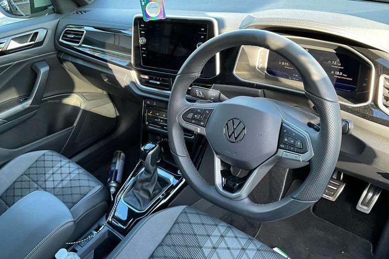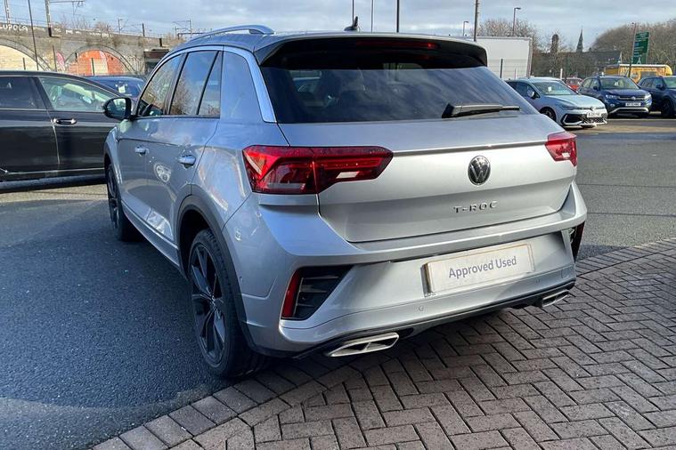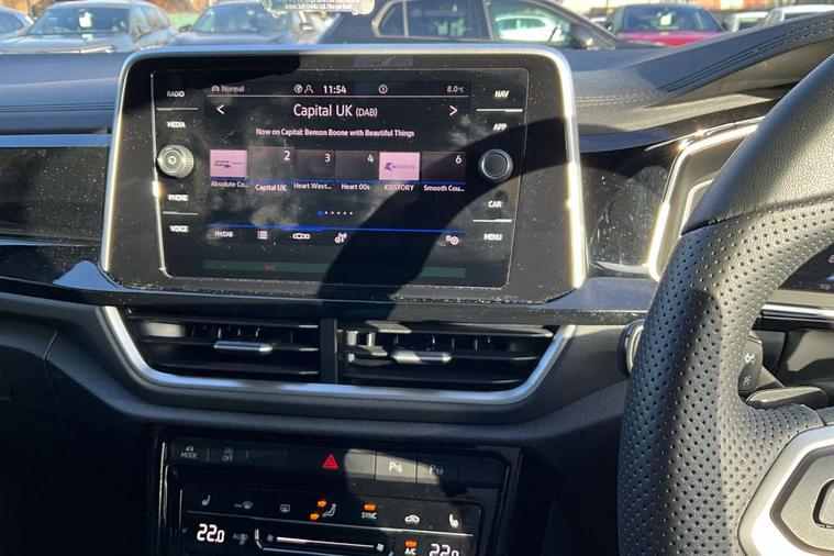 10.25" Digital cockpit pro, Advanced driver attention and drowsiness monitor, Emergency call service, Lane keeping system Lane Assist, Mobile phone interface, Modified key software - reduce switch off time for key status change to Long no motion, Online services, Park assist including front and rear parking sensors, Service interval indicator, Tailgate/trunk lid release from outside, Think blue trainer driver tips and journey analysis, Warning sound and light for front seatbelts unfastened, Wireless app connect, Battery regeneration during braking, Start/stop function with battery regeneration, DAB Digital radio, Diversity antenna for FM reception, Front and rear 6 speakers, Music playback - MP3, WMA and AAC files, Premium USB cable in choice of either Apple or Android smartphone compatibility, SD card slot, Simultaneous pairing of 2 compatible mobile devices, Title and cover art display, We Connect and We Connect Plus functionality, Auto dimming interior rear view mirror, Automatic hazard lights activation under emergency braking, Automatic headlight control with LED separate daytime running lights with coming/leaving home function, Body coloured exterior mirror housings and door handles, Electrically adjustable and heated door mirrors, Extended roof spoiler, Exterior mirrors aspherical on driver side, convex on front passenger side, External USB type C socket and charging sockets, Front windscreen wiper with intermittent wipe and 4 position delay, Heated rear window, LED 3rd brake light, LED rear combination lamps, LED rear number plate lights, Power windows with comfort operation and circuit breaker, Privacy glass for rear side windows and rear window, R-Line design body coloured bumpers, Rain sensor, Rear exhaust tailpipe, Rear fog light on one side and reversing lights on both sides, Rear side wing doors, Rear wash/wipe with intermittent wipe setting, Remote electrically foldable door mirrors, puddle lights and reverse activated passenger's door mirror, 12V power socket in centre console, 3 rear head restraints, 3 seat bench in 2nd row, 4 load lashing points in luggage compartment, Air care climatronic air conditoning system with active combination filter and 2-zone temperature control, Black roof lining, Chrome plated decorative trims, Chrome plated radiator grille inserts, air vent surrounds and light switch surrounds, Door and side trim panel with leatherette insert, Front + rear carpet mats, Front centre armrest, Front cupholders x 2, Front footwell illumination, Front reading light, Front scuff plates with R Line logo, Front seat back storage pockets, Glove compartment door with light, Instrument lighting, white adjustable panel illumination, Interior ambient lighting and surround lighting, Interior light delay, Isofix child seat preparation, Leather gearshift handle, Load-through provision with cup holder when folded down ('Unsplit rear seat bench, split folding backrest, with centre armrest), Luggage compartment lighting, Single front passenger seat, Stainless steel pedals, Storage compartment in left and right luggage area, Storage compartment in rear doors, Storage compartments in driver and front passenger doors, Sunvisors with illuminated vanity mirrors, Variable boot floor, height adjustable and removable, Driver assistance pack without proactive passenger protection - T-Roc, 3 point height adj front seatbelts + pretensioners, 3 point seatbelts in outer rear with ECE label, ABS, Child locks on rear doors, City emergency braking and pedestrian monitoring, Driver and front passenger airbag with front passenger airbag deactivation, Driver and front passenger safety-optimised head restraints, Drivers seatbelt reminder, Electronic parking brake, Electronic Stability Control (ESC) inc EDL (Electronic Differential Lock) and ASR (Traction Control), Front and rear passengers curtain airbag system including front side airbags, Hill start assist, Predictive pedestrian protection, Rear disc brakes, Two tone horn, Tyre pressure loss indicator, Volkswagen roadside assistance, Piano black decorative inserts in dashboard and front door trim panels, Trims for alloy wheels,