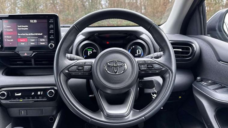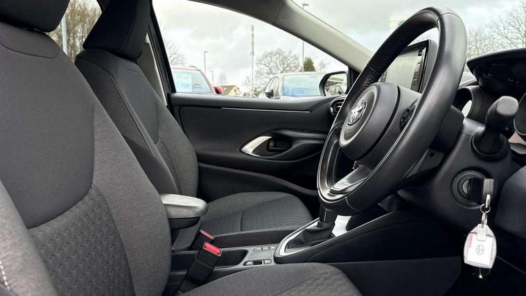 Adaptive cruise control, Adjustable speed limit with speed warning, Bluetooth connectivity, Colour binocular inspired displays with digital speedometer, E-call, Electric power steering, Hybrid energy display, Multi information display switches on steering wheel, Reversing camera, Smartphone integration with Apple CarPlay and Android auto, Tailgate, Voice recognition, Vehicle Stability Control (VSC), 4 speakers, 8" Multimedia display touch screen, USB connection, Acoustic windscreen glass, Auto windscreen wipers, Automatic headlights, Body coloured door mirrors, Electric adjustable heated door mirrors, Follow me home headlights, Front auto power windows with anti jam protection, Full LED rear lights, LED daytime running lights, LED front fog lights, LED front light guide, LED Headlights, LED High mounted stop lamp, LED Indicators, LED rear light guide, Manual headlight levelling, Painted chequered front grille, Rain sensor, Rear auto power windows with anti jam protection, Rear privacy glass, Rear side wing doors, Rear spoiler, Rear wiper, Shark fin antenna, Turning signal integrated indicators in door mirrors, Variable front intermittent wipers, 3 adjustable rear headrests, 3 spoke leather steering wheel, 60/40 split folding rear seat, Active headrests, Adjustable boot height, Auto air conditioning, Coat hooks in rear grab handles, Cup holders (2 front & door), Data Communication Module (DCM) connected services, Fabric upholstery, Front armrest, Glovebox, Grey roof lining, Height adjustable driver's seat, Isofix seat fixing, Leather gearshift, Pollen filter, Shopping bag hooks, Single front passenger seat, Tilt/telescopic steering column, 3 point seatbelts on all rear seats, ABS+EBD+Brake assist, Electronic parking brake, Emergency brake light system (EBS), Front passenger airbag on/off switch, Front seatbelt reminder, Hill start assist control (HAC), Rear child proof door locks, Rear seat belt reminder, Supplemental Restraint System (SRS) 8 airbags: Driver & passenger's airbags, dual side curtain airbags, side impact airbags, front centre airbag, Toyota Safety Sense 2, Precollison + Night time Pedestrian & Cyclist Detection, Lane Trace Assist, Auto High Beam, Intelligent ACC & Road Sign Assist, Tyre pressure warning system, 2x Master key, Alarm/immobiliser, Remote powered central double locking doors, Soft touch instrument panel, Space saver spare wheel,