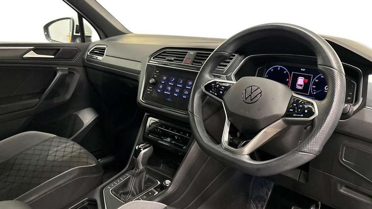 Adaptive cruise control ACC stop and go including speed limiter, App-Connect incl. App-Connect Wireless for Apple CarPlay and Android Auto, Bluetooth phone integration system, Distance control assist, Driver alert system, Driver profile selection, Dynamic road sign display, eCall emergency call system, Electromechanical speed sensitive power steering, Engine start/stop button, Lane keeping system Lane Assist, Lights on warning, Multifunction front facing camera, Outside temperature display, Premium multifunction display with multi colour display, Remote control boot opening, Rev counter, Revision / skills operating concept travel assistant, Service interval indicator, Speed limit display, Start/stop system with regenerative braking, Trip computer, Warning sound and light for doors and tailgate open, Battery regeneration during braking, Diesel particulate filter, Misfuel prevention device for diesel engine, Selective Catalytic Reduction, XDS electronic differential lock for improved traction and handling, 4 X 20 watt output, 8 Speakers, Diversity antenna for FM reception, Radio, SD card slot, Simultaneous pairing of 2 compatible mobile devices, SMS functionality - read, compose and send SMS messages using touch-screen display, Title and cover art display, USB C ports, Auto dimming interior rear view mirror, Automatic headlight control system, Body colour door handles, Chrome moldings on the side windows, Coming/leaving home lighting function, Dynamic headlight range control, Front and rear electric windows, Heated rear window, High level 3rd brake light, Laminated safety glass windshield, heat and sound insulating, LED headlamps with LED separate daytime running light and dynamic cornering light, LED rear combination lamps, LED rear number plate lights, License plate carrier in front and rear, Poor weather light and cornering light, R Line body kit, R Line side sills, Rain sensor windscreen wipers, Rear exhaust tailpipe, Rear fog lamp, Rear side wing doors, Rear spoiler in R style, Rear windscreen washer and wiper with interval delay, Side and rear windows in heat insulating glass, Trailer Stability Programme, Unique R Line badging, Windscreen wipers/ intermittent wipe + 4 position delay, 12V outlet in center console rear and in luggage compartment, 12V outlet in front and tray, 2 cup holders in front, 2 LED front reading lights, 2 LED rear reading lights, 3 bench rear seats in 2nd row, 3 rear headrests, 4 load lashing points, 40:20:40 split folding rear seats, Air Care Climatronic 3 zone automatic climate control with enhanced air filter and controls in the rear, Backrest release for left front seat, Black headlining, Brushed stainless steel pedals and footrest, Carpet mats in front and rear with decorative stitching in Gray, Climate control unit rear with touch function, Door and side trim panel in foam film, insert in leatherette, Front centre armrest, Front footwell illumination, Front seats head restraints (x-adjustment), Height adjustable front seats, Height/reach adjust steering wheel, Instrument lighting white adjustable panel illumination, Interior light with delay, Isofix Preparation 2 Rear child seats, Leather gear knob, Lockable cooled glovebox, Luggage compartment lighting, Luggage net, Rear bench seat asymetrically split folding, longitudinally movable and folding with load-through hatch and center armrest, Remote unlocking for rear seat backrest, Removable luggage cover, Removable rear headrests, Safety optimised front head restraints, Single front passenger seat, Sliding/reclining rear seats, Standard rear seat release, Storage compartment in driver's door, Storage compartment in passenger's door, Storage compartment in rear doors, Storage compartments in luggage area left and right, Storage tray on dashboard, Sun visors with illuminated vanity mirrors, Top front comfort seats, Variable boot floor, height adjustable and removable, Driver assistance pack plus - Tiguan DSG, 3 point seat belt for centre rear seats, 3 point seat belts with seat belt pretensioners for the outer rear seats, Active bonnet, Curtain airbags for front and rear passengers, Driver/Front Passenger airbags, Drivers knee airbag, Electronic parking brake with auto hold, Electronic Stability Control with driver steering recommendation, ABS, ASR, EDL, EDTC and trailer stabilization, Front assist with autonomous emergency braking (for Adaptive Cruise Control ACC up to 130 mph), Front disc brakes, Front passenger airbag deactivation, Front side airbags, Height adjustable front 3 point seatbelts + pretensioners, Hill hold control, Manual child proof rear door locks, Pedestrian monitoring system, Power assisted brakes, Proactive passenger protection system in combination with front assist, Rear disc brakes, Rigid safety cell with front and rear crumple zones, Two tone horn, Warning sound and light for front seat belts if unfastened, Anti theft alarm system with interior monitoring, backup horn and towing protection, Anti theft wheel bolts, Electronic engine immobiliser, Tool kit,