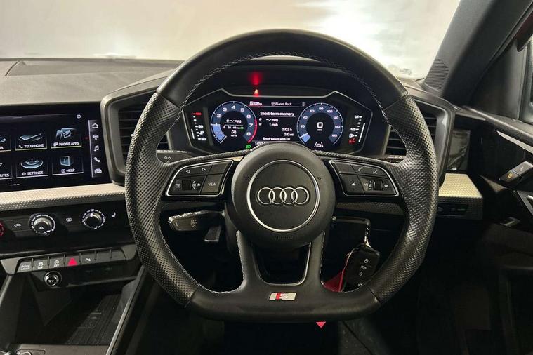 10.25" Digital instrument cluster display classis style instrument dials + speed, odometer, time, outside temperature, telephone menu + fuel level warning, Audi drive select - power steering assistance + engine, Audi smartphone interface with connect compatible smartphone via USB directly MMI display + Nav, music, third party apps controlled via MMI controller, Automatic start/stop system, Bluetooth interface, Cruise control, Driver's information system, Electromechanical power steering, Emergency e-call, Lane departure warning system, Rear parking sensor, Service interval indicator, Speed limiter, Voice control system, Washer fluid level indicator, Sports suspension, 2 x USB type C connection points, 6 passive loudspeakers, DAB Digital radio, MMI radio plus with 10.1" colour MMI display screen and MMI touch, Auto dimming rear view mirror, Black side skirts, Body coloured bumpers, Door sill trims with aluminium inlays and logo, Electric front and rear windows, Electrically adjustable, heated, folding door mirrors with integrated LED side indicator, Front side air inlets in grained matt black and C frame in anthracite black, Front wing badges, Heat insulating glass windscreen and side windows, Heated rear windscreen, High level LED brake light, LED headlights with LED rear lights + dynamic rear indicators + headlight adjustment and high beam, turning light + LED daytime running lights, Privacy glass, Rain and light sensors, Rear fog lights, Rear side wing doors, Rear wiper, Side front spoiler lips in grained matt black, 12V socket in centre console with two cup holders, 3 rear seats with headrests, 3 seat bench in 2nd row, 3 spoke flat bottomed multi-function plus leather steering wheel with S badging, grips in preforated leather and contrast stitching, 40:60 Split folding rear seat or folded fully, Black cloth headlining, Driver and passenger seat with manual height adjust with forward and backwards adjustment, Front and rear black floor mats with contrast stitching in fine silver, Front head restraints, Front passenger seat, Height and reach adjustable steering wheel, ISOFIX child seat mounting for front passenger and outer rear seats including top tether attachment point of outer rear seats, Leather gear knob with aluminium trim, Leather handbrake grip, Luggage compartment light with front and rear reading lights, Manual air conditioning, Manually adjustable lumbar support in front seats, Stainless steel pedals, Black styling pack - A1 Sportback Black Edition, LED interior lighting pack - A1, Luggage compartment pack - A1, 3x3 point rear seatbelts, Audi pre-sense front with pedestrain and cyclist recognition, Brake assist function, Driver and front passenger airbag with front side and head airbags, Electronic Stability Control including ABS, EBD, ASR and EDL, Front passenger airbag deactivation switch, Hill hold assist, Manual rear child locks, Seatbelt height adjustment for front seats, Seatbelt monitoring, Tyre pressure warning light, Warning triangle and first aid kit, Anti theft alarm, Anti theft wheel bolts and loose wheel warning, Immobiliser, Remote central locking with 2 foldaway keys, Aluminium trim for control switches, air vents and digital instrument cluster, Black dashboard, Silver grey inlays polygon structure in diamond paint finish, Structured grey accent areas including air vents, door handle recesses and centre console in quartz paint finish,