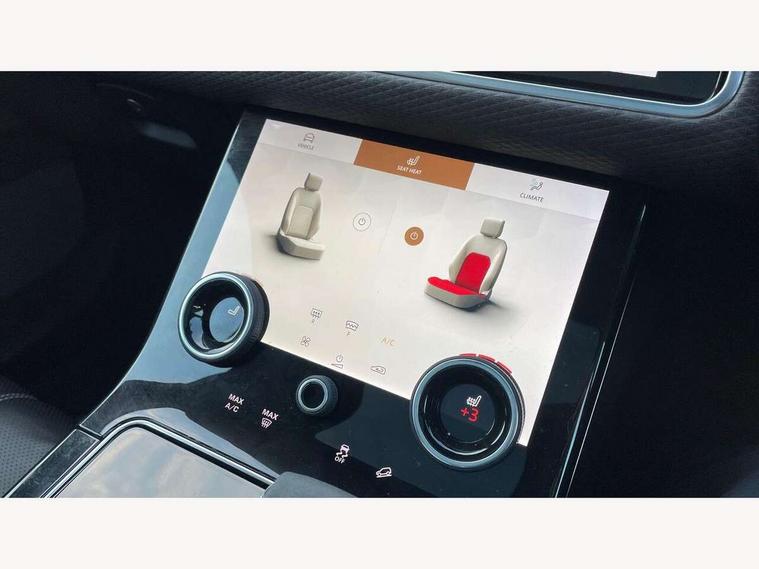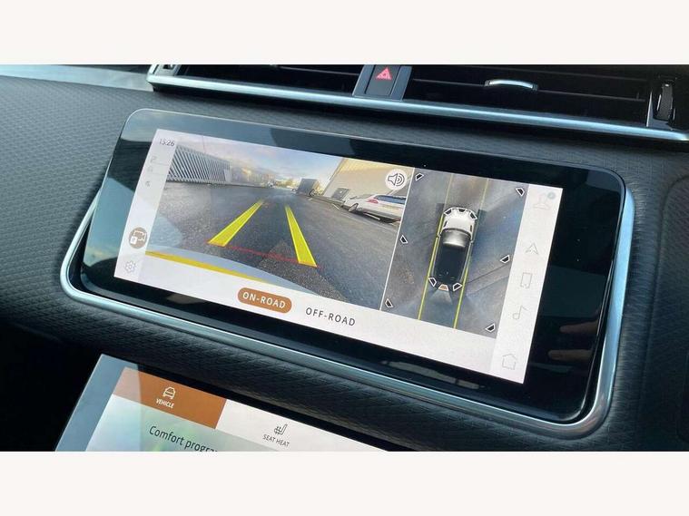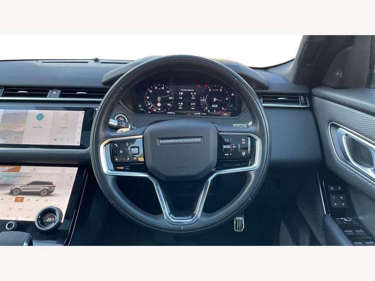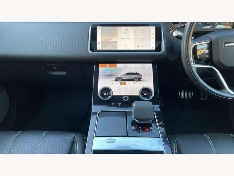 10" touch screen, 3D Surround camera includes, clear sight ground view, 360 parking aid and wade sensing, Android Auto, Apple car play, Blind spot assist, Bluetooth connectivity, Brake pad wear indicator warning light, Driver condition monitor, InControl remote, Interactive Driver display instrument cluster, Land Rover InControl apps, Lane keep assist, Pivi pro connected includes upgraded infotainment, smart settings, connected navigation pro, Nuance speech licence, Powered gesture tailgate/boot lid, Push button start, Rear traffic monitor, Service indicator, Speed proportional electronic power assisted steering (EPAS), Traffic sign recognition with adaptive speed limiter, Trip computer, Voice control system, Wade Sensing, 8 speed automatic transmission, Open differential with torque vectoring by braking, Single speed transfer box, Digital Audio Broadcast radio-DAB, Steering wheel mounted controls, Acoustic laminated windscreen, Adaptive front lighting system, Auto dimming interior rear view mirror, Automatic headlamp levelling, Automatic headlights, Body coloured bumpers, Boot protection plate, Electric heated/power fold door mirrors with approach lights and auto dimming driver side, Electric windows with one touch open/close and anti trap, Flush deployable exterior door handles, Follow me home headlights, Front fog lights, Heated rear window with timer, Heated windscreen + heated windscreen washer jets, Metal load space scuff plates, Metallic paint, Privacy glass, Rain sensor windscreen wipers, Rear fog lights, Rear wash/wipe, SE badge, Sliding panoramic sunroof with auto blind function, Tailgate/boot lid spoiler, Trailer stability assist, Velar and R-dynamic badge, 40:20:40 split folding rear seats, Ambient lighting, Bright metal pedals, Driver/passenger sunvisors with illuminated vanity mirrors, Heated steering wheel, Isofix system on outer rear seats, Loadspace cover, Overhead lighting console, Overhead stowage for sunglasses, Passive front headrests, Rear air vents, Rear centre headrest, Satin chrome gearshift paddles, Standard interior, Twin front cupholders, Twin sliding front centre armrest, Online pack with data plan - Velar, R-Dynamic black pack - Velar, 355mm front brakes and 325mm rear brakes, 3x3 point rear seatbelts, Anti-lock braking system (ABS), Cornering brake control, Curtain airbags, Customer configurable autolock, Door side intrusion beams, Driver airbag, DSC - Dynamic Stability Control, Electronic brake force distribution, Electronic parking brake, Electronic traction control, Emergency brake assist, Emergency braking, Front and rear seatbelt reminder, Hill descent control, Hill launch assist, Low traction launch, Passenger airbag, Power operated child locks, Rear airbags, Roll stability control, Side airbags, Tyre pressure monitoring system, Unpainted brake calipers, Global lock and unlock switch on driver door, Immobiliser, Intrusion sensor, Keyless entry, Lock only switch on front passenger door, Locking wheel nuts, Perimetric alarm, Remote central locking, 20" 7 spoke alloy wheels with gloss black finish - Style 7014,