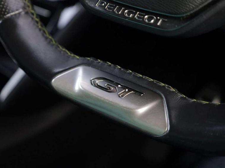 10" Capacitive colour touchscreen with connected 3D navigation, Blind spot monitoring, Bluetooth telephone facility, Driver attention warning, Exterior temperature indicator with ice warning, Lane keep assist, Mirror screen with mirror link, apple carplay and android auto, Multi function trip computer, Peugeot connect SOS and assistance, PEUGEOT i-Cockpit with compact steering wheel, PEUGEOT i-Cockpit with configurable 3D headup instrument panel, Push button start, Smart phone docking station, Speed limit recognition and recommendation, Visio park assist 180 with colour reversing camera + front and rear parking sensor, 2 front USB socket with USB-C, 2x USB sockets in rear, 6 speakers radio with mp3 compatible, DAB Digital radio, Voice recognition for radio, navigation and telephony features, 2 X Rear number plate lights, Automatic hazard light activation upon heavy brake application, Automatic lights, Automatic windscreen wipers, Body coloured exterior door handles, Dark tinted rear side and tailgate windows, Diamond black rear spoiler, Diamond Black roof, Electric front windows + one touch + anti-pinch, Electric rear windows with one touch/anti-pinch, Electrically adjustable, heated and power folding door mirrors, Follow me home headlights, Frameless electrochrome interior rear view mirror, Full LED headlights with smartbeam assist, Gloss black finish on B pillar, Gloss black rear cluster connecting strip, Gloss black wheel arch extensions, Gloss black window surround, GT model designation badging on C pillar, GT model designation badging on tailgate, Headlights left on audible warning, LED daytime running lights with 3 claw headlight with distinctive tooth design, LED side indicator lights integrated into door mirrors, Model designation badges front and rear, Nera black door mirror shells, Peugeot scuff plates, Radiator grille - Dark chrome chequered and gloss black edge trim, Rear bumper with gloss black finish, Rear full LED 3D peugeot signature claw effect lights with daylight function, Rear lower bumper diffuser effect trim in gloss black, Rear reversing lights, Rear windscreen wiper triggered automatically in reverse gear, Roof mounted aerial with fin design, Tailgate with heated rear windscreen and wiper blade, 1/3 to 2/3 split folding rear seats, 12V socket, 8 Colour personalisable ambient lighting, Aluminium pedals and foot rest, Automatic air conditioning, Driver and front passenger seat manual adjustment in longitudinal and back rest angle, Driver and front passenger seat mechanical height adjustment, Driver and front passenger sport seats, Electric power steering with reach and rake adjustable steering column, Front and rear carpet mats in black with lime green stitch detail, Front centre armrest with storage compartment, Front LED interior light with 2 reading spotlights and rear interior light with timer, Gear shift indicator, High centre console with 2 cup holders, ISOFIX child seat mounting points on passenger seat, Lime green contrast stitching to armrest, front centre console, door panels and dashboard facia, Map pockets on the backs of the front seats, Mistral full grain perforated leather steering wheel with aikinite stitch detail and satin chrome 'GT' emblem, Piano keys gloss black plated toggle switches to access main functions of the vehicle, Piano keys gloss black plated toggle switches to access touchscreen functions, Roof lining - Mistral black, Satin chrome gear lever, Seatbelt unfastened on the move audible and visual alert for front and rear seats, 2x Isofix child seat fitting on outer rear seats, 3 rear 3 point seatbelts, ABS (Anti-lock Braking System) with EBD (Electronic Brakeforce Distribution) and EBA (Emergency Braking Assistance), Active safety brake with night function/cyclists/pedestrians, Adaptive driver and front passenger airbags with passenger airbag deactivation function, Child locking functionality on rear doors, Driver/front passenger side airbags, Electric parking brake, ESP with Hill Assist, Front and rear curtain airbags, Front and rear disc brakes, Front optimised safety headrests and 3 x rear retractable headrests with height adjustable, Front three point retractable seatbelts with force limiters, Tyre pressure sensor, Acoustic vehicle alert system (AVAS), Automatic door locking when moving off, Deadlock, Electronic code immobiliser, Thatcham cat. 1 alarm with anti lift sensor, Carbon effect Dashboard, front and rear door panel finish, 17" Camden diamond cut two tone alloy wheels, Space saver spare wheel,