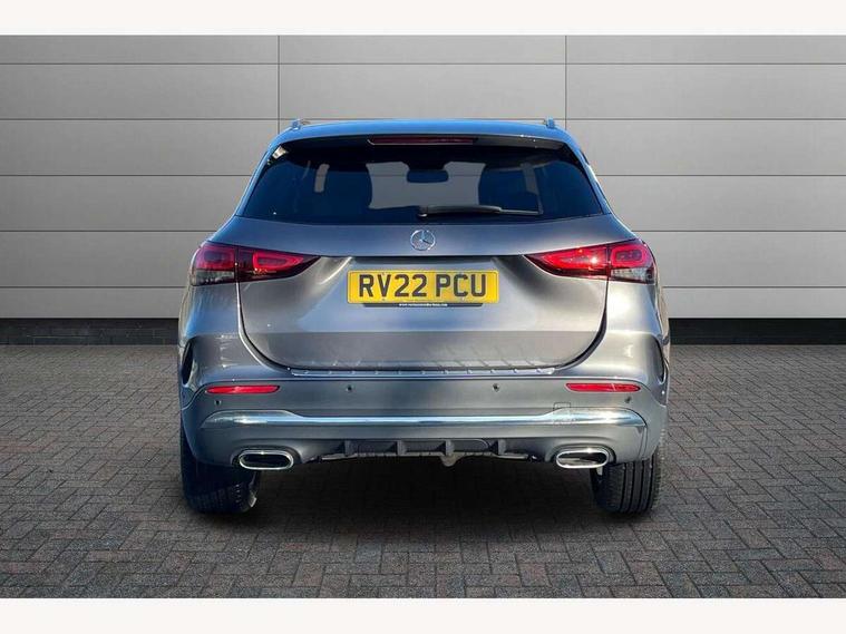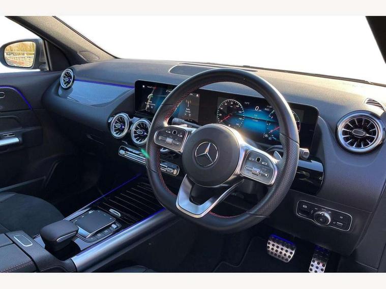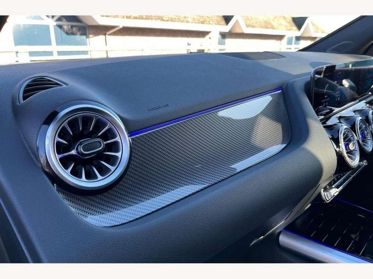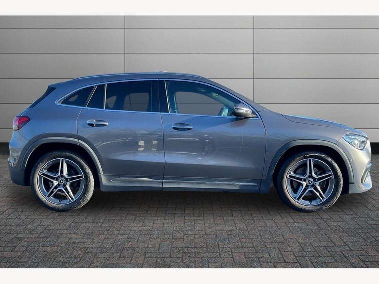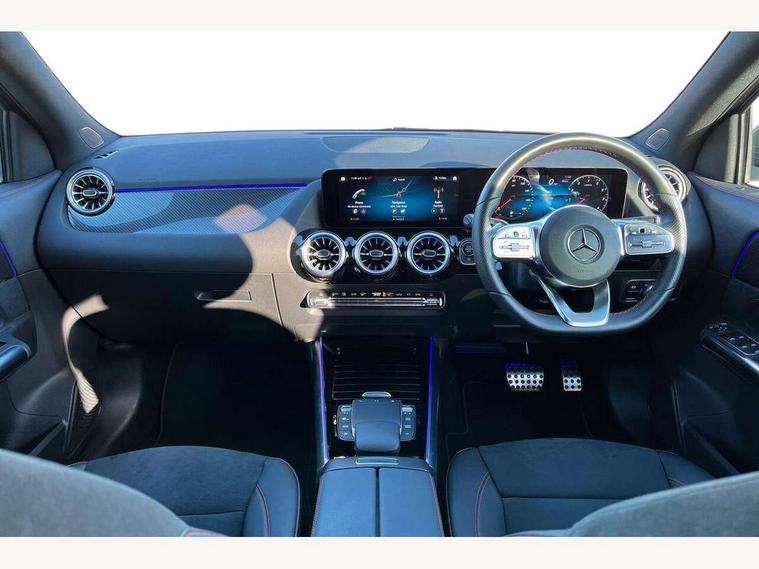 10.25 inch touchscreen central media display, 10.25" Digital instrument cluster display screen, Active lane keeping assist, Attention assist, Cruise control + speed limiter, Direct steering, DYNAMIC SELECT with a choice of driving modes (ECO, Comfort, Sport and Individual), ECO start/stop function, Fluid level warning indicator for fuel, oil, coolant and washer fluid, Hard-disk navigation, Hey Mercedes Voice activation, Lamp failure indicator, Mercedes me connect including emergency call system, accident recovery, breakdown and maintenance management, Mercedes me remote services, Multi function trip computer, Outside temperature gauge, Owners manual and service booklet in English, Pre-installation of private car share, Radio aerial integrated into front and rear windshields, Service indicator (ASSYST), Smartphone integration with Apple CarPlay and Android auto, Speed limit assist, Status display for rear seat belts in instrument cluster, Lowered comfort suspension, Rear axle multi-link, 2 USB ports (type C) in rear stowage compartment and one in front of center console, Bluetooth connectivity including audio streaming, DAB Digital radio, MBUX multimedia system, Media interface, Mercedes-Benz (225w) sound system with 10 speakers, Adaptive brake lights, Aerial for GPS, Aluminium roof rails, AMG front and rear apron, AMG specific/dual flow exhaust pipes in chrome (non-functional), Automatic headlamp activation, Beltline strips and weather strip in chrome, Black grained claddings with chrome parts, Body colour bumpers, Body colour door mirrors, Body coloured door handles with chrome insert for keyless entry, Car wash function, Dark privacy glass from B-pillar backwards, Electric front windows, Electric rear windows, Electrically adjustable and heated door mirrors with integrated LED indicators, Heated glass rear windscreen + timer control, Heated windscreen wash system, Interior mirror with black reading lamps and frameless, LED high performance headlamps with integrated LED daytime running lights, LED tail lights in two piece design, LED third brake light, Matt titanium grey front and rear apron trim, Pre-installation for trailer coupling, Rain sensor windscreen wipers, Rear fog lights, Rear side wing doors, Roof spoiler, Single lamella raditor grille with chrome dotted diamond grille and inlay, 12V power socket in centre console, 3 seat bench in 2nd row, 3 spoke multifunction sports steering wheel in nappa leather with flattened bottom and perforated grip area, 40:20:40 split folding rear seat backrests, Adjustable head restraints, Air conditioning - Two zone thermotronic luxury automatic climate control with display, Ambient lighting in front headrests, AMG floor mats with AMG lettering in front, Artico man-made leather/Microfibre Dinamica upholstery with red contrast stitching, Auto Mercedes-Benz child seat recognition sensor, Black roof lining, Brushed door pulls in silver chrome, Courtesy light in boot, Front centre armrest with stowage, Galvanished gear shift paddles on steering wheel, Heated front seats, illuminated door sills with changeable cover, Illuminated glovebox, Interior lighting - 64 colour Ambient lighting, Leather trimmed gearknob, Luggage net on driver/front passenger seat backrest, Manually height and reach adjustable steering column, Multi-gesture touchpad control on center console, Single front passenger seat, Sports pedals in brushed stainless steel with black rubber studs, Sports seats, Stowage compartment in centre console, Stowage compartment with retractable cover, Sunvisors with illuminated vanity mirrors, Twin front cup holders, Two outer rear seat isofix and top tether child seat fixing points, AMG body styling pack - GLA, Comfort seat pack - GLA Class, Interior lighting with light and sight pack - GLA, Load compartment pack - GLA, Mirror pack - GLA Class, Parking pack - GLA, 3 rear 3 point seatbelts, ABS with Brake Assist, Active bonnet pedestrain safety measure which detects an impact and raises bonnet by 65mm, Active brake assist includes forward collision warning system with autonomous braking, Adaptive brake assist with hold function and hill start assist, Bonnet with power domes, Brake pad wear warning indicator, Childproof locks manually operated for rear doors and electrically operated for rear power windows, Crash responsive emergency lighting, Driver and passenger head and side airbags, Drivers knee airbag, Dual stage driver/passenger airbags, Electronic parking brake, ESP curve dynamic assist, ESP with ASR, Front and rear seatbelt reminder, Front brake callipers with Mercedes Benz logo lettering on front, Front brake discs internally ventilated and perforated, Front passenger seat occupancy sensor, Tyre pressure monitoring system, Warning triangle and first aid kit, Window airbags, Alarm system with immobiliser and interior protection -Thatcham category 1, Keyless Go starting function, Remote central locking and crash sensor with emergency opening function, Urban guard vehicle protection, Vehicle key with decorative surround in chrome, Carbon structure trim, Chrome air vent surrounds, 19" AMG 5 twin spoke light alloy wheels aerodynamically optimised painted in tantalite grey with a high sheen finish, Summer tyres, Tirefit tyre sealant kit,