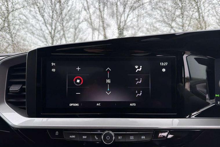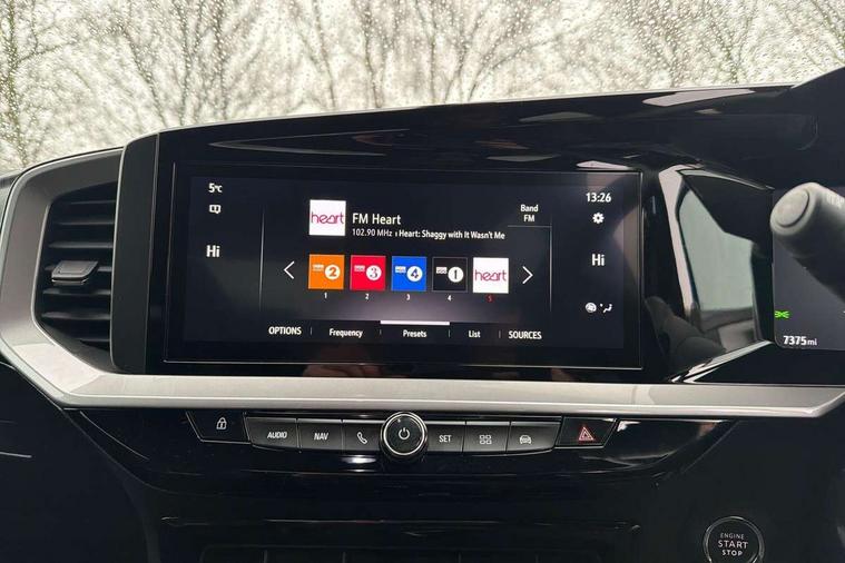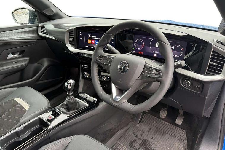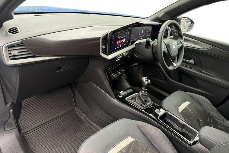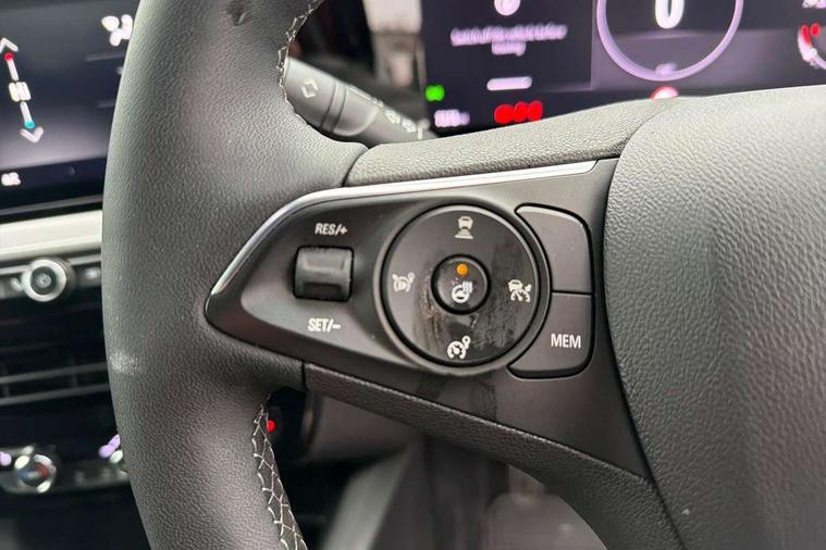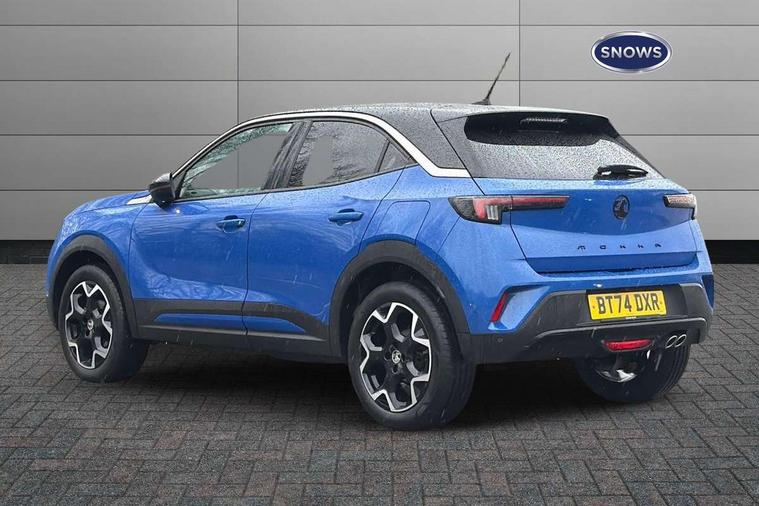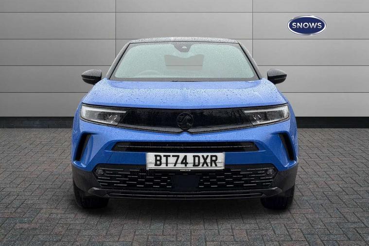 12" digital instrument cluster, Adaptive cruise control with speed limiter, Digital instrumentation with digital speedometer, rev counter, fuel and water temperature gauge, Driver drowsiness alert system, Driver information display with multi function trip computer, audio info, digital clock and outside air temperature with ice warning function, Engine start/stop button, EV information display, Extended traffic sign recognition, Front and rear parking distance sensors, Front camera and radar system, Gearshift up/down indication light, Lane keep assist system (LAS) with Lane departure warning system (LDWS), Lights on audible warning, Panoramic rear view camera, Power assisted speed sensitive steering, RDS with traffic programme, Side blind spot alert and flank guard, Smartphone integration compatible with Apple CarPlay and Android Auto, Sports switch with engine sound enhancement, Start/stop system, Vauxhall connect with e-Call, 6 speed manual transmission, 6 speakers, AM/FM stereo radio with 36 station presets, DAB Digital radio, Flexible Roof Mounted Radio Aerial, Front USB connection, Mobile phone portal - bluetooth connect, vehicle microphone, handsfree calls, SMS read out and reply, phone book access, Multimedia Navi Pro with 10" colour touchscreen, Steering wheel mounted controls, Two rear USB sockets, Adaptive brake lights, Auto high beam assist, Automatic headlamp levelling, Automatic lighting control with tunnel detection, Automatically dimming anti dazzle rear view mirror, Black door mirror housings, Black front and rear bumper inserts, Black Griffin logo and vizor frame, Body colour door handles, Body colour front and rear bumpers, Dark tinted rear side windows + tailgate window, Electric adjustable/heated/folding door mirrors + puddle lights, Electrically operated front and rear windows with safety auto reverse and one touch up/down facility, Hazard warning lights, Heated rear window+rear wash/wipe, Integrated black tailgate spoiler, IntelliLux Matrix LED headlights with adaptive forward lighting with anti glare beam, LED 3rd brake light, LED daytime running lights, LED front fog lamps, LED side repeat indicators, LED tail lights, Rear foglight, Rear side wing doors, Reversing light, Solar heat absorbing windscreen and windows, Two speed rain-sensitive windscreen wipers with variable intermittent wipe, Windscreen and side window demist vents, 12V Accessory socket, 3 seat bench in 2nd row, 3 spoke flat bottomed leather effect steering wheel with satin chrome effect bezel, 4 speed fan with illuminated controls, 4 Way driver seat with lumbar and massage function, 6 way manual adjustable driver fore/aft, up/down with reclining seatback, 6 way manual adjustable front passenger fore/aft, up/down with reclining seatback, 60/40 split folding rear seat, Air recirculation system, Alcantara/leather upholstery, Black headliner, Cabin particulate filter - removes dust, airborne particles and pollen, Centre console with two cup holders at front and one in rear, Chrome effect interior door handles, Door pockets with two litre capacity, Driver and passenger sun visors with vanity mirror, Electronic climate control (ECC), Four adjustable facia vents, Four load restraint lashing eyes, Front centre armrest with storage, Front head restraints, Front map reading lights, Front seat back storage pockets, Fully carpeted load area, Heated front seats, Heated steering wheel, Interior courtesy light, Interior tailgate handle, Luggage compartment cover, Luggage compartment lighting, Movable boot floor, Reach + rake adjustable steering column, Single front passenger seat, Three height adjustable rear seat head restraints, Twin gas assisted tailgate struts, Black Pack with badge - Mokka, 2x Isofix child seat fitting on outer rear seats, 3x3 point rear seat belts, Anti-lock braking system (ABS), Child proof locks on rear doors, Cornering brake control, Deactivation switch for front passenger front and side impact airbags, Drag torque control, Driver and front passenger airbags, front seat side impact airbags, full size curtain airbags, Electronic brake force distribution, Electronic Stability Programme (ESP), Emergency brake assist, Enhanced automatic emergency braking with pedestrian detection, Forward collision alert at all speed, Hill start assist, Inertia reel lap and diagonal seatbelts for all seats, Seatbelt unfastened audible warning and warning light, Straight line stability control, Traction control, Tyre pressure monitoring system, Electronically protected audio equipment, Engine deadlock immobiliser, Freewheeling door locks, Key left in ignition audible warning, Keyless entry and start, Locking wheel nuts, Remote control central locking, Remote control ultrasonic security alarm system, Visible vehicle identification number, Black facia with silver trim insert, Instrument panel bar in polar silver, Light grey trim inserts on front doors, 18" bi colour alloy wheels,