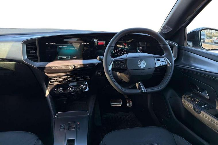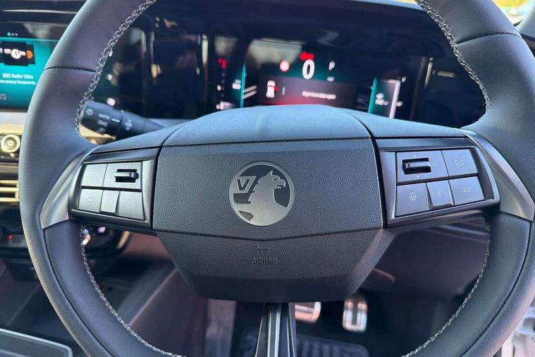 10" digital instrument cluster, Active drive assist plus, Adaptive cruise control, Digital instrumentation with digital speedometer, rev counter, fuel and water temperature gauge, Drive mode selector, Driver attention alert, Driver drowsiness alert system, Driver information display with multi function trip computer, audio info, digital clock and outside air temperature with ice warning function, Front and rear parking distance sensors, Lane keep assist system (LAS) with Lane departure warning system (LDWS), Lane positioning assist, Lights on audible warning, Panoramic rear view camera, Power assisted speed sensitive steering, RDS with traffic programme, Side blind spot alert and flank guard, Speech recognition, Start/stop system, Vauxhall connect with e-Call, WiFi connectivity, Wireless phone projection with Apple CarPlay and Android Auto, Sports chassis, 2 rear USB connection, 6 speakers, AM/FM stereo radio with 36 station presets, DAB Digital radio, Front USB connection, Mobile phone portal - bluetooth connect, vehicle microphone, handsfree calls, SMS read out and reply, phone book access, Multimedia pure panel navigation system with 10" colour touchscreen and 15W wireless charger, Steering wheel mounted controls, Adaptive brake lights, Automatic headlamp levelling, Automatic lighting control with tunnel detection, Black DLO, Black door mirror housings, Black Griffin logo and vizor frame, Black lettering and emblems, Black upper window moulding, Body colour door handles, Body colour front and rear bumpers, Body colour skid plates, Dark tinted rear side windows, Electrically adjustable and heated door mirrors, Electrically foldable door mirrors, Electrically operated front and rear windows with safety auto reverse and one touch up/down facility, Electrochromatic frameless auto dimming rear view mirror, Hazard warning lights, Heated rear window+rear wash/wipe, High gloss black front and rear bumper inserts, High gloss black painted claddings, lower grille and front lateral inserts, High gloss black painted lateral moulding, Integrated black tailgate spoiler, IntelliLux matrix headlights with advanced forward lightning and anti glare beam, LED 3rd brake light, LED daytime running lights, LED side repeat indicators, Rain sensitive windscreen wipers, Rear side wing doors, Reversing light, Shark fin antenna, Solar heat absorbing windscreen and windows, Windscreen and side window demist vents, 12V Accessory socket, 3 seat bench in 2nd row, 4 speed fan with illuminated controls, 4 way electrical driver lumbar adjustment, 6 way adjustable front passenger seat including height adjustment, 60/40 split folding rear seat, Air recirculation system, Ambient lighting, Black headliner, Cabin particulate filter - removes dust, airborne particles and pollen, Chrome effect interior door handles, Door pockets with two litre capacity, Driver and passenger heated seats, Driver and passenger sun visors with vanity mirror, Driver seat massage function, Electronic climate control (ECC), Four adjustable facia vents, Four load restraint lashing eyes, Front centre armrest with storage, Front driver and co-driver side articulated grab handles, Front head restraints, Front map reading lights, Front seat back storage pockets, Fully carpeted load area, Heated steering wheel, Interior courtesy light, Interior tailgate handle, Luggage compartment cover, Luggage compartment lighting, Moveable boot floor, Reach + rake adjustable steering column, Rear Reading Lamps, ReNewKnit fabric/leather upholstery, Single front passenger seat, Steering wheel mounted paddle shift, Three height adjustable rear seat head restraints, Twin gas assisted tailgate struts, 2x Isofix child seat fitting on outer rear seats, 3x3 point rear seat belts, Anti-lock braking system (ABS), Child proof locks on rear doors, Cornering brake control, Deactivation switch for front passenger front and side impact airbags, Drag torque control, Driver and front passenger airbags, front seat side impact airbags, full size curtain airbags, Electric parking brake, Electronic brake force distribution, Electronic Stability Programme (ESP), Emergency brake assist, Enhanced automatic emergency braking with pedestrian and bicycle detection, Forward brake assist, Forward collision alert at all speed, Hill start assist, Inertia reel lap and diagonal seatbelts for all seats, Seatbelt unfastened audible warning and warning light, Straight line stability control, Traction control, Tyre pressure monitoring system, Electronically protected audio equipment, Engine deadlock immobiliser, Freewheeling door locks, Key left in ignition audible warning, Keyless entry and start, Locking wheel nuts, Remote control central locking, Remote control ultrasonic security alarm system, Visible vehicle identification number, Black facia with silver trim insert, Light grey trim inserts on front doors, Vegan door inserts, 18" Black diamond cut alloy wheels,