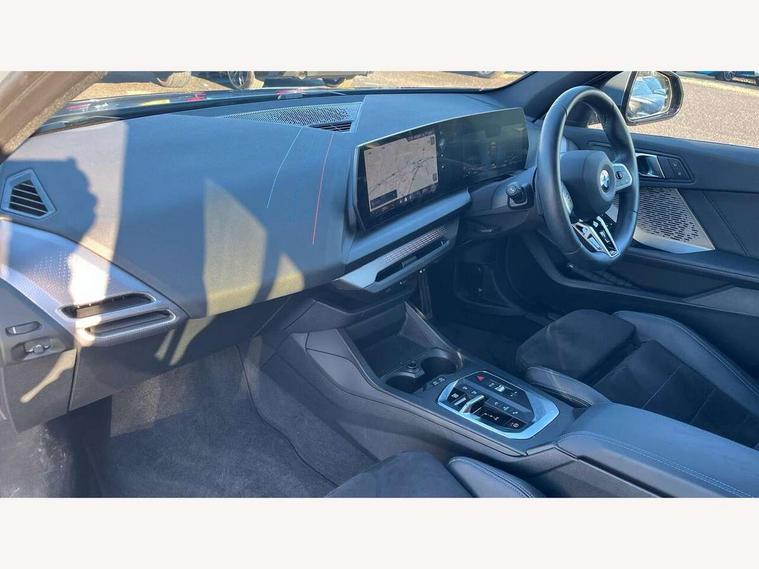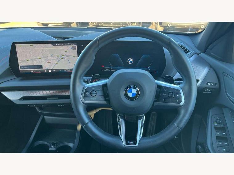 Active guard plus, Attentiveness assist, Bluetooth / WiFi interface for wireless connection of mobile terminal devices and audio streaming, BMW ConnectedDrive online services, BMW Live cockpit plus, BMW Teleservices, Check Control warning system for monitoring of lights and door/luggage compartment open warning, Cruise control with speed limiter, Eco pro mode, Electric power steering with Servotronic steering optimised at all speed ranges, Front and rear parking sensors, Front axle single joint with specific axle kinematics to minimise drive influences on steering + provide increased rigidity agile driving behaviour, Integrated owners handbook, Lane departure warning system, Oil sensor for level and grade, On board computer, Optimum shift indicator, Park assist including reversing assistant, lateral parking aid and reversing assist camera, Personal Profile, Pull away assistant, Rigidly mounted rear subframe - Multi link construction with separate spring / damper configuration and excellent driving characteristics, Speed limit Info including no-overtaking indicator, Speedometer, 49 litre fuel tank, Aluminium lightweight construction, Anti roll bar front and rear, Balancer shaft, Double VANOS twin scroll turbocharging system, Drive Performance Control, Electronic differential lock, High precision injection, M Adaptive suspension, Petrol Particulate Filter, Twin tube gas filled shock absorbers with degressive characteristic curve, VALVETRONIC engine management, DAB Digital radio, Auto dimming rear view mirror, Automatic headlight beam throw control, Automatic windscreen wipers and automatic headlight, Body colour door handles, Body colour mirror caps, Body colour roof trims, Chrome 'M' logo side designation, Chrome exhaust twin tailpipes round 90mm in left, Chrome kidney grille frame with Satin Aluminium struts, Direction indicator side lights in exterior mirrors, Electrically adjustable exterior mirror with mirror adjustment switch on drivers armrest and aspheric on driver side, convex on passenger side, Fading support, Folding side mirrors with auto dimming/folding wing mirrors with auto dimming, Follow me home headlights, Front and rear bumper system with replaceable deformation elements, Front and rear electric windows with open and close fingertip control, anti trap facility and comfort closing, Front door sill finishers in black plastic with M designation in metallic look, Green tinted heat protection glazing, High gloss shadowline window frame, Recess cover mirror frames and B/C pillar embelisher trim, High level third brake light, Integrated front windscreen with washer jets, LED daytime running lights, LED eyebrow turn indicators, LED front fog lights, LED Headlights, Lightweight engineering, Matt black air guide grilles, Matt black wheel arch trim, Nearside reverse light in rear light cluster, Preparation for high beam assistant, Rear fog lights, Rear side wing doors, Rear window wiper, Shark fin antenna, Trailer stabilisation logic, Visible VIN plate, Welcome lighting, 12V power socket in front centre console with blanking plug, 3 rear seat head restraints, 3 seat bench in 2nd row, 3 spoke sports leather steering wheel with black leather and stitching, pearl chrome decorative finish, specific M Badge, Anthracite headlining, Black boot net with lashing eyes, Cargo function on 2nd seat row, Child seat ISOFIX attachment for two outer rear seats and front passenger seat with anchorage points, Conditioned based service, Driver and front passenger backrest net on rear, Driver and front passenger seat heating, Driver side folding compartment in instrument panel, Folding rear clothes hook, Four grab handles integrated in roof lining, Front and rear door pockets with bottle holders, Front and rear side armrest integrated into door trim, Front armrest, Glove compartment, Height adjustable front head restraints, Luggage compartment for bag hooks on left and right, foldable luggage compartment liner and four lashing eyelets, Manual adjust steering wheel, Multi-function controls for steering wheel, Rear seat backrest with manual 60:40 split folding with 3 top tether clips integrated on rear of seat panels, Single front passenger seat, Storage compartment in centre console, Storage compartment in luggage compartment, Stowage of the parcel shelf in luggage compartment trim, Sun visors with vanity mirrors and insert tab, Two front centre console cupholders, Type C two USB ports in rear centre console, Velour floor mats, Connected pack professional - 1 Series, Interior lights pack - 1 Series, M Sport exterior styling aerodynamics pack - 1 Series, 2 tone horn, 3 point seatbelts on all seats, front pyrotechnic belt tensioners, stopper and belt force limiters, rear coded belt buckles, Airbags - Front driver/passenger, front and rear curtain head protection, front side, manual deactivation of front passenger airbag, Anti lock braking system (ABS) with brake assist, BMW emergency call, Brake drying, Braking readiness, Child proof locking system in rear door, Comfort modes, Cornering brake control, Crash sensor activating of airbags, Unlocking doors, hazard warning lights, interior light, safety battery terminal, Driver and front passenger seat belt security check, Dynamic stability control + (DSC+), Dynamic Traction Control - DTC, Electrically operated hand brake including automatic hold function, Front and rear disc brakes, Seatbelt warning, Side impact protection, Tyre pressure monitoring system, Warning triangle and first aid kit, Central locking switch for all doors, fuel filler cap and luggage compartment, Deadlocking function system to all doors, Drive away locking system on all doors and luggage compartment with de-activated in iDrive settings, Locking wheel bolts, Remote control with integrated key with High-gloss Black inlay and M designation and 1 button for open/ close lock, window, open luggage compartment, Start/stop button illuminated in centre console with keyless engine start and auto 