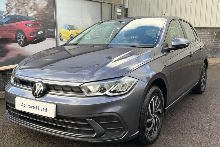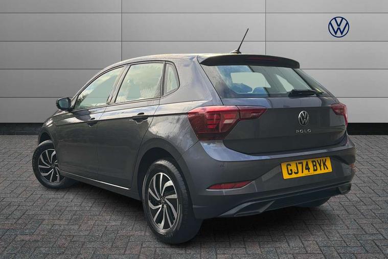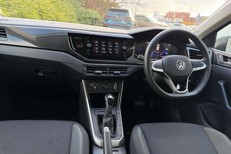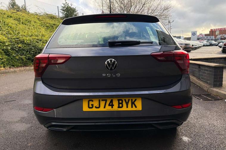 Adaptive cruise control with follow-to-stop and speed limiter, Advanced driver attention and drowsiness monitor, Bluetooth mobile phone interface, Dynamic road sign display, Emergency call service, Multifunction camera, Power assisted speed sensitive steering, Preparation for navigation system with media and internet package, Preparation for We connect and We connect plus, Speedo and rev counter, electronic odometer, trip, service interval display and exterior temperature gauge, Standard rear axle, Travel Assist - Lane keeping system and traffic jam assist, Travel assist including emergency assist, Trip computer, Warning signal and warning light for front and rear seatbelts not fastened, Washer fluid level indicator, Wireless app connect, Front wheel drive, Rear shock absorpion, Start-stop system with battery regeneration (recuperation - energy recovery during braking), DAB Digital radio, Diversity antenna for FM reception, Front and rear 6 speakers, Automatic dimming interior rear view mirror, Automatic headlight control with LED separate daytime running lights with coming/leaving home function, Body colour bumpers with chrome inserts, Body colour door handles, Body colour door mirrors, Electric front windows, Engine badge deletion, Headlight range adjustment, Heat insulating and laminated safety glass windshield, Heat insulating darkened glass in side and rear windows, LED Headlights, LED rear combination lamps, Power folding adjustable/heated exterior mirrors and front passenger exterior mirror lowering function, Rain sensor, Rear electric windows, Rear fog light, Rear side wing doors, Rear windscreen washer and wiper with interval delay, Third brake light, 12V power socket in centre console, 2 front and 2 rear reading lights with switch off delay and dimmer, 2 USB-C ports in the front, 2 USB-C charging sockets on the center console in the rear, 3 rear head restraints, 60/40 split folding rear seat and rear seat bench not split, Ceramique roof lining, Chrome plated radiator grille inserts, air vent surrounds and light switch surrounds, Door and side trim panel, Driver and front passenger seat height adjustment, Driver/passenger sunvisors with illuminated vanity mirrors, Front centre armrest, Front seat backrest storage pockets, Front standard seats, Handbrake lever handle in leather, Hartley/Thomas cloth upholstery, Headliner in recycled material, Isofix child seat preparation easy-fit (for two outer rear seats, and front passenger seat) compatible with I-size, Leather trimmed gear knob, Luggage compartment cover, Luggage compartment lighting, Removable luggage compartment floor, Single front passenger seat, Standard climatic zones, Standard pedal cluster, Three spoke leather wrapped multifunction steering wheel with shifting paddles, Light and vision pack - Polo, 3 point height adj front seatbelts + pretensioners, 3x3 point rear seatbelts, ABS, Driver and front passenger airbag with front passenger airbag deactivation, Drivers and front passengers safety optimised head restraints, ESC (Electronic stability control) + EDL (Electronic Differntial lock) and ASR (Traction control), Extended and predictive pedestrian/ cyclist protection, Front assist with autonomous emergency braking (for Adaptive Cruise Control ACC up to 130 mph), Front curtain and side airbags with center airbag, Front disc brakes, Hill hold control, Manual child lock in rear doors, Rear drum brakes, Single tone horn, Tyre pressure loss indicator, Alarm with interior protection, Anti-theft alarm system with interior monitoring, backup horn, and towing protection, Anti-theft wheel bolts, Electronic engine immobiliser, Lava stone black gloss/matt decorative inserts in dash and front door panels, Low rolling resistance tyres,