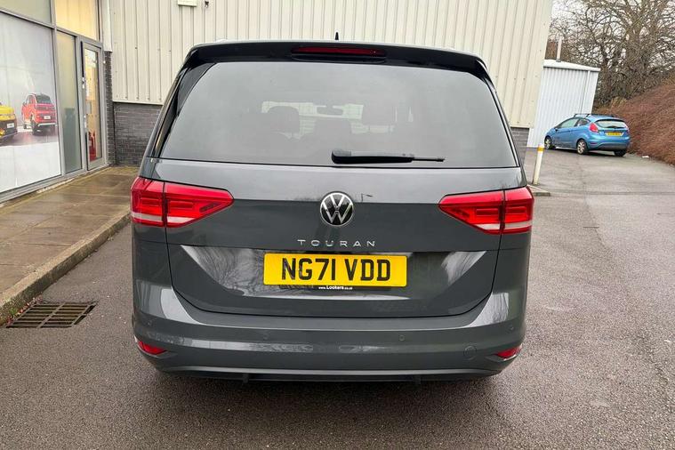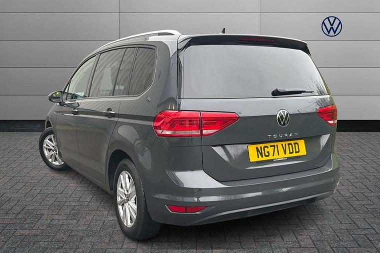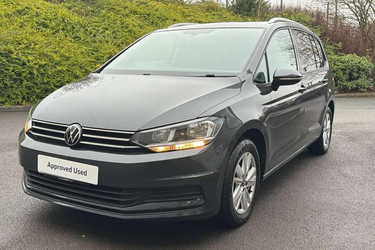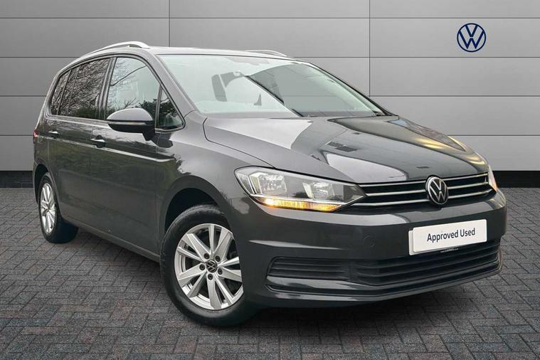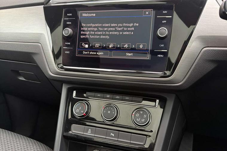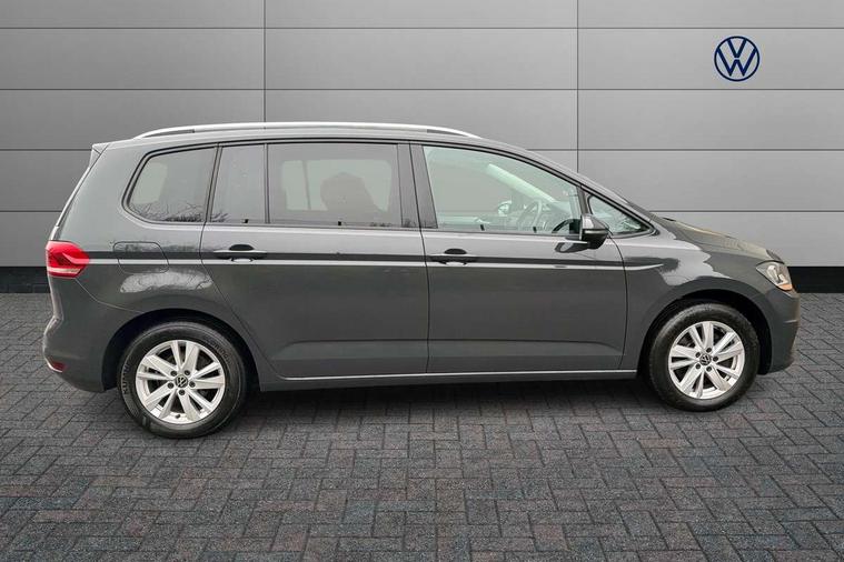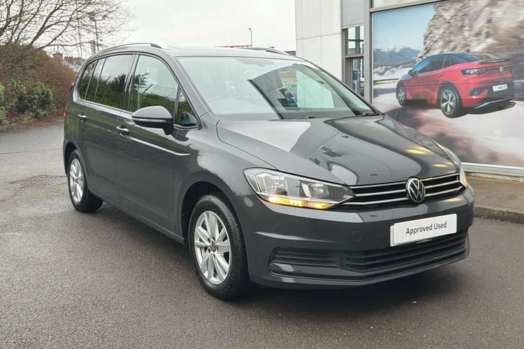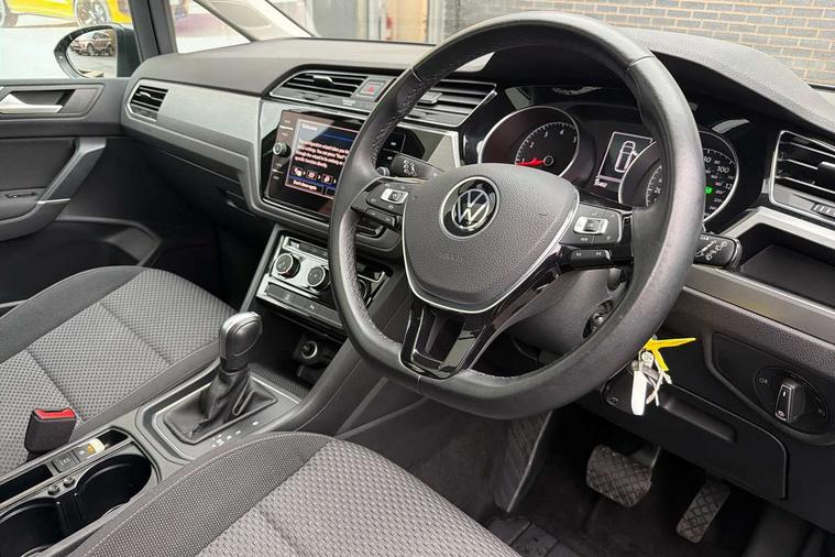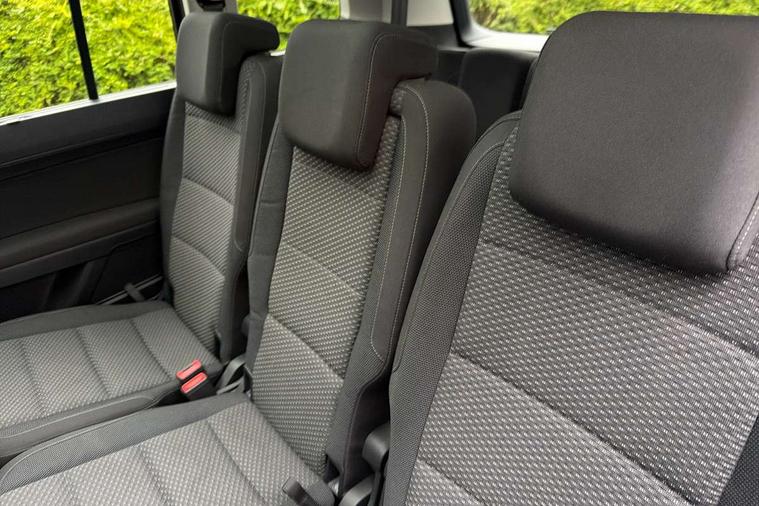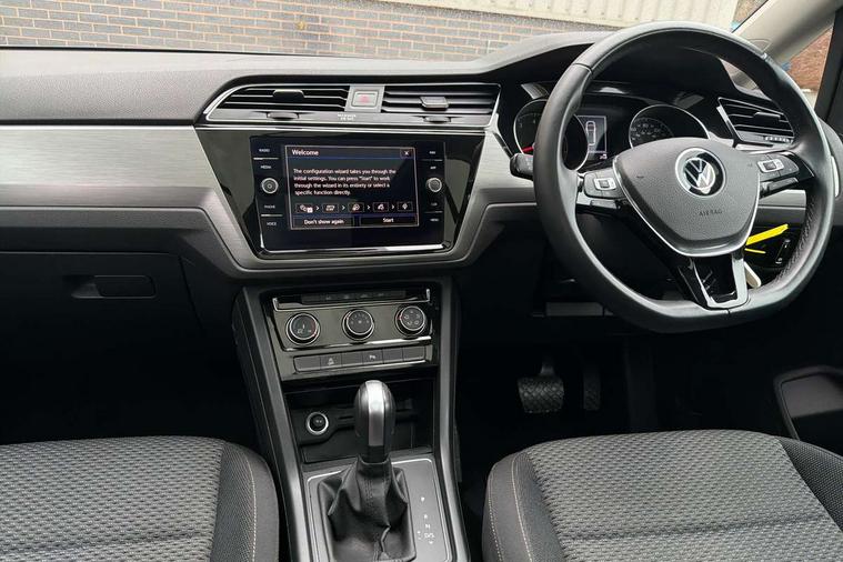 Adaptive cruise control, Audible lights on warning, Bluetooth telephone connectivity, Car information display, Discover nav, Euro 2D/3D map view+6.5" colour touchscreen CD + Radio, European map data, Car net guide/inform, Driver profile selection, Electronic odometer, Emergency services call system, External temperature gauge, Misfuelling protection device, Mobile pairing with SMS function, Multi function display, Rev counter with fuel gauge, Speed limiter, Speed sensitive power steering, Stop/start system, Think blue trainer driver tips and journey analysis, Trip and service interval display, We Connect Go Dongle, Petrol Particulate Filter, XDS electronic differential lock, 4x20 watt output, 8 Speakers, Audio Connectivity System, DAB Digital radio, MP3/WMA compatability, SD card slot, Title and cover art display, USB connection, Aerial integrated into side window, Auto dimming rear view mirror/rain sensor, Automatic coming/leaving home lighting function, Black front air intake and radiator grilles, Body colour bumpers, Body colour door handles, Body colour door mirrors with integral indicators, Chrome trimmed radiator grille louvre inserts, Dusk sensor + auto driving lights, Electric heated + adjustable door mirrors, Electric, glass sliding/tilting panoramic sunroof including integrated roller blind, Front and rear electric windows, Fully galvanised body, Gloss black finish B pillar, Green tinted heat insulating glass, High level third brake light, Rain sensor, Rear side wing doors, Rear tinted glass from B-pillar backwards approx 65% tinted, Rear wash/wipe with intermittent wipe setting, Silver roof rails, Tailgate wiper- reverse gear activation, Twin chrome exhaust tailpipes, Volkswagen roundel, Windscreen wipers intermittent wipe, 12V power point for Row 2, 12V socket in luggage compartment, 2 individual fold flat 3rd row seats, 2 three point seatbelts in 3rd row, 2nd row centre armrest, 2nd row centre seat converts into table, 3 single slide/fold/removable 2nd row seats, 3 spoke steering wheel, 3x3 point seatbelts on 2nd row with height adjust on outer seats, 4 boot load lashing points, 4 way adjustable front head restraints, 5 headrests, Driver and front passenger under seat drawer, Dust/pollen filters, Foldable front passenger seat backrest, Front and rear reading lights, Front centre armrest with storage compartment, Front comfort seats with lumbar support, Front cupholders x 2, Front passenger seat height adjust, Front seat storage pockets, Front seatback folding tables, Height adjustable driver's seat, Height/reach adjust steering wheel, Illuminated glovebox, Illuminated vanity mirrors, Instrument lighting white adjustable panel illumination with red night time illumination, Interior light with delay, Isofix on 2nd row outer seats, Isofix on 3rd row seats, Large storage compartment in roof console, Lasano cloth upholstery, Leatherette on rear of front seats, Low tunnel 2nd row seat, Luggage compartment lighting, Manual air conditioning, Media box in dashboard on passenger side, Multi storage in passenger/luggage areas, Multi-function centre console with storage facilities, Multifunction leather trimmed steering wheel including leather trimmed gear knob with 3.5" screen with multifunction computer, Retractable luggage cover, Split folding rear seat backrests, Storage bins on all doors, Family Pack - Touran, 3 point height adjustable front seatbelts, Auto hold function, Automatic post collision braking system, Door open warning reflectors, Driver/Front Passenger airbags, Drivers knee airbag, EDL + ASR, Electronic parking brake, Energy recovery system, ESC with ABS, First aid kit, Front and rear (row 2) curtain airbags, Front assist including city emergency braking, Front seat side impact airbags, Front/rear disc brakes, Hill hold control, Hydraulic Brake Assist (HBA), Loose wheel warning function, Manual passenger airbag deactivation function, Rear child proof door locks, Seatbelt warning lamp and buzzer, Traction control, Two tone horn, Warning triangle, Alarm with remote central locking and interior protection, Electronic engine immobiliser, Brushed design decorative inserts, 16" Karlstad alloy wheels with anti-theft wheel bolts, Tyre mobility system,