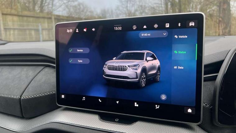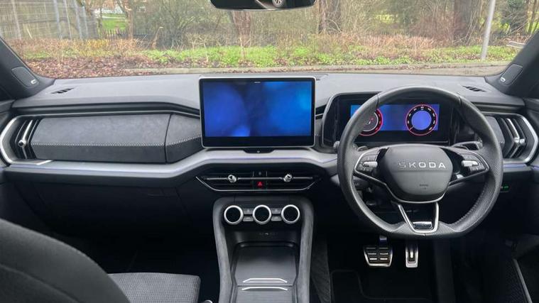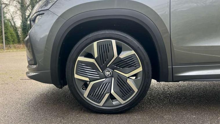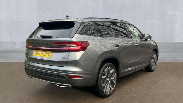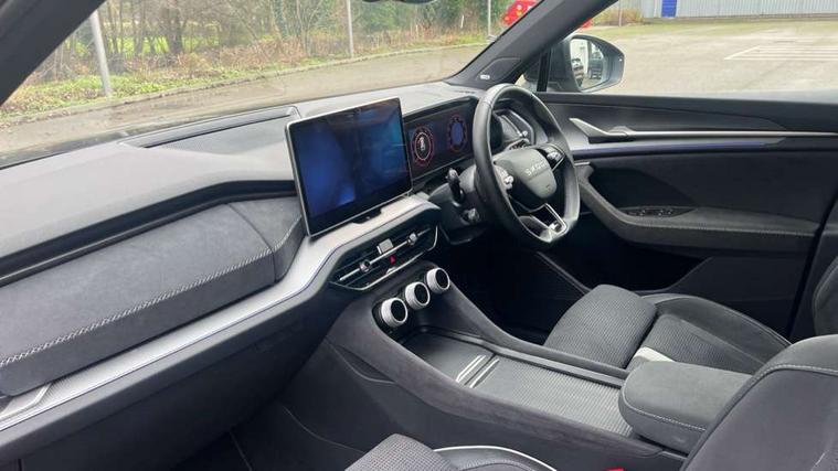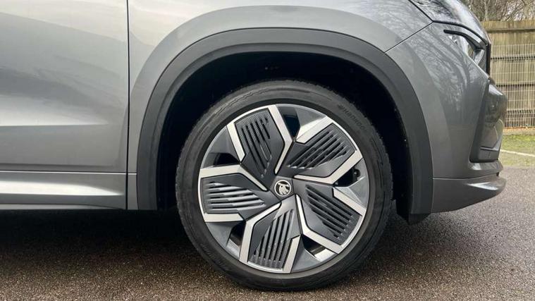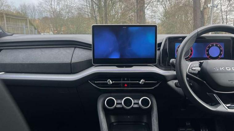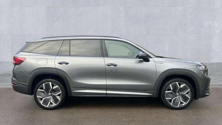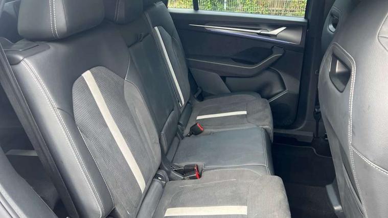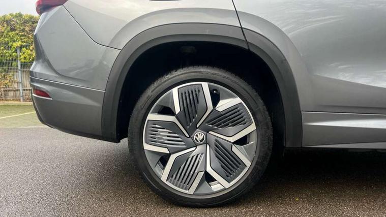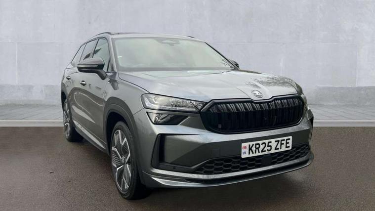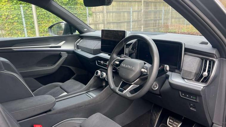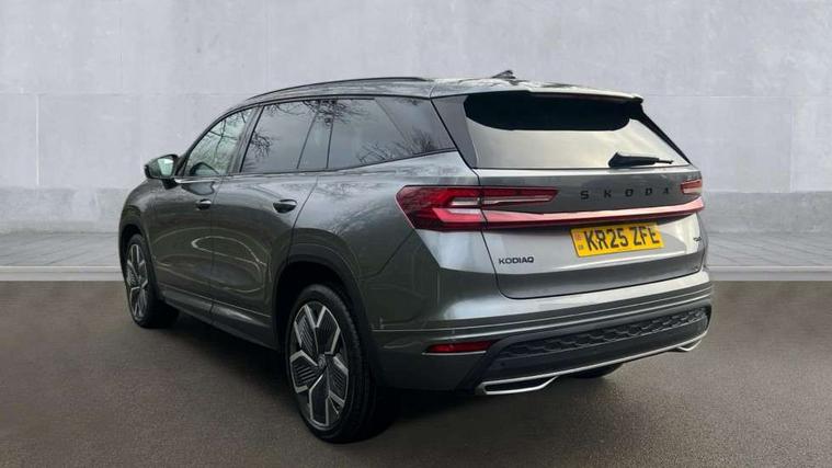 13" satellite navigation touchscreen display, Blind spot detection with door exit warning, Bluetooth system, ChatGPT functionality, Driver alert - Fatigue and drowsiness monitor, Dry display cleaner, Emergency call, Front and rear parking sensors, Front cross traffic assist, Lane assist, Off road modes, PAS, Rear traffic assist, Tailgate unlocking from outside, Traffic sign recognition, USB C Port x 2 in front centre console, Virtual Cockpit - 10.25" digital display, Voice control system, Wireless charging for two smartphones (15W) with cooling function, Wireless SmartLink for Apple CarPlay and Android Auto, Stop/start function, 2x USB-C in the rear, DAB Digital radio, Aero front windscreen wipers with intermittent function, Auto dimming rear view mirror, AWL (all weather lighting) and all weather light with cornering function, Black diffuser and decorative tailpipe with a unique dark chrome finish, Black roof rails, Black sports styling including front grille and window surrounds, Black wheel arch surrounds, Body colour door handles, Cornering light and poor weather light, Electric folding /adjustable/separted heated/folding door mirrors, auto dimming with boarding sports and memory function, Electric front and rear windows, Exterior black decorative trims, Front and rear sports bumpers including lower rear chrome strip, Gloss black door mirrors, Gloss black window frame and D pillar, Heat insulating glass in windshield, Heated rear window, Ice scraper in fuel tank cap, LED daytime running lights, LED third brake light in rear spoiler, Light assistant with automatic headlight control and coming home feature, Logo projection in door mirrors, Privacy glass, Rear roof spoiler, Rear side wing doors, Rear window wiper, Red decorative strip between rear LED lights, Safety reflectors on front and rear doors, Sportline badge on front fenders, Tailgate lettering in Black, Unique dark chrome design logo on alloy wheels, Window control switches with black trim, Windscreen wipers with rain sensor, Without engine designation, 1.5l bottle holder points in all door, 1x centre rear reading light, 2 seat bench in 3rd row, 3 configurable smart dials with 32mm coloured display, 3 seat bench in 2nd row, 4 foldable roof handles with rear coat hooks, Aluminium pedals, Ambient interior lighting - Dashboard, front-door stowage compartments, front and rear door panels and footwell lighting, Automatic gear selector on steering column, Chrome interior door handles, Driver/front passenger reading lights, Fabric headlining, Fixed bench 40:60:40 split folding backrests, Front and rear floor mats, Front centre armrest with jumbo box storage compartment, cup holder and 12V socket, Front sport seats, Height adjustable front headrests, Interior black decorative trims, Isofix child seat fittings in outer middle row rear seats and front passenger with top tether, Manually adjustable steering column, Pollen filter, Rear centre armrest with cupholders, Rear seat boot backrest release, Single front passenger seat, Skoda lettering on steering wheel, Storage pocket including mobile phone pockets on the backs of the front seats, Sunvisors with illuminated vanity mirrors, Three rear height adjustable headrests, Ticket holder on A Pillar, Tri zone climate control, Umbrella in door panel x1 made from sustainable materials, Upper and lower glovebox with card holder and coin compartment, USB C port by rear view mirror for charging only (15W), Acoustic package - Kodiaq, Performance package - Kodiaq, Sportline design selection pack - Kodiaq, Auto door release and activation of warning lights in the event of an accident, Driver and front passenger airbag with knee airbag and front passenger airbag deactivation, Electric child locks, Electronic parking brake, ESC (incl. ABS+EMD+MSR+ASR+EDL+HBA+DSR+RBS+ESBS+MCB+TSA+XDS), Front assist with braking reaction to vehicles, pedestrians and cyclists, Front disc brakes, Fuel cut off safety device, Height adjustable front 3 point seatbelts + pretensioners, Hill hold assist, Junction assist with automatic emergency braking, Rear disc brakes, Safety vest holder in door, Seat belt reminder for all seats, Three point rear seat belts, Two tone horn, Tyre pressure monitor, Alarm with interior monitoring and tilt sensor with safe function, Anti-theft wheel bolts, Immobiliser, Remote central locking with 2 keys, 20" Rila anthacite polished alloy wheel with black matte aero covers,