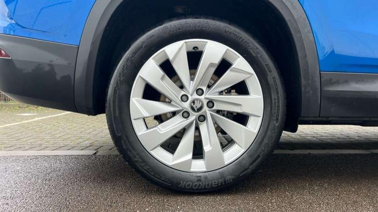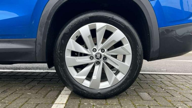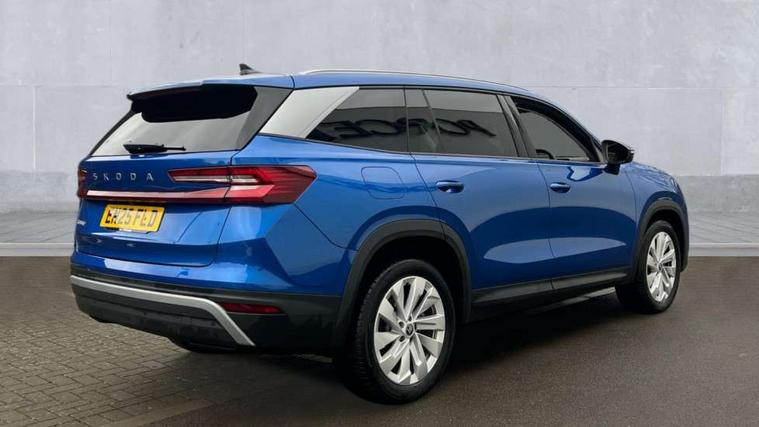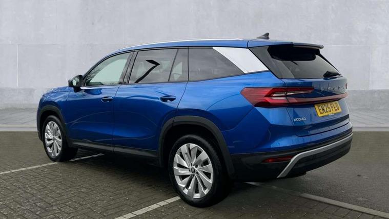 13" satellite navigation touchscreen display, Blind spot detection with door exit warning, Bluetooth system, ChatGPT functionality, Driver alert - Fatigue and drowsiness monitor, Dry display cleaner, Emergency call, Front and rear parking sensors, Front cross traffic assist, Lane assist, PAS, Rear traffic assist, Tailgate unlocking from outside, Traffic sign recognition, USB C Port x 2 in front centre console, Virtual Cockpit - 10.25" digital display, Voice control system, Wireless charging for two smartphones (15W) with cooling function, Wireless SmartLink for Apple CarPlay and Android Auto, Stop/start function, 2x USB-C in the rear, DAB Digital radio, Aero front windscreen wipers with intermittent function, Auto dimming rear view mirror, AWL (all weather lighting) and all weather light with cornering function, Black wheel arch surrounds, Body colour bumpers, Body colour door mirrors and handles, Cornering light and poor weather light, Electric folding /adjustable/separted heated/folding door mirrors, auto dimming with boarding sports and memory function, Electric front and rear windows, Exterior black decorative trims, Heat insulating glass in windshield, Heated rear window, Ice scraper in fuel tank cap, Invisible tailpipe, LED daytime running lights, LED third brake light in rear spoiler, Light assistant with automatic headlight control and coming home feature, Logo projection in door mirrors, Privacy glass, Rear roof spoiler, Rear side wing doors, Rear window wiper, Red decorative strip between rear LED lights, Safety reflectors on front and rear doors, Unique dark chrome design logo on alloy wheels, Window control switches with black trim, Windscreen wipers with rain sensor, Without engine designation, 1.5l bottle holder points in all door, 1x centre rear reading light, 2 seat bench in 3rd row, 3 configurable smart dials with 32mm coloured display, 3 seat bench in 2nd row, 4 foldable roof handles with rear coat hooks, Ambient interior lighting - Dashboard, front-door stowage compartments, front and rear door panels and footwell lighting, Automatic gear selector on steering column, Chrome interior door handles, Driver/front passenger reading lights, Fabric headlining, Fixed bench 40:60:40 split folding backrests, Front and rear floor mats, Front centre armrest with jumbo box storage compartment, cup holder and 12V socket, Height adjustable front headrests, Isofix child seat fittings in outer middle row rear seats and front passenger with top tether, Manually adjustable steering column, Pollen filter, Rear centre armrest with cupholders, Rear seat boot backrest release, Single front passenger seat, Skoda lettering on steering wheel, Storage pocket including mobile phone pockets on the backs of the front seats, Sunvisors with illuminated vanity mirrors, Three rear height adjustable headrests, Ticket holder on A Pillar, Tri zone climate control, Umbrella in door panel x1 made from sustainable materials, Upper and lower glovebox with card holder and coin compartment, USB C port by rear view mirror for charging only (15W), Exterior styling pack - Kodiaq, Auto door release and activation of warning lights in the event of an accident, Driver and front passenger airbag with knee airbag and front passenger airbag deactivation, Electric child locks, Electronic parking brake, ESC (incl. ABS+EMD+MSR+ASR+EDL+HBA+DSR+RBS+ESBS+MCB+TSA+XDS), Front assist with braking reaction to vehicles, pedestrians and cyclists, Front disc brakes, Fuel cut off safety device, Height adjustable front 3 point seatbelts + pretensioners, Hill hold assist, Junction assist with automatic emergency braking, Rear disc brakes, Safety vest holder in door, Seat belt reminder for all seats, Three point rear seat belts, Two tone horn, Tyre pressure monitor, Anti-theft wheel bolts, Immobiliser, Remote central locking with 2 keys,