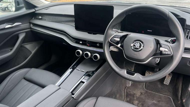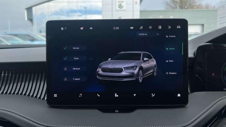 13" touchscreen display with satellite navigation, 4x USB-C ports (2x in front centre console and 2x in rear) (45W), Adaptive cruise control with speed assist, lane assist plus and traffic tram assist, Blind spot detection with door exit warning, Bluetooth system, CareConnect and Emergency Call, ChatGPT functionality, Drive mode selection, Driver fatigue sensor, Electrically operated boot with virtual pedal, Front assist with extended predictive pedestrian protection, Front cross traffic assist, PAS, Quick start all heating software functionality, Rear view camera with washer, Stop/start engine system, Traffic sign recognition, Turn assist with evasive assistance, Virtual Cockpit - 10.25" digital display, Voice control system, Wireless charging for one smartphone (15W) with cooling function, Wireless smartlink apple carplay, SmartLink+ android auto, DAB Digital radio, Display cleaner, FM radio connection, Web radio connection, Acoustic side windows and interior noise suppression, Backdrop lighting, Body colour door handles, Body coloured door mirrors, Chrome roof rails, Chrome window surround, Dynamic range control with poor weather light and integrated fog light, Electrically adjustable, heated, folding and driver side auto-dimming door mirrors with memory function, integrated indicators and logo projection, Frameless auto-dimming rear view mirror with USB-C, Front windscreen with heat-insulating glass, Ice scraper in fuel tank cap, LED 3rd brake light, Light assist with High beam control, Light assistant (coming/leaving home/tunnel light), Privacy glass, Rear fog lights (x2), Rear roof spoiler, Rear side wing doors, Rear windscreen wiper, Tow bar preparation, Unique dark chrome grille surround with dark chrome rib elements, Windscreen wipers with rain sensor, 12V socket 1x centre console 1x boot, 12V socket and 2x cargo elements in boot, 14-way electrically adjustable, memory, front seats with 4-way pneumatic lumbar support, and extendable thigh support with smart comfort entry aid, 2 spoke multifunction steering wheel with DSG paddles, 3 seat bench in 2nd row, 4x foldable bag hooks in boot, 60:40 Split folding rear seats, Advanced massage function for front seats, Bottle holders in the front doors 1.5 litre bottle and rear 1.5 litre bottle, Cup holder in front with easy open mat, Front and rear footwell illumination, Front armrest with storage box, Front sports comfort seats, Heated and ventilated front seats, Height adjustable front and rear head restraints, Height adjustable front passenger seat, Illuminated glovebox, Interior lights with control switches, Isofix child seat fittings in outer rear and front passenger seats, LED front and rear reading lights, Multi colour ambient lighting, Single front passenger seat, Storage pockets on back of front seats, Sun visors with illuminated vanity mirrors, Ticket holder on A Pillar, Tri zone climate control, Umbrella in driver's door, Light and view package - Superb, Transport package - Superb Estate, 3 rear seatbelts, 8 Airbags - Front driver and passenger, front side driver and passenger, centre, curtain front and rear, drivers knee, Crew protect assist, Driver and passenger seatbelts with warning light, Electronic parking brake, ESC including ABS, EBV, MSR, ASR, EDS, HBA, DSR, RBS, CBC, multi-collision brake (MKB) and Auto hold, Hill hold assist, Power operated child lock in rear doors, Alarm with interior monitoring tilt sensor and back up horn, Backrest remote release from trunk, Electronic engine immobiliser, Keyless start/stop, Remote central locking with SAFE system, Third key, Walk away locking, Decorative front door sills, Tyre repair kit,