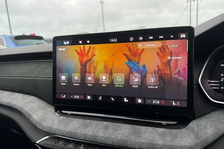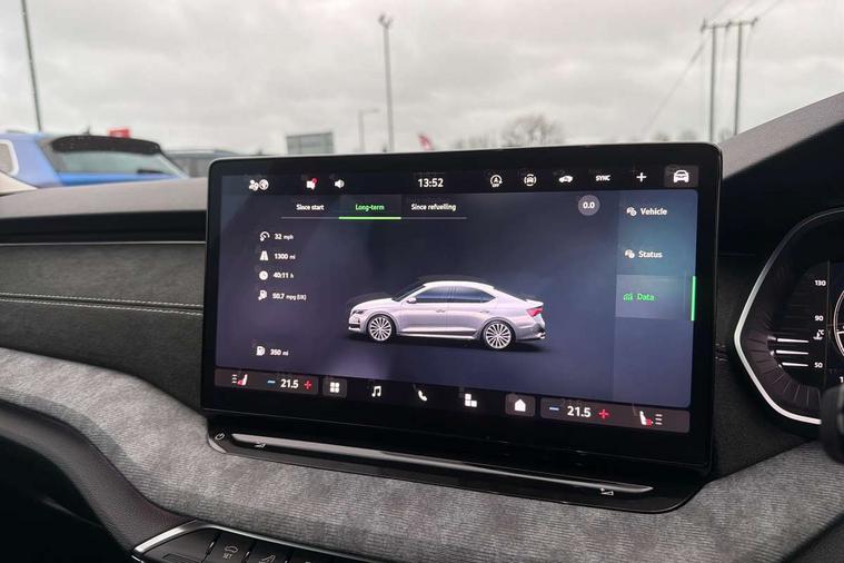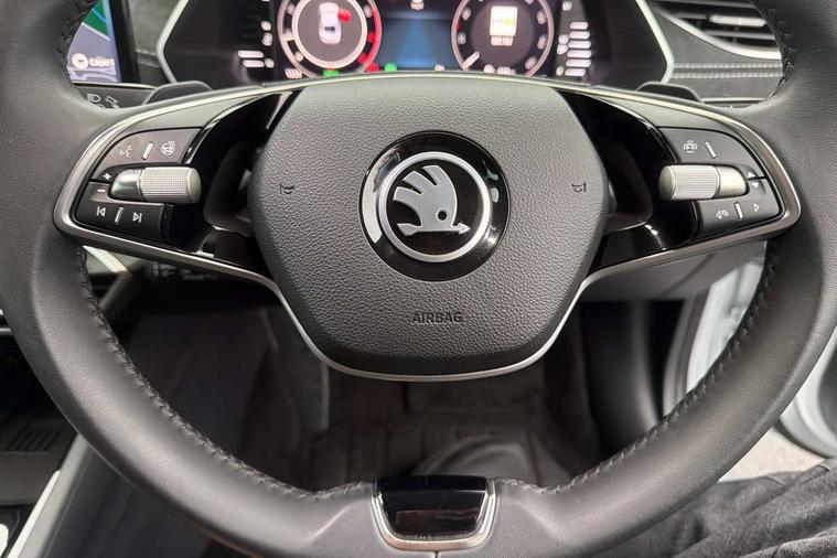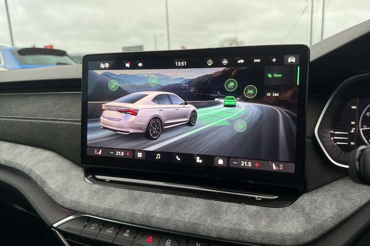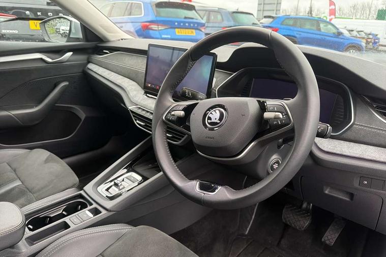 1x USB Typc C port in rear view mirror, 4x USB Type C ports - 2x in front centre console and 2x in rear (45W), Drive mode selection, Driver fatigue sensor, eCall emergency system, Electro-mechanical power steering, Front and rear parking sensors with manoeuvre assist, Front assist system, Traffic jam assist, Traffic sign recognition, Turn Assist, Virtual Cockpit - 10.25" digital display, Voice control system, Wireless charging (15W) with cooling function, Wireless SmartLink for Apple CarPlay and Android Auto, 13" touchscreen display with navigation, DAB Digital radio, Aero front windscreen wipers with intermittent function, Auto dimming rear view mirror, Body colour bumpers, Body colour door mirrors and handles, Chrome grille surround, Chrome strip in lower front bumper, Chrome window surrounds, Electric front and rear windows, Heated rear windscreen, High level third brake light, Ice scraper in fuel cap, LED daytime running lights, LED Headlights, Logo projection in front doors, Rain and light sensors, Rear fog light on one side, Rear privacy glass, Rear side wing doors, 12 volt socket in boot, 3 rear headrests, 3 seat bench in 2nd row, 4 foldable roof handles, Boot net programme, Front head restraints, Heated front seats, Illuminated glovebox, Interior door handles in dark chrome, Jumbo Box storage, Luggage compartment lighting x2 lights, Mechanical rear seat release from boot, Parcel shelf - folding, Single front passenger seat, Steering wheel in black leather with black stitching, Storage compartments in left and right of boot, Sun visors with mirrors, Sunglasses storage, Ticket holder, Umbrella in door panel, Unsplit rear bench seat, split folding backrest with centre armrest with cupholder, Comfort package - Octavia, 3x3 point rear seat belts, Alarm with interior monitoring, tilt sensor and back up horn, Curtain airbags and front side airbags, Driver and front passenger airbags, Drivers knee airbag, Electronic parking brake, ESC including ABS, EBV, MSR, ASR, EDS, HBA, DSR, Front central airbag, Hill hold assist, ISOFIX on front passenger seat and outer rear seats, Passenger airbag deactivate switch, Three point seat belts in front and rear, Two tone horn, Tyre pressure monitor, Visual and acoustic seat belt reminder, Warning reflectors in front door, Anti-theft wheel bolts, Keyless start/stop, Remote central locking, Chrome air vent surrounds,