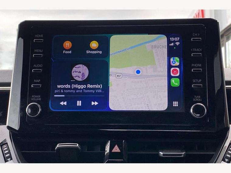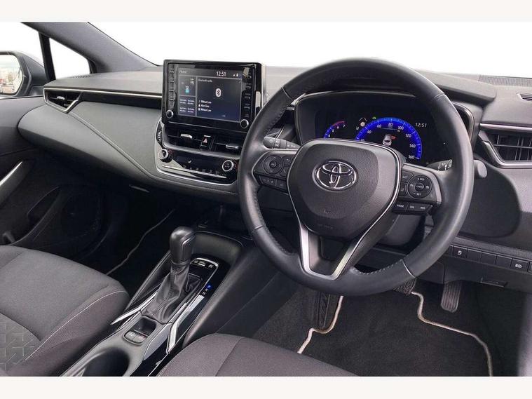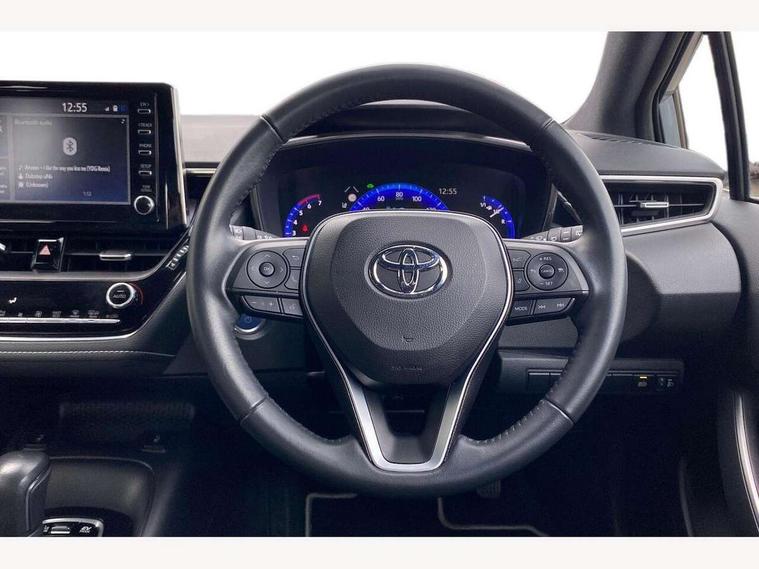 7" Multi information display screen, Bluetooth telephone connectivity, Connected car functionality upgrade, tracker, remote status and e-care, Dynamic radar cruise control (with RSA) including switch on steering wheel, E-call, Electrically assisted power steering, EV drive indicator, Lane Departure Alert (LDA) switch on steering wheel, Memory on adjustable speed limiter, Push button start, Reversing camera, Smartphone integration with Apple CarPlay and Android auto, Gasoline particulate filter, Vehicle Stability Control (VSC), 6 speakers, 8" Touchscreen with MM19 Multimedia system and voice recognition, AM/FM radio, DAB Digital radio, USB and Aux in connectors + 12V front outlet, Anti-jam protection on power windows, Auto up and down function on all power windows, Automatic headlights with high beam assist, Black metallic surround on lower front grille, Black toyota logo in front, Black window frames, Body colour rear spoiler, Body coloured bumpers, Body coloured door mirrors, Body coloured outside door handles, Follow me home headlights, LED daytime running lights, LED front fog lights, LED Headlights, LED High mounted stop light, Manual day/night rear view mirror, Power adjustable heated door mirrors, Power front windows, Power rear windows, Rain sensor, Rear side wing doors, Rear window defogger, Rear window wiper, Shark fin antenna, Time adjustment on intermittent wiper, Turning signal integrated indicators in door mirrors, Unique lower skirt, Unique side rocker with black insert, UV-filter on driver and passenger windows, 3 rear headrests, 3 seat bench in 2nd row, 3 spoke leather steering wheel + gear knob, 60/40 split folding rear seat, Adjustable speed limiter switch on steering wheel, Audio, multimedia and telephone switches on steering wheel, Boot light, Centre room light, Clean air filter, Driver and front passenger personal light, Driver and passenger assist grip, Driver and passenger sun visor with mirror and light, Dual zone automatic air conditioning with ECO mode switch, Fabric armrests, Front and rear cup and bottle holders, Front door pockets, Front head restraints, Front passenger seat, Heated driver and front passenger seats, Illuminated entry system in room lamp, ISOFIX seat fixing (2 fixings on rear outer seats), Leather gear shift with satin chrome on gear shift console, Manual height adjustable for driver and front passenger seat, Parcel shelf, Passenger seat back pocket, Pollen filter, Power adjustable lumbar support on driver seat, Power window switches with satin chrome inserts, Quilted fabric upholstery with grey stitches seats, Rear armrest with 2 cupholders, Rear passenger coat hooks (2), Satin chrome inside door handles, Shopping bag hooks in luggage compartment, Sliding armrest on centre console box, Slow opening glovebox with lights, Tilt/telescopic steering column, Voice recognition switch on steering wheel, Whiplash Injury Lessening (WIL) feature (active headrest) for seats, Toyota safety sense 2 pack - Corolla, 3x3 point rear seatbelts, Adjustable driver and front passenger seat belt extender to top anchor point, Anti lock braking system + Electronic brake force distribution, Brake assist function, Child locks on rear doors, Downhill Assist Control (DAC), Electronic parking brake, Emergency brake light signal (EBS), Front passenger airbag on/off switch, Front seatbelt reminder, HAC - Hill start assist control, Rear seat belt reminder, Seatbelt pretensioners and force limiters, Supplemental restraint system (SRS) 7 airbags - dual driver, dual side curtain, side impact and driver knee airbags, Traction control, Tyre pressure warning system, Acoustic vehicle alert system (AVAS), Alarm with motion sensor and immobilizer, Remote central locking + deadlocks, Satin chrome dash trim, Soft touch texture on upper dashboard, Unique wheel finish with red wheel cap,