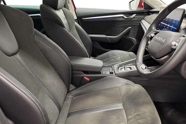 1x USB Typc C port in rear view mirror, 4x USB Type C ports - 2x in front centre console and 2x in rear (45W), Drive mode selection, Driver fatigue sensor, eCall emergency system, Electro-mechanical power steering, Front assist system, Traffic jam assist, Traffic sign recognition, Turn Assist, Virtual Cockpit - 10.25" digital display, Voice control system, Wireless charging (15W) with cooling function, Wireless SmartLink for Apple CarPlay and Android Auto, 13" touchscreen display with navigation, DAB Digital radio, Aero front windscreen wipers with intermittent function, Auto dimming rear view mirror, Body colour bumpers, Body colour door mirrors and handles, Chrome grille surround, Chrome roof rails, Chrome strip in lower front bumper, Chrome window surrounds, Electric front and rear windows, Heated rear windscreen, High level third brake light, Ice scraper in fuel cap, LED daytime running lights, LED Headlights, Logo projection in front doors, Rain and light sensors, Rear fog light on one side, Rear privacy glass, Rear side wing doors, Rear spoiler, Rear window wiper, 12 volt socket in boot, 3 rear headrests, 3 seat bench in 2nd row, 4 foldable roof handles, Electric auxiliary air heater, Front head restraints, Heated front seats, Illuminated glovebox, Interior door handles in dark chrome, Jumbo Box storage, Luggage compartment lighting x2 lights, Mechanical rear seat release from boot, Single front passenger seat, Steering wheel in black leather with black stitching, Storage compartments in left and right of boot, Sun visors with mirrors, Sunglasses storage, Ticket holder, Umbrella in door panel, Unsplit rear bench seat, split folding backrest with centre armrest with cupholder, Comfort package - Octavia Estate, Simply clever package premium with Storage compartment under passenger seat - Octavia, 3x3 point rear seat belts, Alarm with interior monitoring, tilt sensor and back up horn, Curtain airbags and front side airbags, Driver and front passenger airbags, Drivers knee airbag, Electronic parking brake, ESC including ABS, EBV, MSR, ASR, EDS, HBA, DSR, Front central airbag, Hill hold assist, ISOFIX on front passenger seat and outer rear seats, Passenger airbag deactivate switch, Three point seat belts in front and rear, Two tone horn, Tyre pressure monitor, Visual and acoustic seat belt reminder, Warning reflectors in front door, Anti-theft wheel bolts, Keyless start/stop, Remote central locking, Chrome air vent surrounds,