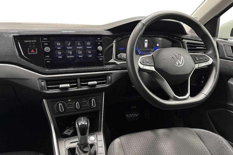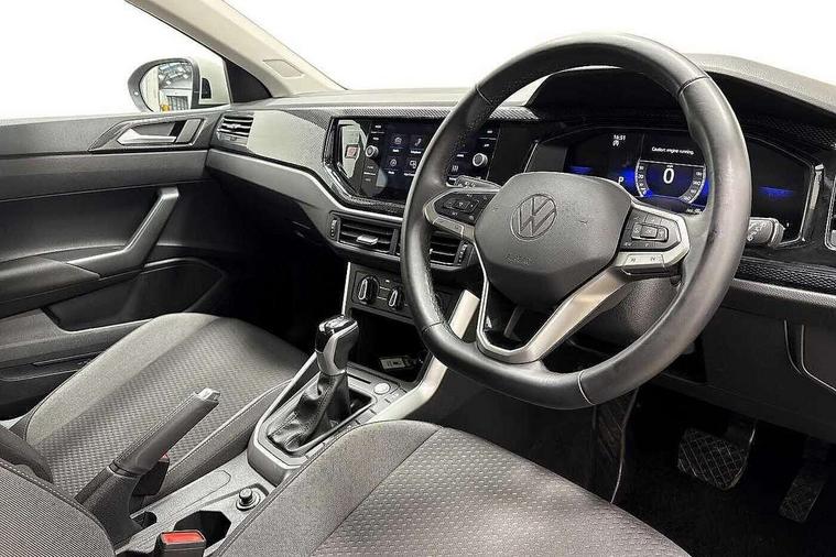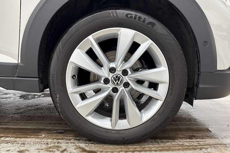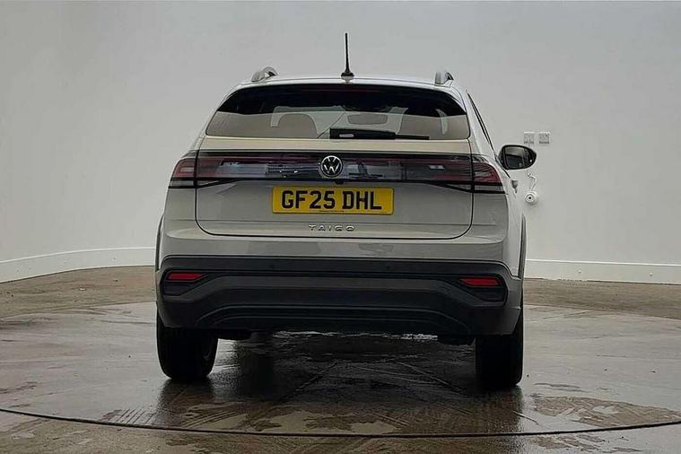 Adaptive cruise control, Advanced driver attention and drowsiness monitor, Dynamic road sign display, e-Call (emergency call), Power Steering, Rear view camera, Travel assist including emergency assist, Washer fluid level indicator, Wireless Charging including Bluetooth, Start-stop system with battery regeneration (recuperation - energy recovery during braking), WeConnect plus, Ambient lighting with logo projection, Aspherical driver's exterior mirror, Body coloured bumpers, Body coloured exterior mirror housings and door handles, Electric windows, External USB type C socket and charging sockets, Heat insulating glass windscreen, LED rear combination lamp, LED third brake light, Left convex exterior mirror, Power folding adjustable/heated exterior mirrors and front passenger exterior mirror lowering function, Rear fog light on one side, reversing light on both sides, Rear side wing doors, Rear wash/wipe with intermittent wipe setting, Side windows in heat-insulating glass, from B-pillar and rear window dark tinted, 'Slash/ Austin' Cloth upholstery, 12V socket in centre console, 2 front reading lights, 3 rear head restraints, 3 seat bench in 2nd row, Black carpets, Ceramique headliner, Child seat anchor for child seat system i-Size, 2x top tether and child seat anchor in front on front passenger side, Door and side trim panels in titan black, Driver and front passenger seat height adjustment, Front centre armrest, Handbrake lever handle in leather, Height and reach adjustable steering wheel, Leather trimmed gear knob, Leather wrapped multifunction steering wheel with paddle shift, Luggage compartment floor, Luggage compartment light, Lumbar support for driver's and front passengers seat, Seat covers in titanium black, Single front passenger seat, Split folding backrest with centre armrest and unsplit rear seat bench, Storage compartment under front seats, Sun visors with illuminated vanity mirrors, Titanium black instrument panel, Chrome Package - Taigo, Drivers assistance package - Taigo, Light and sight pack - Taigo, 2 x 3-point seatbelts/outer rear seats with ECE label, 3-point seat belts in front with pretensioner and height adjustment, 3-point seatbelt for centre rear seat, Driver and front passenger airbag with front passenger airbag deactivation, Driver and front passenger safety-optimised head restraints, Electronic stability control, Extended and predictive pedestrian/ cyclist protection, Front and rear disc brakes, Front curtain and side airbags with center airbag, Hill start assist, Manual rear child locks, Single tone horn, Tyre pressure loss indicator, Anti-theft alarm system with interior monitoring, backup horn, and towing protection, Keyless locking and starting system keyless access with safelock, Black (slush) Dashboard, Lava stone black gloss/matt decorative inserts in dash and front door panels, Low rolling resistance tyres,
