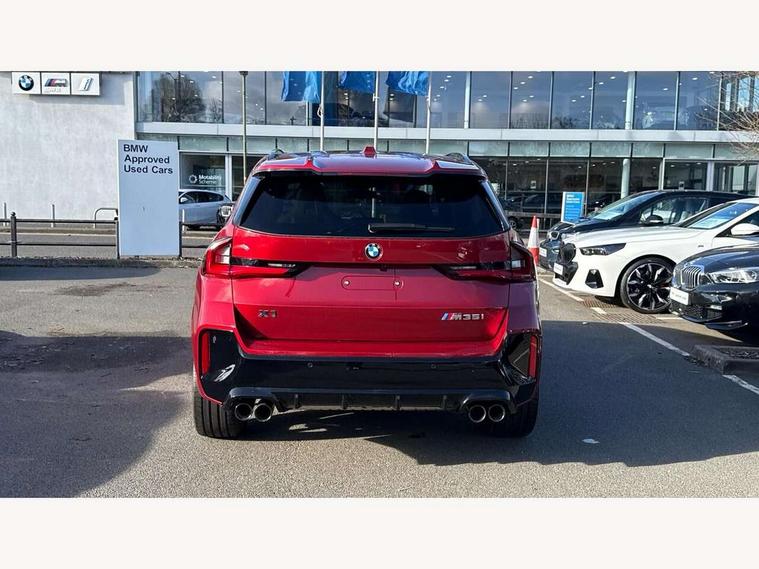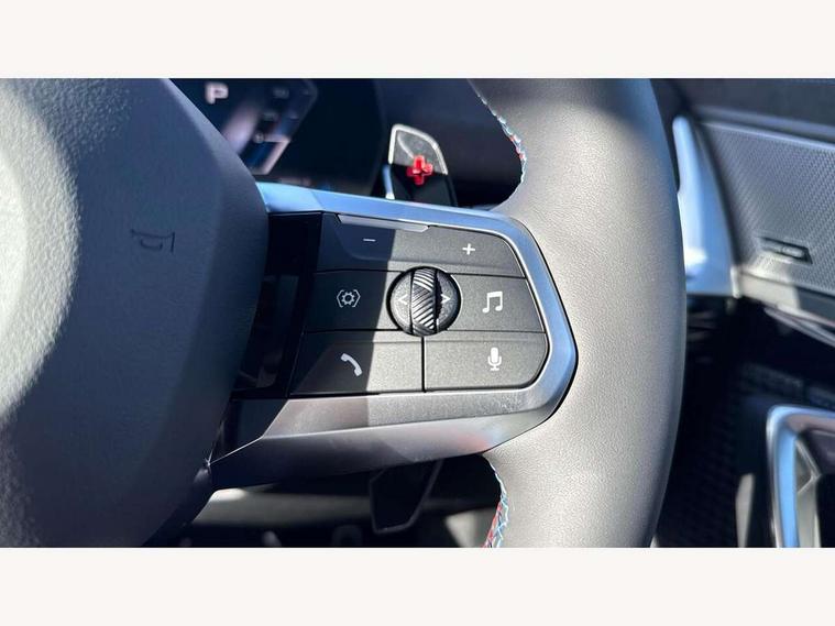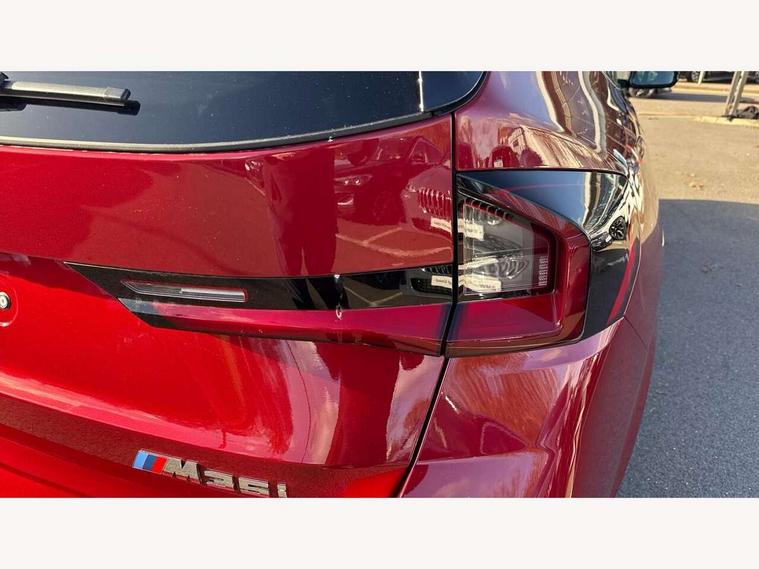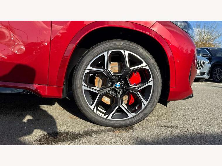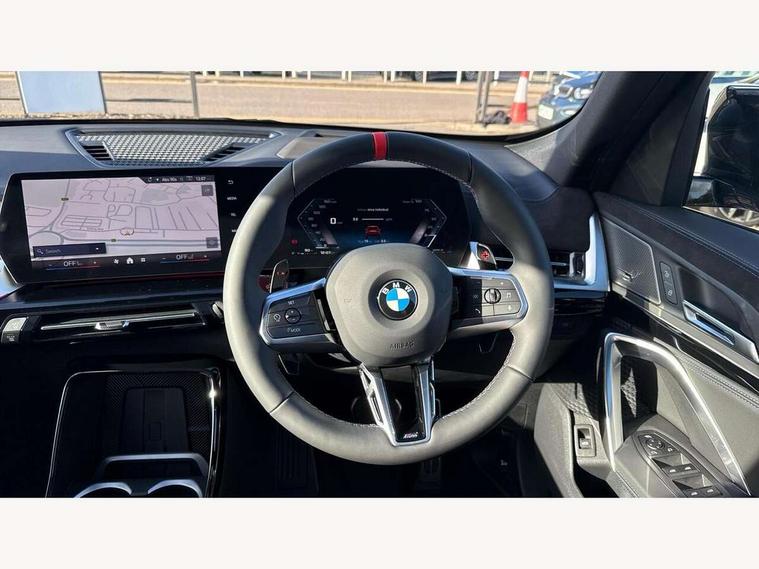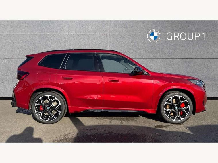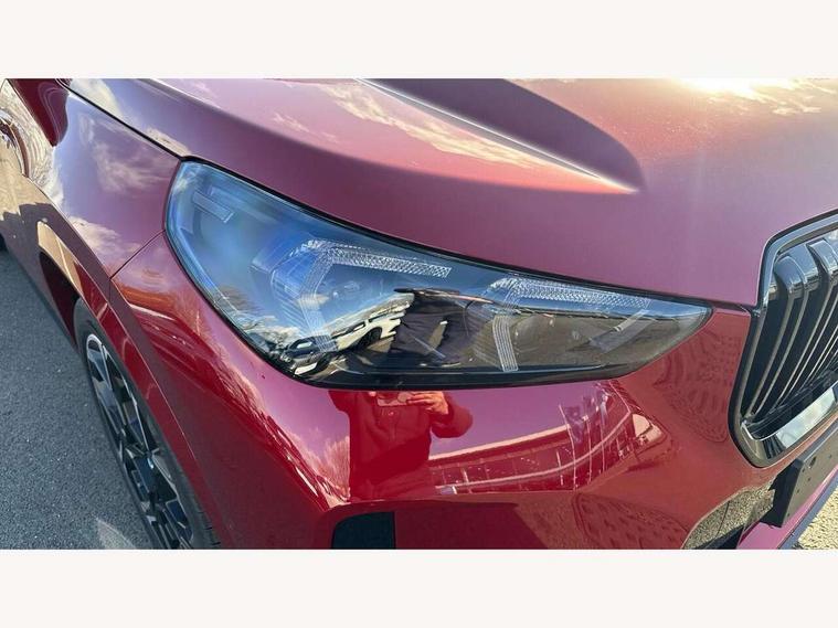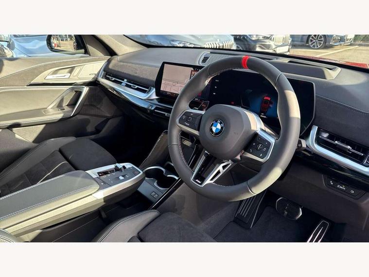 Attentiveness assist, Automatic start/stop function, BMW Live Cockpit Plus with 10.25" instrument cluster and 10.7" display, BMW Operating system 9 with BMW Maps, real-time traffic information, in-car experiences, remote services and smartphone integration, BMW Teleservices, Brake pad wear indicator, Condition based service, Connected eDrive Services, Drive off assistant, Electrically opening/closing tailgate with opening/closing with remote control and contactless opening and closing, iDrive controller, Language version English, My Modes, Parking Assistant with Reversing Assistant, active PDC, Lateral Parking Aid, Rear View Camera and Park Distance Control, Personal Profile - automatic lock when driving away selectable, Servotronic PAS, Tyre puncture warning system, Widescreen display, Aluminium lightweight construction, Double VANOS, EU6 emissions management, High precision injection, Larger Fuel Tank, M Adaptive suspension, Performance Control, Petrol Particulate Filter, Reinforced crankshaft drive, Steptronic transmission with double clutch and gear shift paddles, Twin scroll turbocharger with Valvetronic, xDrive intelligent four wheel drive system, BMW Personal eSim, DAB Digital radio, Harman/Kardon surround sound audio system, 4 exhaust tailpipes with tailpipe trims in pearl chrome, BMW M radiator grille with twin vertical bars in black high gloss including M badge, Dynamic brake lights, Electric adjustable heated door mirrors, Electric windows - front and rear, with open/close fingertip control, anti-trap facility and comfort closing, Folding door handles integrated flush with surface, Follow me home headlights, Front and rear bumper panel with M specific design, in body colour with inserts in black high gloss, Front door exit lights, Heated rear window, High gloss shadowline, Key with M identification, LED 3rd brake light integrated in rear spoiler, LED daytime running lights, LED number plate light, M mirror caps in black high gloss, M roof rails high gloss shadow line, M signature on front right/ left side panel, M spoiler in black high gloss, Model badge X1 on left tailgate, motorisation on right, Model inscription on right tailgate, Rain sensor including auto headlights activation, Rear side wing doors, Rear wiper, Roof mouldings in vehicle colour, Side sill trim panel in M styling, Sill cover in body colour, Sun protection glass, Trailer stabilisation logic, Windscreen washer nozzle for rear view camera, Windscreen wipers front with heated washer nozzles, 12V - Power sockets with front centre console and luggage compartment, 2 bag hooks in luggage compartment, 2 cup holders in front, 2 x USB Type C ports for charging in front centre console + 1 x USB Type C ports for charging in rear centre console, 3 rear headrests, 3 seat bench in 2nd row, 3 upper retaining strap clips integrated into rear panels of seat backrests, 4 grab handles, 40:20:40 split folding rear seats, Ambient interior lighting, Anthracite headlining, Anthracite Velour front and rear floormats, Bottle trays in all doors, Child seat ISOFIX attachment for two outer rear seats and front passenger seat with anchorage points, Clothes hook rear, Driver and front passenger heated seats, Dual zone automatic air conditioning, Front and rear door pockets, Front and rear footwell lighting, Front centre console storage compartment, Front/rear adjustable head restraints, Glove compartment, Interior door handle recess light on all doors, Light on right in luggage compartment, M sport leather steering wheel, Manual steering column height and depth adjustment, Middle centre console storage compartment, One piece parcel shelf opens together with tailgate and removable, Rear armrest in door trim panel, Single front passenger seat, Sport leather multifunction steering wheel with thumbrests and operation of instrument display, audio, telephone and driver assistance, Storage compartment net in left side trim panel, Storage compartment with folding cover under centre console armrest cushion, Storage tray in right side trim panel, Tilt adjustment incl. cargo function of 2nd row of seats, Vanity mirror lights, ABS/EBD, Automatic hold function, Automatic Stability Control (ASC), BMW emergency call, Braking readiness, Cornering brake control (CBC), Crash Sensor - activates hazard/interior lighting + unlocks doors, Driver/Front Passenger airbags, Driver/front passenger side airbags, Dry braking, Dynamic brake control, Dynamic stability control + (DSC+), Electromechanical parking brake, Energy recovery system, First aid kit, Front and rear brake discs, Front and rear head airbags, Front passenger airbag deactivation, Integrated brake system, PC iBrake PostCrash approach control warning with light braking function, Rear door child safety locks, Three point seat belts in all seats, Tyre pressure monitor, Warning triangle, Alarm system with tilt sensor, monitoring doors, bonnet interior and tailgate, Closing system with central locking, Locking wheel bolts, Luxury instrument panel, Tyre repair kit plus,