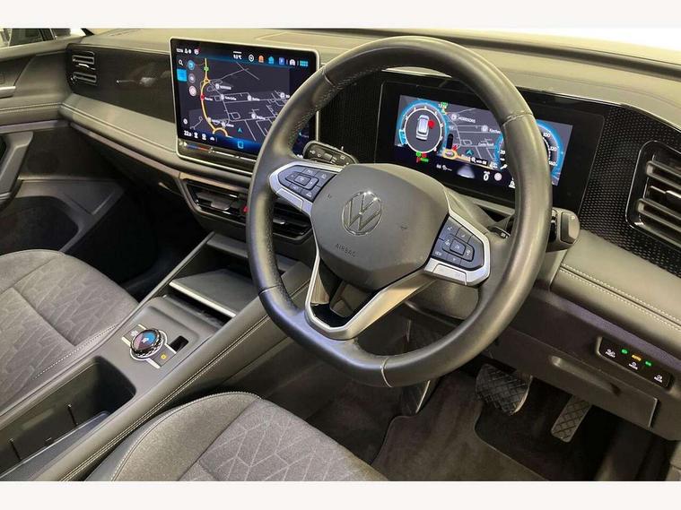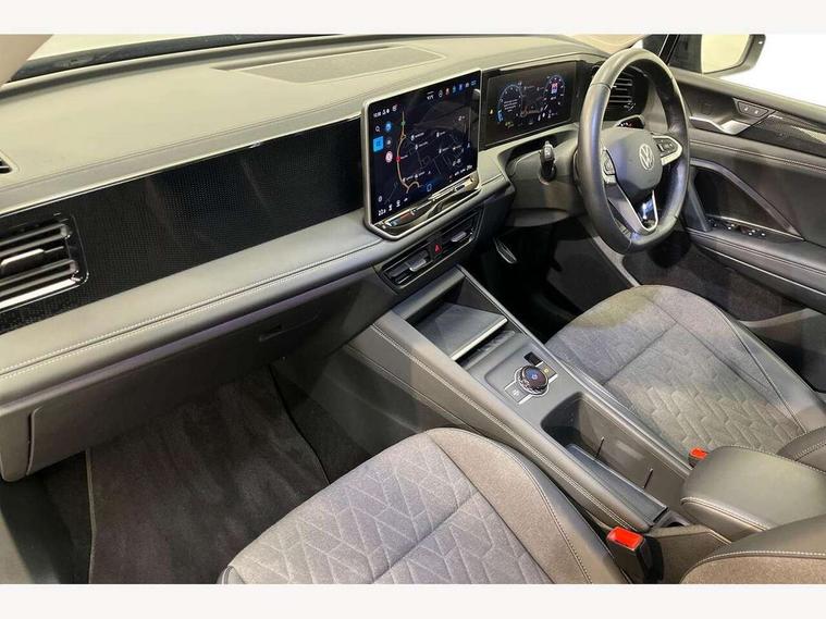 Adaptive cruise control (ACC), Advanced driver attention and drowsiness monitor, Bluetooth mobile phone interface, Digital Cockpit Pro - 10.25" high resolution dash display screen with customisable menus and information, Dynamic road sign display, E-Sim card for online connectivity, eCall emergency call service, Front Assist - Autonomous emergency braking with pedestrian and cyclist monitoring, Lane change system, Side assist, Rear traffic alert and Exit warning system, Lane keeping system Lane Assist, Multifunction front facing camera, Oncoming vehicle braking when turning including swerve support, Park assistance plus with front and rear parking sensors, Power assisted steering with speed sensitive, Start/stop system with regenerative braking, Warning signal and warning light for front and rear seatbelts not fastened, Wireless App-Connect, Front wheel drive, Digital radio reception (DAB), Diversity antenna for FM reception, Ambient lighting with logo projection, Auto dimming interior rear view mirror, Automatic headlight control system, Body coloured bumpers and air intake with chrome trim, Body coloured door handles, Body-coloured exterior mirror housings, Coming/leaving home lighting function, Heat insulating glass in side and rear windows, Heat insulating windshield, Heated rear window, High level 3rd brake light, Illuminated door handle recesses, Illuminated lightline between headlamps, Rain sensor windscreen wipers, Rear fog light on one side, reversing light on both sides, Rear side wing doors, Rear wiper, 12V outlet in center console rear and in luggage compartment, 12V socket in centre console, 3 bench rear seats in 2nd row, Air care climatronic 3 zone air conditioning system with rear air conditioning control panel, Carpet mats, front and rear, Centre console with illuminated storage compartment with sliding cover and two drinks holders, Ceramique headlining, Door and side trim panel in foam film and woven fabric, Front centre armrest, ISOFIX anchors for child seats on outer rear seats and front passenger seat compatible with i-Size, Mechanical rear seat release, Power adjustable lumbar support in front, Rear bench seat, split folding, longitudinally movable and folding with load-through hatch and centre armrest, Safety optimised front head restraints, Single front passenger seat, Sun visors with illuminated vanity mirrors, Three rear head restraints, Variable luggage compartment floor, Comfort package incl. Memory feature for Park assist and Safelock - Tiguan, Design package - Tiguan, 3 point seat belt for centre rear seats, 3 Point seat belts in front with pretensioners, 3 point seatbelts in outer rear with ECE label, Driver and front passenger airbag with front passenger airbag deactivation, Electronic parking brake with auto hold, Front and rear curtain airbags, Front and rear side airbags, Front centre airbag, Front disc brakes, Manual child proof rear door locks, Rear disc brakes, Two tone horn, Warning triangle, Anti theft wheel bolts, Soul instrument panel,