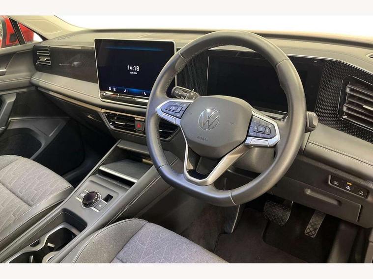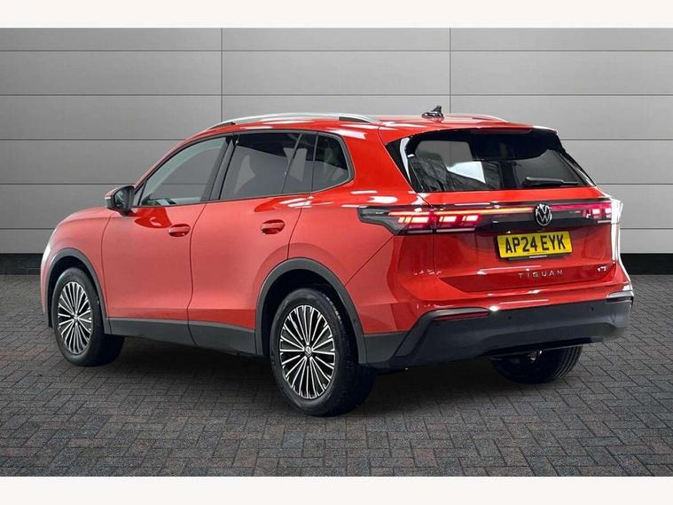 Adaptive cruise control (ACC), Advanced driver attention and drowsiness monitor, Bluetooth mobile phone interface, Digital Cockpit Pro - 10.25" high resolution dash display screen with customisable menus and information, Dynamic road sign display, E-Sim card for online connectivity, eCall emergency call service, Front Assist - Autonomous emergency braking with pedestrian and cyclist monitoring, Lane change system, Side assist, Rear traffic alert and Exit warning system, Lane keeping system Lane Assist, Multifunction front facing camera, Oncoming vehicle braking when turning including swerve support, Park assistance plus with front and rear parking sensors, Power assisted steering with speed sensitive, Start/stop system with regenerative braking, Warning signal and warning light for front and rear seatbelts not fastened, Wireless App-Connect, Front wheel drive, Digital radio reception (DAB), Diversity antenna for FM reception, Ambient lighting with logo projection, Auto dimming interior rear view mirror, Automatic headlight control system, Body coloured bumpers and air intake with chrome trim, Body coloured door handles, Body-coloured exterior mirror housings, Coming/leaving home lighting function, Heat insulating glass in side and rear windows, Heat insulating windshield, Heated rear window, High level 3rd brake light, Illuminated door handle recesses, Illuminated lightline between headlamps, Rain sensor windscreen wipers, Rear fog light on one side, reversing light on both sides, Rear side wing doors, Rear wiper, 12V outlet in center console rear and in luggage compartment, 12V socket in centre console, 3 bench rear seats in 2nd row, Air care climatronic 3 zone air conditioning system with rear air conditioning control panel, Carpet mats, front and rear, Centre console with illuminated storage compartment with sliding cover and two drinks holders, Ceramique headlining, Door and side trim panel in foam film and woven fabric, Front centre armrest, ISOFIX anchors for child seats on outer rear seats and front passenger seat compatible with i-Size, Mechanical rear seat release, Power adjustable lumbar support in front, Rear bench seat, split folding, longitudinally movable and folding with load-through hatch and centre armrest, Safety optimised front head restraints, Single front passenger seat, Sun visors with illuminated vanity mirrors, Three rear head restraints, Variable luggage compartment floor, Comfort package incl. Memory feature for Park assist and Safelock - Tiguan, Design package - Tiguan, 3 point seat belt for centre rear seats, 3 Point seat belts in front with pretensioners, 3 point seatbelts in outer rear with ECE label, Driver and front passenger airbag with front passenger airbag deactivation, Electronic parking brake with auto hold, Front and rear curtain airbags, Front and rear side airbags, Front centre airbag, Front disc brakes, Manual child proof rear door locks, Rear disc brakes, Two tone horn, Warning triangle, Anti theft wheel bolts, Soul instrument panel,