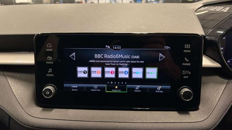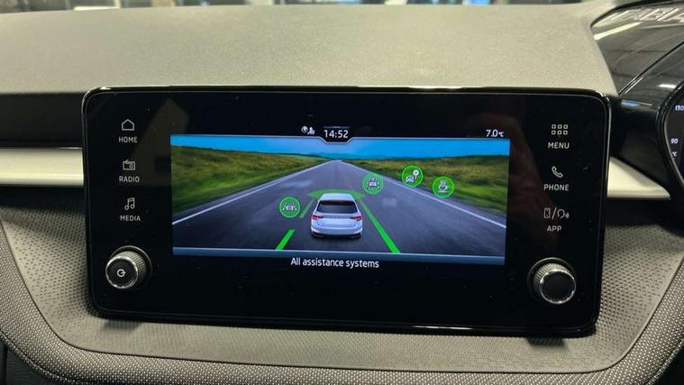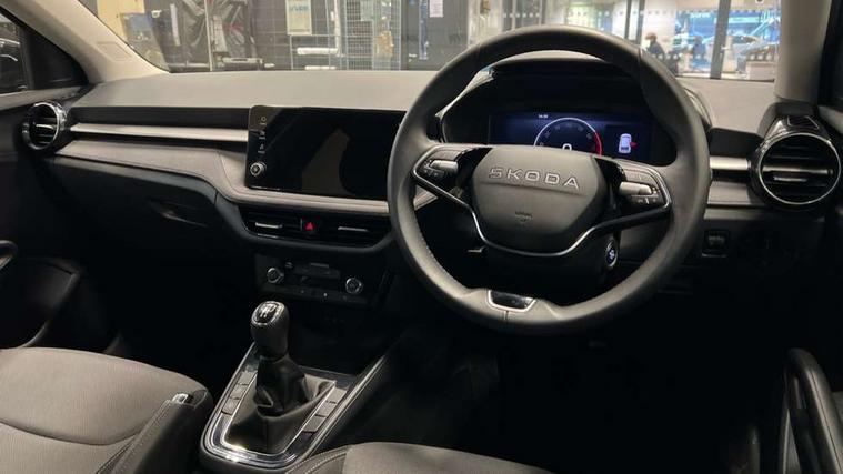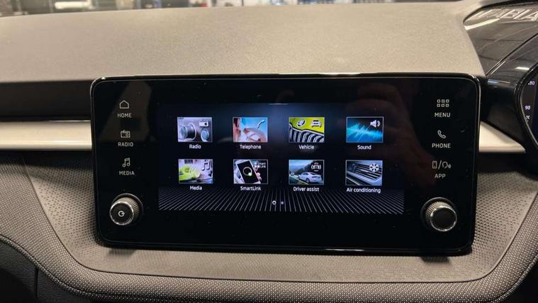 Advanced driver attention and drowsiness monitor, Bluetooth connection, Electromechanical power steering, Exterior temperature gauge, Service interval indicator, Traffic sign recognition, Virtual cockpit with 10.25" colour display, Wireless SmartLink for Apple CarPlay and Android Auto, 6 Speakers (4 in front and 2 in rear), Auxiliary socket for external MP3 player, DAB digital radio reception, Auto dimming rear view mirror, Body coloured bumpers, Door mirror integrated indicators, Front and rear electric windows, Front window wiper intermittent control, Headlight range control - Automatic, Ice scraper in fuel cap, LED 3rd brake light, LED daytime running lights with coming and leaving home feature, LED rear lights, Privacy glass, Rear LED fog light, Rear side wing doors, Rear window wiper with washing nozzles, Roof mounted spoiler, SKODA tailgate lettering in chrome, Unique dark chrome design logo on alloy wheels, 2 reading lights in front and 2 reading lights in rear, 3 rear headrests, Backrest split and folding, Central console with removable cup holder and storage box, Chrome handbrake release button, Dual zone air conditioning with climatronic electronic control, Fabric upholstery, Front centre armrest, Gearshift knob/handle in leather, Grain satin black interior door handles, Hand brake lever handle in leather, Height adjustable front headrests, Height adjustable front seats, Height adjustable steering wheel, ISOFIX and TopTether anchorage points to the outer rear seats, ISOFIX and TopTether on the front passenger seat, Luggage compartment lighting, Manually adjustable lumbar support in front seats, Pollen filter, Rear seat bench unsplit, Single front passenger seat, Skoda lettering on steering wheel, Storm grey headlining, Sun visors with mirror and airbag label on passenger side, Textile floor mats, Ticket holder, Umbrella in drivers door, 3-point height adjustable front seats belts with pretensioner and force limiter, Automatic warning lights in case of crash, Driver and passengers airbag with switch off function, e-Call+, ESC including ABS, MSR, ASR, EDS, HBA and XDS, Front and rear seat belt warning, FRONT ASSIST (AEB City and AEB Inter Urban), Front side airbags, Head airbags, One tone horn, Pedestrian protection, Three rear 3-points safety seat belts with pretensioner and force limiter including stop function for outer rear seat belts, Tyre pressure monitoring system, Anti-theft alarm system including immobiliser, interior monitoring, backup horn, and towing protection, Central locking with radio remote control, interior controls, SAFE function and 2 foldable keys, Black painted air vents, Grain satin black central console cover, Metallic grey upper decorative trim, Satin black door and side trim panel in front, Textile Kota grey lower decorative inserts, Anti-theft wheel bolts protection, Super-low rolling resistance tyres,