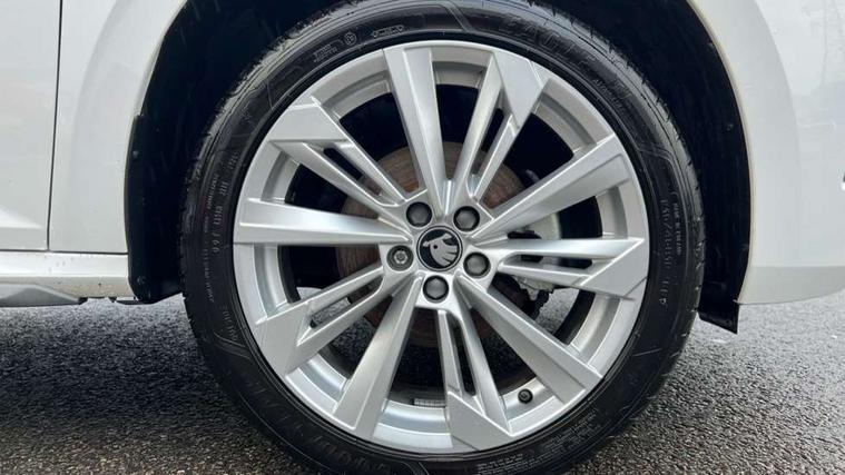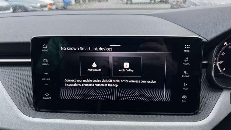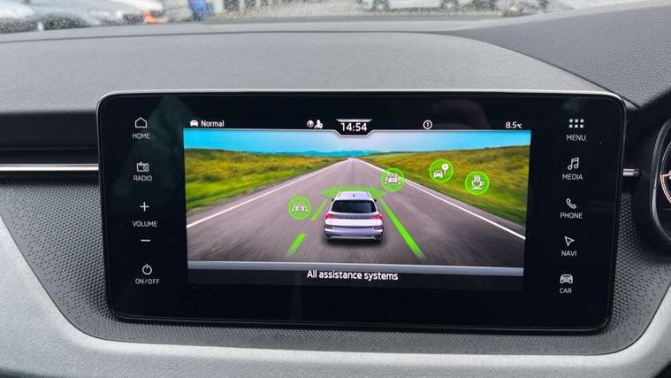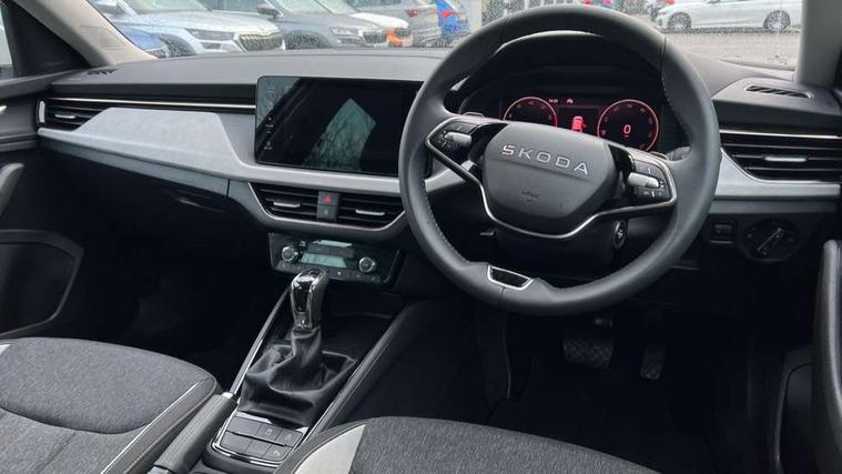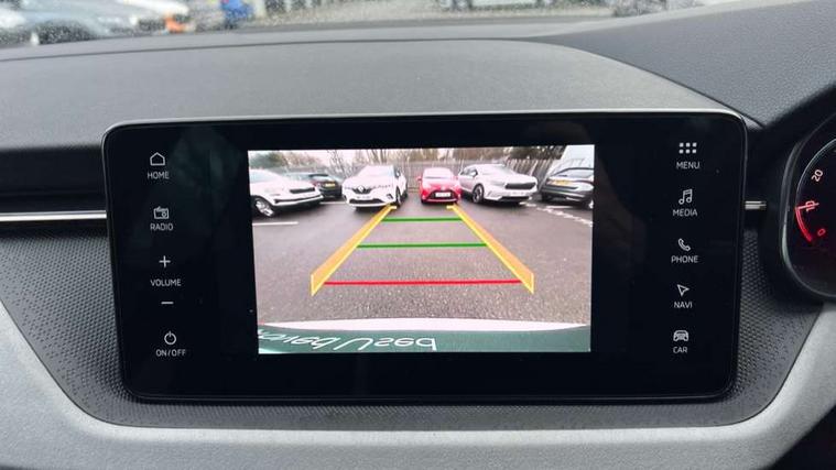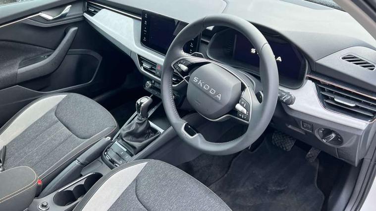Advanced driver attention and drowsiness monitor, Bluetooth system, E-call, Front assist system, PAS, Rear parking sensors, Rear view camera, Service indicator, Speed limiter, Traffic sign recognition, Virtual cockpit with 10.25" display, Voice control system, Wireless smartlink, 4 USB C ports, 8 Speakers, 9.2" Skoda navigation display, DAB Digital radio, Auto dimming rear view mirror, Automatic headlight control with coming home and leaving home feature, Body colour bumpers, Body colour door mirrors and handles, Chrome grille surround, Chrome roof rails with chrome window surround, Front and rear electric windows, Heated rear window, LED daytime running lights, LED high beam, LED low beam, LED third brake light, Light sensors, Privacy glass, Rear side wing doors, Rear wiper, Ticket holder inside windscreen, 12V socket in luggage compartment, 3 seat bench in 2nd row, Accent black door inserts, Ambient lighting in white/red, Cargo elements, Chrome inner door handles, Copper hotstamping, Driver and passenger sun visors with vanity mirror, Dual zone climate control, Front and rear roof lights, Front centre armrest, Front head restraints, Glove compartment with illumination, Height adjustable driver seat, Height adjustable front passenger seat, Ice scraper, Inner circulation control with pollen filter, ISOFIX on front passenger seat, Isofix preparation for back seats, Leather gearknob and handbrake lever, Lodge cloth upholstery, Manual lumbar support for front seats, Net package and top tether hooks in boot space, Net under rear shelf, Overhead glasses storage compartment, Pocket on the back of both front seats include mobile phone pockets, Rake/reach adjustable steering wheel, Reading lights, Rear centre armrests, Single front passenger seat, Suedia grey decor inserts, Textile floor mats, Third rear headrest, Top tether for front passenger seat, Umbrella in driver's door, Convenience pack - Kamiq, 3x3 point rear seatbelts, Airbags - driver and front passenger, Disc brakes, ESP, Extended and predictive pedestrian/cyclist protection, Front passenger airbag deactivation switch, Front side airbags with curtain airbags, Hill hold control, Manual leather parking brake, Manual rear child locks, One tone horn, Seatbelt reminder for driver an co-driver, Traction control, Tyre pressure monitor, Anti-theft alarm system with interior monitoring, backup horn, towing protection and remote central locking with SAFE system, Anti-theft wheel bolts, Electronic engine immobilizer,