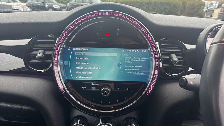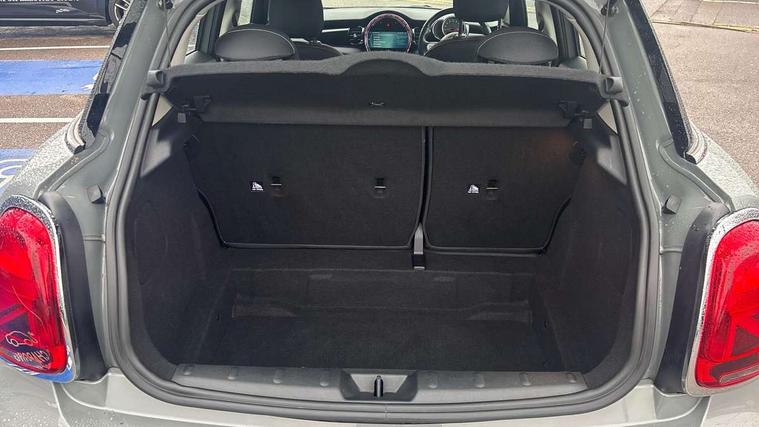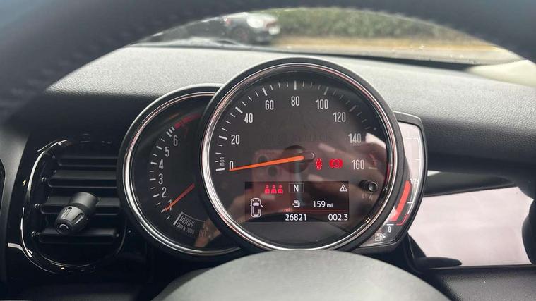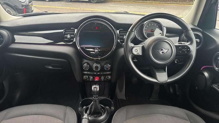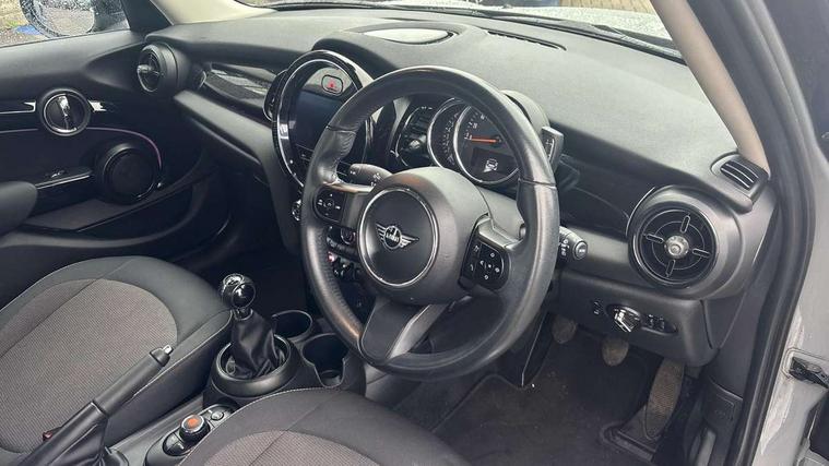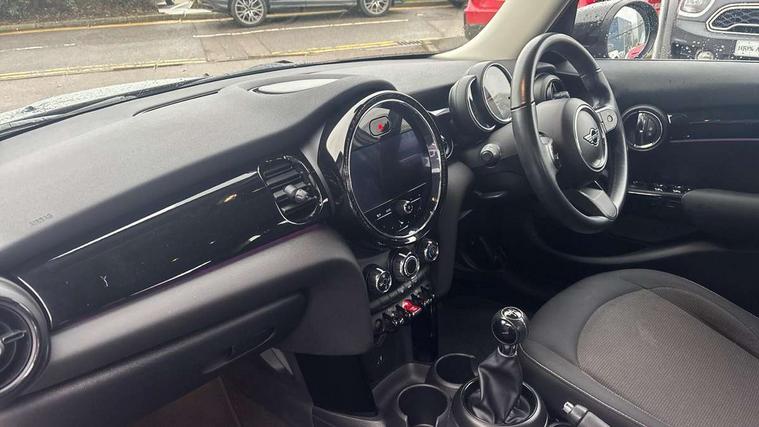 Automatic start/stop function with brake energy recuperation, Compatible mobile phone bluetooth with audio streaming, Cruise control with brake assist, Electro-mechanical speed dependant steering assistance, Flexible car sharing preparation, Instrument cluster, Mini E-call, MINI TeleServices, On board computer, Service interval indicator, 6 Speed manual transmission including gear change indicator display, Double Vanos system, Fully variable valve control, High precision injection, Performance Control, 6 speakers in front door trims and underneath front seats, 8.8" touchscreen with LED ring, FM tuner and DAB digital radio, Automatic headlight activation switch, Body colour fuel filler cap, Chrome border high gloss black slats radiator grille, Dynamic brake lights, Electric front+rear windows, Exhaust tailpipe on left with chrome finisher, Heated rear window, Heated windscreen washer jets, LED headlight with closed ring and daytime driving lights, Metal door sill strips with MINI imprint, Model logo Cooper on right of tailgate, Rain sensor window wipers, Rear fog lights, Rear LED lights with union jack design, Rear window wiper, Side scuttle panel with integrated indicator, Sun/heat protection glass, White indicator lenses, 12V Accessory socket in centre console, 4 lashing eyes in luggage compartment, 60/40 split folding rear seat, Ambient lighting, Carbon black colour line - Knee roll and door armrest, Chrome interior highlights, Cupholders, Front and rear head restraints, Front and rear isofix with front passenger airbag deactivation, Glove compartment, Height and length steering column adjustment, Interior lighting with 12 different colours across the dashboard, underneath door bezel with illuminated laser-engraved design on central display, Leatherette gearshift lever and handbrake gaiters, LED reading lights, vanity mirror lights, front foot well light and spotlight on front seats, Manual air conditioning, Mechanical seat adjustment - forward/back & backrest for front seats and driver seat height adjust, Multifunction steering wheel, Satellite grey headlining including grab handles and clothes hooks, Sport leather steering wheel with speed limiter and audio/communication controls, Storage compartments in doors, Sunvisors with vanity mirrors, Tool kit, Velour floor mats, 3 point seatbelts on all five seats, 6 Airbags - front, side, head and seat belt tensioners, Anti-lock braking system (ABS), DSC - Dynamic Stability Control, Front and rear disc brakes, Hill start assist, Single tone fanfare horn, Tyre pressure monitoring system, Alarm system with tilt sensor, monitoring doors, bonnet interior and tailgate, Electronic vehicle immobiliser, Start/stop toggle with keyless go, Piano black interior trim, Tyre repair kit,