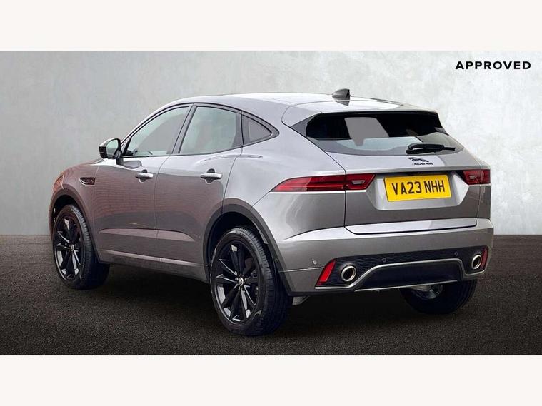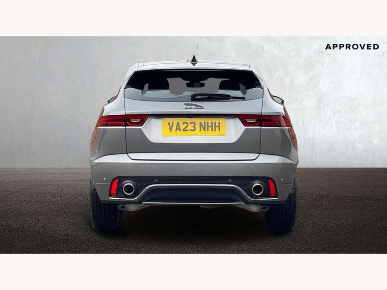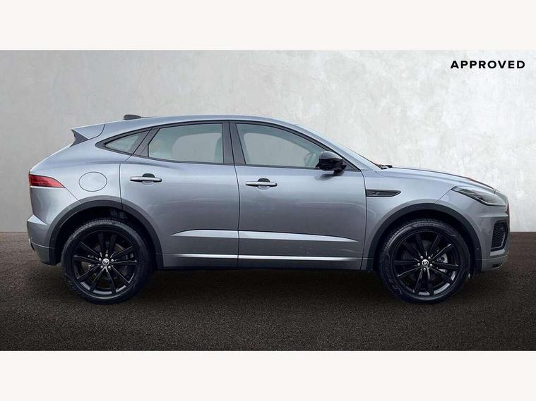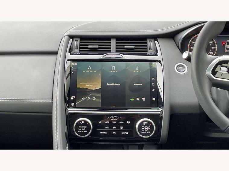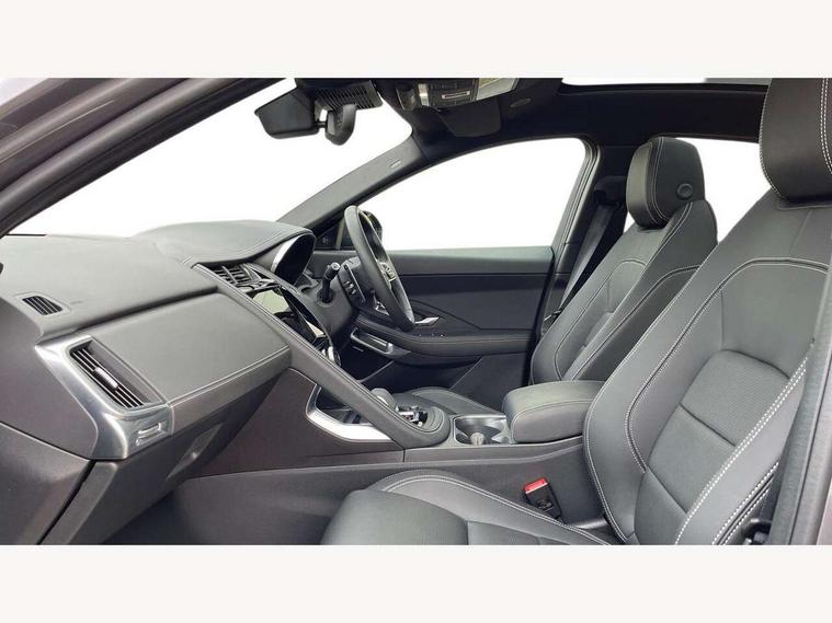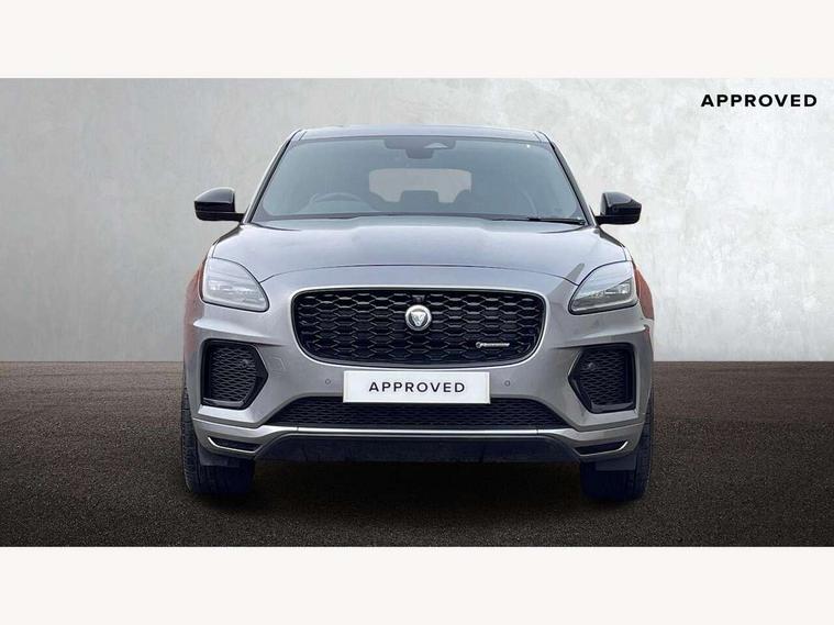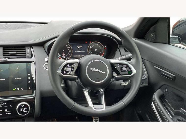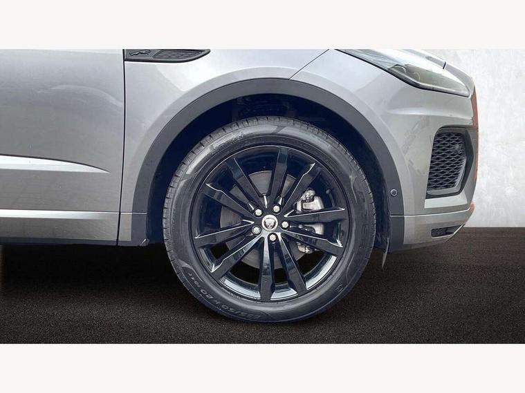 11.4" touchscreen with central ICP, Adaptive cruise control, Android Auto, Apple car play, Blind spot assist, Driver condition monitor, Eco driving style assistant, Electric power assisted steering, Emergency services call system, Front and rear parking aid, InControl remote, Interactive driver display, Jaguar drive control with adaptive surface response, Jaguar Toggle sport shift selector, Lane keep assist, Outside temperature gauge, Pivi pro connected infotainment system with smart settings and navigation pro, Push button start, Rear collision monitor, Rear traffic monitor, Speed proportional steering, Traffic sign recognition with adaptive speed limiter, Trip computer, Voice control system, Configurable dynamics, Efficient Driveline, Gasoline particulate filter, Large fuel tank, Passive suspension, Bluetooth connectivity including audio streaming, DAB digital audio broadcast, Dynamic volume control, 3 flash lane change indicators, Approach Illumination, Automatic headlights, Body colour door handles, Body colour front and rear lower bumper main moulding and lower side cladding, Body colour upper spoiler, Body coloured side sills, Centre high-mounted stop light, Dark satin grille tips, Electric front/rear windows with one touch/auto up/down, Electric heated/power fold memory door mirrors with approach lights and auto dimming driver side, Fixed panoramic glass sunroof, Heated washer jets, Heated windscreen, Jaguar script and leaper, Leaper for duo leather and embossed leaper for windsor leather, LED tail lights, LED third brake light, Metal load space scuff plates, Narvik black antenna pod and side pillar finisher, R Dynamic badge, R Dynamic body colour bumpers, Rain sensor windscreen wipers, Rear fog lights, Rear side wing doors, Rear wash wiper, Satin black grained front outer grille, low grill mesh and low bumper valence, side fender vent mesh and finisher, rear tow eye cover and grille mesh, Twin tailpipes with finishers, Variable front intermittent wipers, 3 rear head restraints, 3 seat bench in 2nd row, 40:20:40 rear seat fold, Bright metal pedals, Carpet mats, Centre console with armrest, Enhanced ambient lighting, Hooks loadspace, ISOFIX on outer rear seats, Leather steering wheel, Loadspace cover, Loadspace light, Loadspace storage net, Luggage tie-downs in loadspace, Manual height/reach adjust steering wheel, Multifunction steering wheel, Overhead lighting console, Passive front head restraints, Power sockets, Rear air vents, Rear bench seats, Satin chrome gearshift paddles, Single front passenger seat, Sunvisors with illuminated vanity mirrors, Twin front cupholders, Two zone climate control, Online pack with data plan - E-Pace, 3x3 point rear seatbelts, ABS, All surface progress control (ASPC), Child locks on rear doors, Customer configurable autolock, DSC - Dynamic Stability Control, Electronic brake force distribution, Electronic parking brake, Emergency brake assist, Emergency braking, Front airbags with passenger seat occupant detector, Front and rear curtain airbags, Front and rear seatbelt reminder, Front passenger airbag deactivation, Front seatbelt pretensioners, Front side airbags, Height adjustable front seatbelts, Hill start assist, Low friction launch, Power child locks, Torque vectoring brake, Tyre pressure monitoring system, Intrusion sensor and alarm, Keyless entry, Locking wheel nuts, Remote central locking,