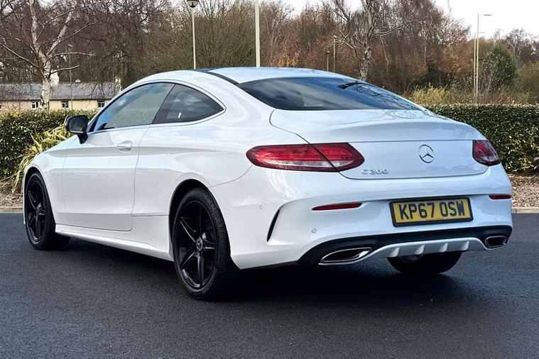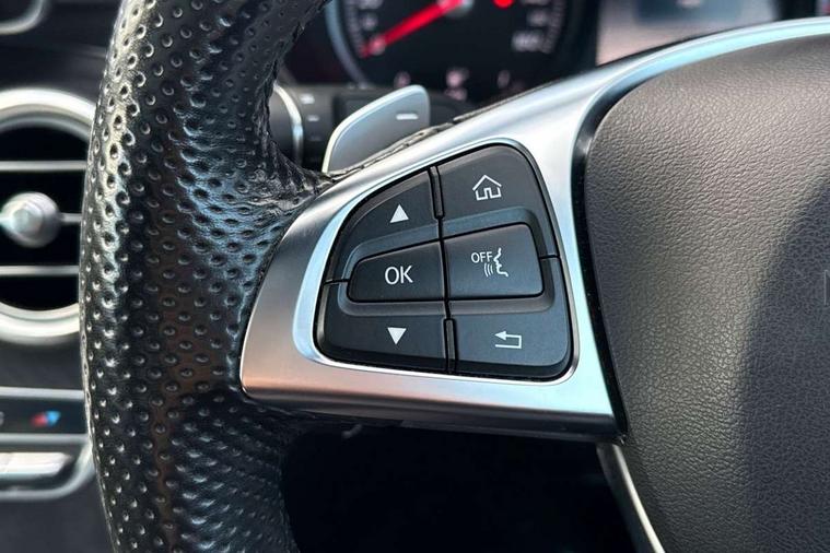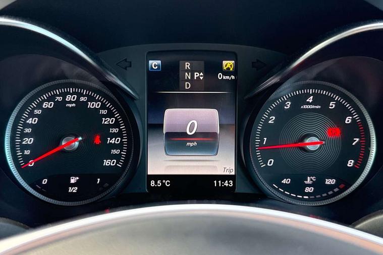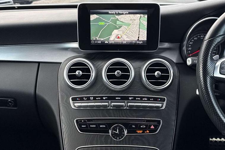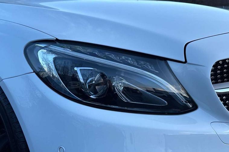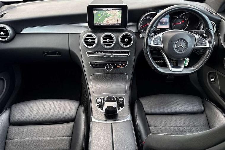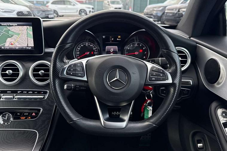 Active park assist with parktronic system, Attention assist, Bluetooth interface for hands free telephone, Collision prevention assist plus, DYNAMIC SELECT with a choice of driving modes (ECO, Comfort, Sport, Sport+ and Individual), Garmin Map Pilot navigation system with SD card, touchpad and voice control, Instrument cluster with 5.5-inch TFT multi-function display, Multi function trip computer, Outside temperature gauge, Remote boot release, Service indicator (ASSYST), Speed sensitive steering, Sport exhaust system, 2 USB ports, Audio 20 radio/CD with 7" colour display with multi touch keypad, DAB digital radio module, Frontbass loudspeakers, Media interface, Steering column mounted multifunction controls, Adaptive brake lights, AMG front, rear apron and side skirts, Auto dimming driver's door mirror, Auto dimming rear view mirror, Body coloured bumpers, Chrome grille surround, Door sill plates with "Mercedes-Benz" lettering, Electric adjustable/heated/folding door mirrors, Electric windows one touch open/close, Green tinted glass, Heated windscreen washers, LED daytime running lights, LED tail lights, Radiator grille with integral star, Rain sensor windscreen wipers, Side windows surround in polished aluminium, Twin chrome exhaust tailpipes, 2 cupholders in front centre console, 2 rear head restraints, 3 spoke flat bottom multi-function leather AMG steering wheel, 4-way lumbar support for drivers seat, 4-way lumbar support for front passenger seat, 40:20:40 split folding rear seats, AMG floormats, Auto dual-zone climate control system, Auto Mercedes-Benz child seat recognition sensor, Door courtesy lamps, Electric front seats, Electric height adjustable front seats, Front centre armrest with storage compartment, Front footwell illumination, Heated front seats, Height/reach adjustable steering column, Illuminated front/rear door handle recesses, Illuminated glovebox, Isofix rear child seat fastenings, LED reading lights, Sports pedals with stainless steel surfaces and rubber studs, Sports seats with integrated headrests, Steering wheel gearshift paddles, Sunvisors with illuminated vanity mirrors, Seat comfort pack - C Class, Stowage space pack - C Class, 2 rear seatbelts, ABS + BAS, Active bonnet, Adaptive brake system, Brake calipers with Mercedes-Benz lettering + perforated brake discs, Drivers knee airbag, Drivers pelvis airbag, Dual stage driver/passenger airbags, Electronic parking brake, ESP with ASR, Front side airbags, Hill hold control, Hill start assist, Tyre pressure monitoring system, Warning triangle and first aid kit, Window airbags, Alarm system/interior protection/immobiliser, Chrome surround electric key, Remote central locking,