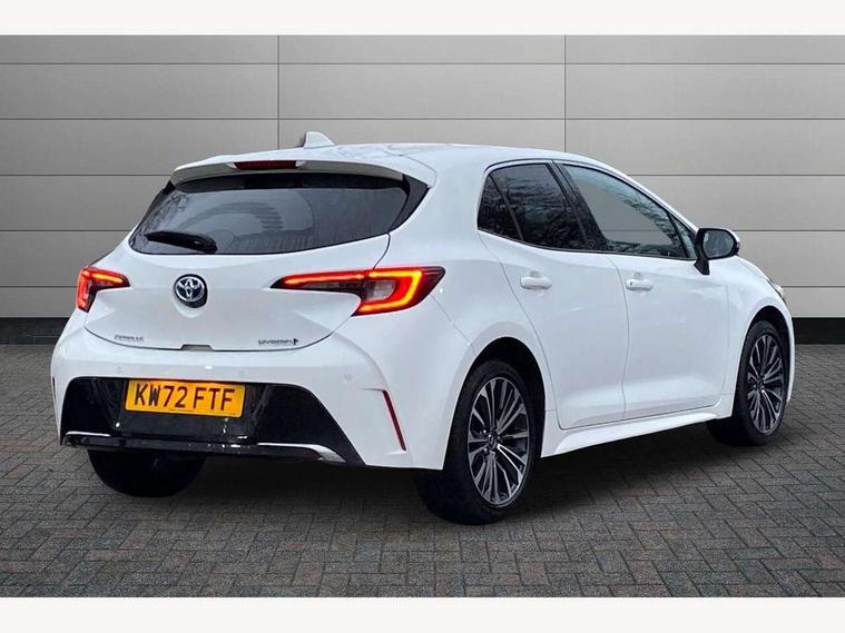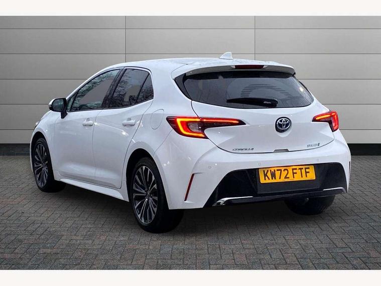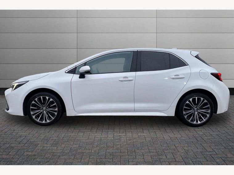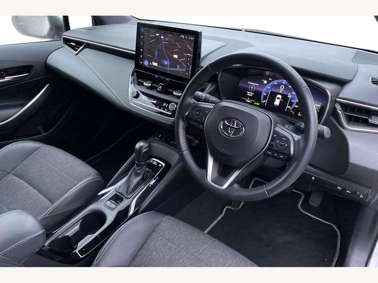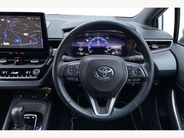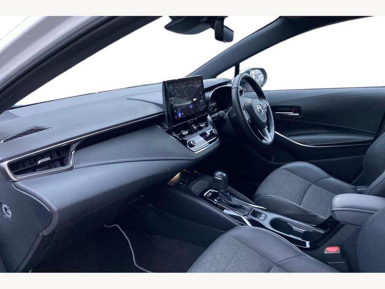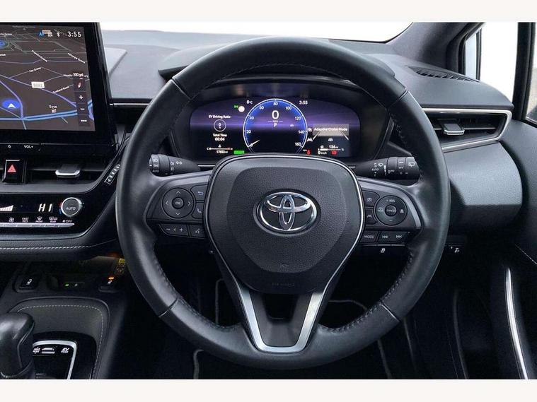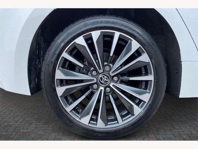 10.5" Multimedia display screen, Attention assist, Bluetooth telephone connectivity, Connected car functionality upgrade, tracker, remote status and e-care, Drive mode select (Eco, Normal), E-call, Electrically assisted power steering, EV drive indicator, Front and rear parking sensors with auto brake, Full Digital 12.3" TFT Digital Combimeter, Key reminder warning, Lane Departure Alert (LDA) switch on steering wheel, Memory on adjustable speed limiter, MyT connected services, Proactive driving assist (PDA), Reversing camera, Smartphone integration with Apple CarPlay and wired android auto, Tailgate, Toyota remote services, Toyota smart connect navigation, Wireless charger, Gasoline particulate filter, Vehicle Stability Control (VSC), 6 speakers, AM/FM radio, DAB Digital radio, Front USB-C in dashboard, Smart voice assist/ Voice recognition, USB and Aux in connectors + 12V front outlet, Anti-jam protection on power windows, Auto up and down function on all power windows, Automatic folding mirrors, Automatic headlights with high beam assist, Black centre and side air vents, Black metallic meshed front grille, Black toyota logo in front, Body coloured bumpers, Body coloured door mirrors, Body coloured front spoiler, Body coloured outside door handles, COROLLA alloy door scuff plates, Electrochromatic mirror, Follow me home headlights, LED daytime running lights, LED dual beam projector headlights, LED front fog lights, LED High mounted stop light, LED multi reflector in headlights, LED rear combi lights with LED lightguide, Manual headlight levelling system, New grille pattern, Noise reduction layer on windscreen, Piano black diffuser, Power adjustable heated door mirrors, Power front windows, Power rear windows, Privacy glass with UV filter, Rain sensing wipers, Rear bumper decoration with chrome plated inserts, Rear side wing doors, Rear under guard with chrome ornament, Rear window defogger, Rear window wiper, Reverse tilting door mirrors, Roof spoiler, Satin chrome insert on front air vents, Satin chrome insert on front door assist grips, Shark fin antenna, Tailgate release with push button, Time adjustment on intermittent wiper, Turning signal integrated indicators in door mirrors, Unique lower skirt, Unique side rocker with black insert, UV-filter on driver and passenger windows, 2 Shopping bag hooks in luggage compartment, 3 rear headrests, 3 seat bench in 2nd row, 3 spoke leather steering wheel with satin insert + gear knob, 4 tie down hooks in luggage compartment, 60/40 split folding rear seat, Adaptive cruise control (ACC) switch on steering wheel, Adjustable speed limiter switch on steering wheel, Audio, multimedia and telephone switches on steering wheel, Black armrest on centre console box, Black gear shift console, Boot light, Centre room light, Driver and front passenger personal light, Driver and passenger assist grip, Driver and passenger sun visor with mirror and light, Dual zone automatic air conditioning with ECO mode switch, Fabric/synthetic leather upholstery, Front and rear cup and bottle holders, Front door pockets, Front head restraints, Front passenger seat, Front sliding synthetic leather armrest, Heated seats, Illuminated entry system in room lamp, ISOFIX seat fixing (2 fixings on rear outer seats), Leather gear shift with satin chrome on gear shift console, Manual height adjustable for driver and front passenger seat, Manually tilt with sliding driver and front passenger seat, Parcel shelf, Passenger seat back pocket, Pollen filter, Power adjustable lumbar support on driver seat, Power window switches with satin chrome inserts, Rear armrest with 2 cupholders, Rear passenger coat hooks (2), Remote air conditioning, Satin chrome inside door handles, Satin chrome surround on heater control panel, Satin chrome surround on speedometer, Sliding armrest on centre console box, Slow opening glovebox with lights, Textile floor mats, Tilt/telescopic steering column, Voice recognition switch on steering wheel, Whiplash Injury Lessening (WIL) feature (active headrest) for seats, White ambient lighting on open tray and front cup holder, Toyota safety sense 3 pack - Corolla, 3x3 point rear seatbelts, Adjustable driver and front passenger seat belt extender to top anchor point, Anti lock braking system + Electronic brake force distribution, Brake assist function, Child locks on rear doors, Downhill Assist Control (DAC), Electronic parking brake, Emergency brake light signal (EBS), Front passenger airbag on/off switch, Front seatbelt reminder, HAC - Hill start assist control, Rear seat belt reminder, Seatbelt pretensioners and force limiters, Supplemental restraint system (SRS) 7 airbags - dual driver, dual side curtain, side impact and driver knee airbags, Traction control, Tyre pressure warning system, Acoustic vehicle alert system (AVAS), Alarm with motion sensor and immobilizer, Power passenger window lock, Remote central locking + deadlocks, Satin chrome dash trim, Soft touch texture on upper dashboard, Stitching on lower dashboard, 17" Black machined face 5 double spoke alloy wheels, Tyre repair kit, Unique wheel finish with red wheel cap,