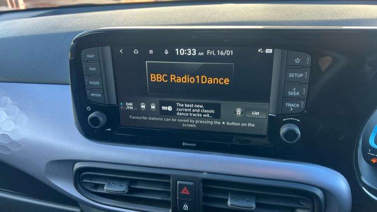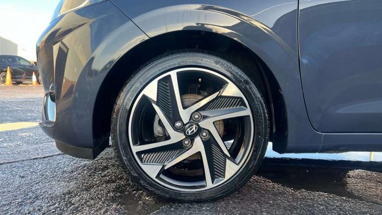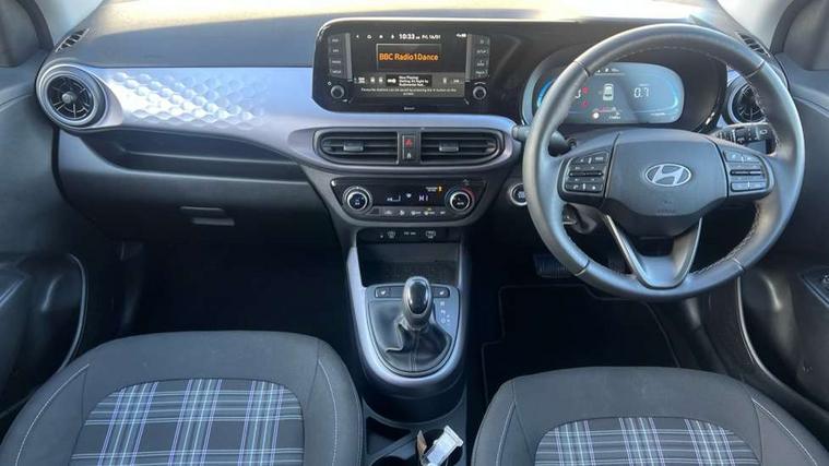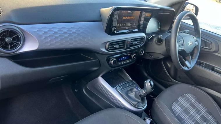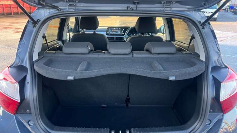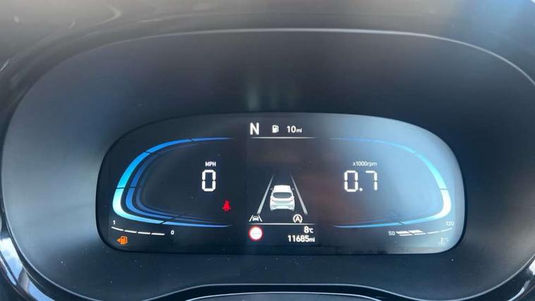 Apple car play/Android Auto, Bluelink mobile remote connectivity, Bluetooth connectivity with voice recognition, Cruise control, Driver attention alert system, eCall emergency call system, Forward Collision-Avoidance Assist (FCA) - Pedestrian/Cyclist, Front USB-C charging and USB-A data, Full-width 4.2" LCD instrument cluster, Intelligent speed limit assist, Lane departure warning system with lane keep assist - LKAS, Lane follow assist, PAS, Rear parking sensors, Rear view camera with guidelines, Roadside assistance, Start/Stop function, Tailgate, Trip computer, Wireless charging pad, 2 front/2 rear speakers, Rear USB-C device charger, Steering wheel audio, phone and cruise controls, 1 speed non intermittent rear windscreen wiper, Black finish on B pillars, Body colour door handles, Body coloured bumpers, Body coloured door mirrors, Electric folding door mirrors, Electric front windows, Electric rear windows, Electrically adjustable and heated door mirrors, Flat metal emblem, Front fog lights, Front grille in glossy black, Front intermittent wipers, Halogen bi-function headlights, Headlights inner with Black Blade design, Heated rear window, High beam assist, Indicator light on door mirrors, LED DRLs diamond mesh design, Privacy glass - Rear windows and tailgate, Rear roof spoiler with integrated LED brake light, Rear side wing doors, 12v power outlet - front, 3 seat bench in 2nd row, 60/40 split folding flat to floor rear seats, Air conditioning, Auto light control, Bottle holders in front/rear doors + front centre console, Cabin and luggage compartment interior lighting, Cloth upholstery, Driver + passenger vanity mirrors, Driver's seat height adjustment, Driver/passenger sunvisors with ticket holders, Floor mats, Front door pockets, Front Head Restraints - Vertical and Horizontal Adjustment, Front LED blue mood lighting, Glove compartment, Heated front seats, Heated steering wheel, Height adjustable steering column, Isofix child seat preparation, Leather multifunction steering wheel, Rear door pockets, Single front passenger seat, Vertical adjustment rear head restraints, 3x3 point rear seatbelts, Airbags - front, front side and curtain airbags, Anti-lock brake system (ABS), Autonomous emergency braking (AEB) with forward collision warning system, Brake assist function, Childproof rear door locks, Electronic stability control, Front and rear seatbelt reminder, Front seatbelt pretensioners, Hill start assist control (HAC), Passenger airbag deactivate switch, Traction control, Tyre pressure monitoring system, Immobiliser, Perimeter alarm, Rear occupant alert, Remote central locking, Second remote key, Smart key with motion sensor, Speed sensitive auto door locking, 16" alloy wheels, Tyre repair kit,