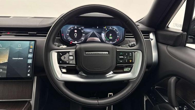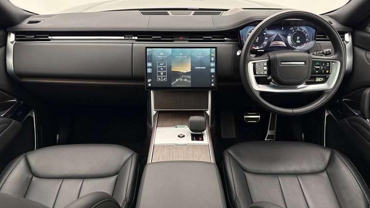 13.1" Touchscreen, 3D surround camera inc frwd traffic detection, vehicle clearance guidance, 3D view, clearsight ground view, manoevure light, 360 parking aid, wade sensing, All Terrain Info Centre, All wheel steering, Android Auto, Apple car play, Blind spot assist, Bluetooth connectivity streaming, Driver condition response, Eco mode, Electric power assisted steering (EPAS), Emergency call service, Front and rear parking aid, Head up Display, Interactive driver display, Lane keep assist, Park assist, Powered gesture tailgate/boot lid, Rear collision monitor, Rear traffic monitor, Remote, Traffic sign recognition with adaptive speed limiter, Wi-Fi Enabled with data plan, Wireless device charging with phone signal booster, 7 kW onboard charger, 8 speed automatic transmission, Active damper technology system, Adaptive dynamics, All terrain progress control, All Wheel Drive (AWD), Automatic access height, Home charging cable 5m Mode 2 including plugs, Public charging cable 5m Mode 2 including plugs, Terrain Response 2 Auto, Twin speed transfer box, Digital Audio Broadcast radio-DAB, Pivi pro including smart settings, Connected navigation pro, nuance speech, USB socket, Acoustic laminated windscreen, Animated directional indicators, Automatic headlights, Automatic levelling headlights, Centre high mounted stop light, Electric windows with one touch open/close and anti trap, Engine cover, Flush deployable exterior door handles, Front and rear recovery eyes, Front fog lights, Headlamp power wash, Heated rear window, Heated washer jets, Illuminated aluminum treadplates with Range Rover script, LED tail lights, No badges, Power fold, auto-dimming, heated door mirrors with approach lights, Rain sensing windscreen wipers, Rear boot, Rear fog lights, Rear side wing doors, Side repeater indicators in mirror, Trailer stability assist, Winter wiper park position, 12V power sockets, 3 seat bench in 2nd row, Air quality sensor, Auto folding loadspace cover, Bright metal pedals, Cabin air purification pro, Cabin lighting, Customer configurable single point entry, Driver and passenger front seat armrests, Easy boot loading, Ebony Carpet, Front and rear cupholders, Front and rear grab handles, Front head restraints, Gearshift paddles, Heated steering wheel, Hook in load space, Loadspace light, Luggage tie down in loadspace, Multifunction steering wheel, Rear centre armrest, Rear head restraints, Rear ISOFIX, Single front passenger seat, Soft close doors, Upper and lower glovebox, Online pack with data plan - Range Rover, 3x3 point rear seat belts, Anti-lock braking system (ABS), Brake hold function, Cornering brake control (CBC), Customer configurable autolock, DSC - Dynamic Stability Control, Electronic brake force distribution, Electronic parking brake, Electronic traction control, Emergency braking, Front airbags with passenger seat occupant detector, Front side airbags, Hill descent control, Hill launch assist, Low traction launch, Occupant protection assist, Power operated child locks, Roll stability control, Tyre pressure monitoring system (TPMS), Immobiliser, Intrusion sensor and alarm, Keyless entry, Locking wheel nuts, Remote central locking, Noble chrome controls,