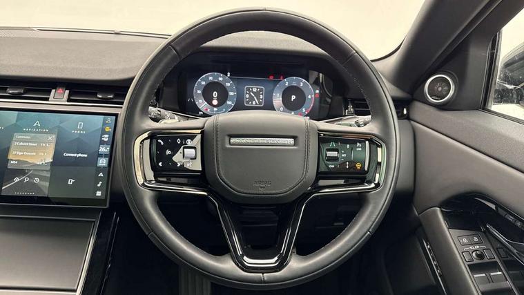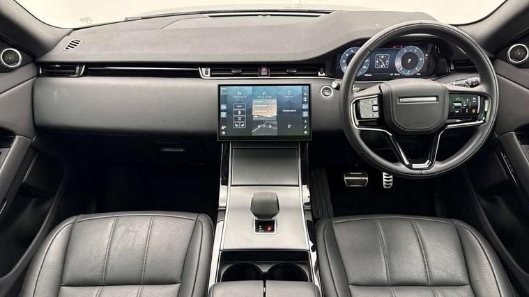 11.4" touch screen, Adaptive cruise control, Android Auto, Apple car play, Blind spot assist, Bluetooth connectivity, Brake pad wear indicator warning light, Driver condition monitor, eCall emergency system, Eco mode, Electronic power assisted steering (EPAS), Front and rear parking aid, InControl remote, Interactive driver display, Land Rover InControl apps, Lane keep assist, Pivi pro connected includes diamond pivi variant, smart settings, connected navigation pro, nuance speech licence, Powered tailgate/boot lid, Rear collision monitor, Rear traffic monitor, Traffic sign recognition with adaptive speed limiter, Voice control system, Wireless device charging, All terrain progress control, Diesel exhaust fluid (DEF) large tank, Efficient Driveline, Large fuel tank, Passive suspension, Terrain Response 2, Digital Audio Broadcast radio-DAB, Steering wheel mounted controls, Acoustic laminated windscreen, Auto headlights, Automatic headlight levelling, Electric windows with one touch open/close and anti trap, Flush deployable exterior door handles, Front and rear recovery eyes, Front fog lights, Heated rear window with timer, Heated washer jets, Heated windscreen, Pixel LED headlights with signature DRL and LED tail Lights, Power fold, auto-dimming, heated door mirrors with approach lights and auto dimming driver side, Rain sensing windscreen wipers, Rear animated directional indicators, Rear fog lights, Rear side wing doors, Rear wiper, Side repeater indicators in mirror, Tailgate spoiler, Third brake light, Winter wiper park position, 14 way driver memory electric front seats with 2 way manual headrests + 4 way lumbar support, bolsters, 40:20:40 split folding rear seats with centre headrest and armrest, Ambient interior lighting, Bright metal pedals, Carpet mats, Chrome tread plates with range rover branding Includes stainless steel loadspace scuff plate with etched graphic, Customer configurable single point entry, Electrically adjustable steering column with memory function and easy entry/exit, Front and rear cupholders, Heated steering wheel, Isofix system on outer rear seats, Overhead lighting console, Overhead stowage for sunglasses, Passive front head restraints, Rear air vents, Rear head restraints, Satin chrome gearshift paddles, Single passenger seat, Sunvisors with illuminated vanity mirrors, Twin sliding front centre armrest, Online pack with data plan - Evoque, Power socket pack 2 - Evoque, 3 rear 3 point seatbelts, Anti-lock braking system (ABS), Brake hold function, Customer configurable autolock, DSC - Dynamic Stability Control, Electronic brake force distribution, Electronic parking brake, Electronic traction control, Emergency braking, Front and rear seatbelt reminder, Hill descent control, Hill launch assist, Low traction launch, Occupant protection assist, Passenger seat occupant detector, Power operated child locks, Roll stability control, Six airbags - Driver and passenger airbags/driver knee airbag/front side airbag and curtain airbags, Torque vectoring brake, Tyre pressure monitoring system, Alarm, Immobiliser, Intrusion sensor, Keyless entry, Locking wheel nuts,