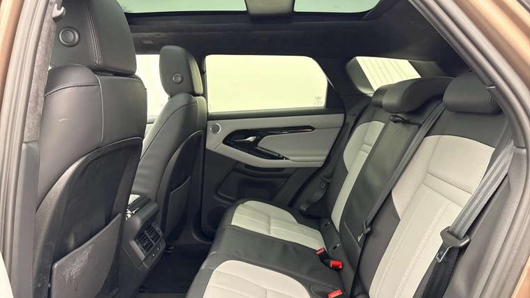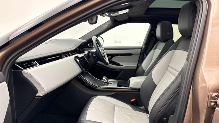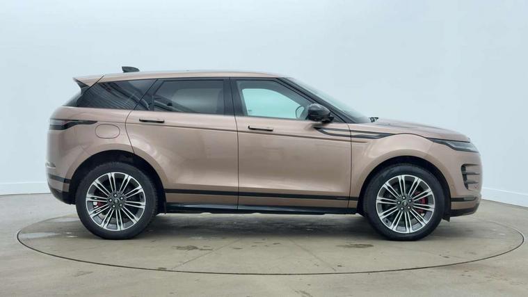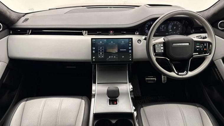 11.4" touch screen, 3D 360 degree surround camera with wade sensing, Adaptive cruise control, Android Auto, Apple car play, Blind spot assist, Bluetooth connectivity, Brake pad wear indicator warning light, Driver condition monitor, eCall emergency system, Eco mode, Electronic power assisted steering (EPAS), Front and rear parking aid, Head up Display, InControl remote, Interactive driver display, Land Rover InControl apps, Lane keep assist, Pivi pro connected includes diamond pivi variant, smart settings, connected navigation pro, nuance speech licence, Powered tailgate/boot lid, Rear collision monitor, Rear traffic monitor, Traffic sign recognition with adaptive speed limiter, Voice control system, Wireless device charging, All terrain progress control, Configurable dynamics, Electric rear axle drive, Home charging cable, Large fuel tank, Passive suspension, Public charging cable, Terrain Response 2, Digital Audio Broadcast radio-DAB, Steering wheel mounted controls, Acoustic laminated windscreen, Auto headlights, Automatic headlight levelling, ClearSight interior rear view mirror, Electric windows with one touch open/close and anti trap, Flush deployable exterior door handles, Front and rear recovery eyes, Front fog lights, Heated rear window with timer, Heated washer jets, Heated windscreen, Pixel LED headlights with signature DRL and LED tail Lights, Power fold, auto-dimming, heated door mirrors with approach lights and auto dimming driver side, Rain sensing windscreen wipers, Range rover branding illuminated metal tread plates in loadspace and row 1 with brand name script and metal in row 2, Rear animated directional indicators, Rear fog lights, Rear side wing doors, Rear wiper, Side repeater indicators in mirror, Sliding panoramic roof with powered sunblind, Tailgate spoiler, Third brake light, Winter wiper park position, 14 way driver memory electric front seats with 2 way manual headrests + 4 way lumbar support, bolsters, 40:20:40 split folding rear seats with centre headrest and armrest, Ambient interior lighting, Bright metal pedals, Cabin Air Purification plus, Configurable cabin lighting, Customer configurable single point entry, Electrically adjustable steering column with memory function and easy entry/exit, Front and rear cupholders, Heated and cooled front seats, Heated rear seats, Heated steering wheel, Isofix system on outer rear seats, Overhead lighting console, Overhead stowage for sunglasses, Passive front head restraints, Premium carpet mats, Rear air vents, Rear head restraints, Satin chrome gearshift paddles, Single passenger seat, Sunvisors with illuminated vanity mirrors, Twin sliding front centre armrest, Online pack with data plan - Evoque, Power socket pack 2 - Evoque, 3 rear 3 point seatbelts, Anti-lock braking system (ABS), Brake hold function, Customer configurable autolock, DSC - Dynamic Stability Control, Electronic brake force distribution, Electronic parking brake, Electronic traction control, Emergency braking, Front and rear seatbelt reminder, Hill descent control, Hill launch assist, Low traction launch, Occupant protection assist, Passenger seat occupant detector, Power operated child locks, Roll stability control, Six airbags - Driver and passenger airbags/driver knee airbag/front side airbag and curtain airbags, Torque vectoring brake, Tyre pressure monitoring system, Alarm, Immobiliser, Intrusion sensor, Keyless entry, Locking wheel nuts, All season tyres,