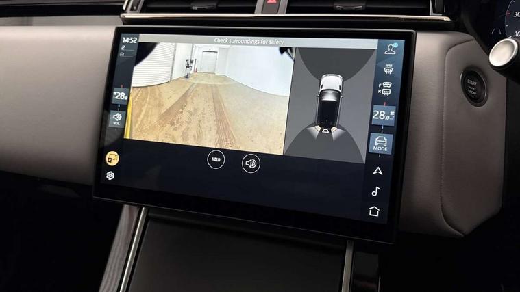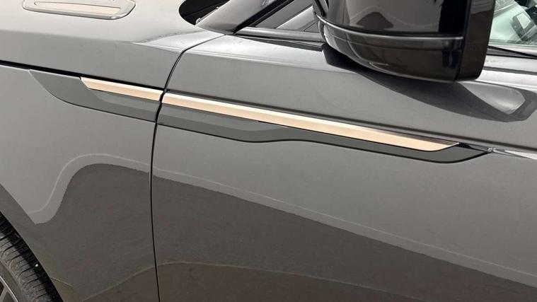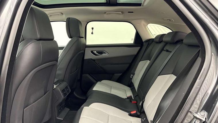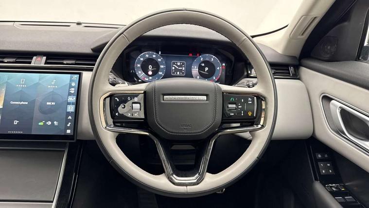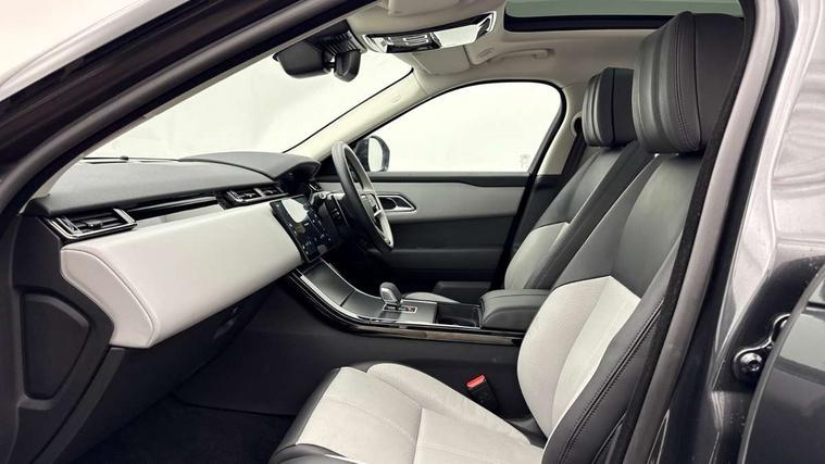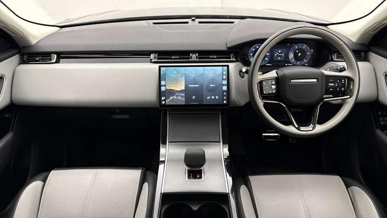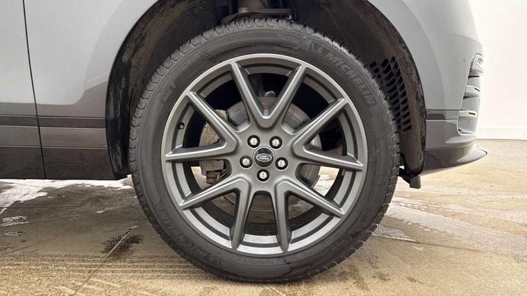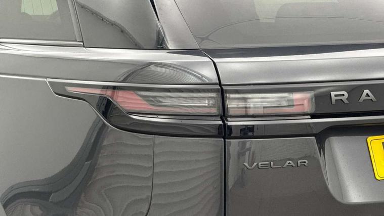 Adaptive cruise control with steering assist, Android Auto, Apple CarPlay, Blind spot assist, Bluetooth connectivity, Brake pad wear indicator warning light, Driver condition monitor, eCall emergency call system, Front and rear parking aid, InControl remote, Land Rover InControl apps, Lane keep assist, Pivi pro with connected navigation, Rear collision monitor, Rear traffic monitor, Service indicator, Speed proportional electronic power assisted steering (EPAS), Traffic sign recognition with adaptive speed limiter, Trip computer, Voice control system, Wireless device charging, 8 speed automatic transmission, Adaptive dynamics, All terrain progress control, Electronic air suspension, Open differential with torque vectoring by braking, Single speed transfer box, DAB radio, Steering wheel mounted controls, 3rd brake light, Acoustic laminated windscreen, Auto dimming interior rear view mirror, Automatic headlamp levelling, Automatic headlights, Body coloured bumpers, Boot protection plate, Electric windows with one touch open/close and anti trap, Flush deployable exterior door handles, Follow me home headlights, Heated rear window with timer, Heated washer jets, Heated windscreen, Metal front tread plates, Metal load space scuff plates, Pixel LED headlights with signature DRL, Power fold, auto-dimming, heated door mirrors with memory and approach lights, Rain sensor windscreen wipers, Rear animated directional indicators, Rear fog lights, Rear side wing doors, Rear wash/wipe, Tailgate/boot lid spoiler, Trailer stability assist, Velar badge, 3 seat bench in 2nd row, Ambient lighting, Bright metal pedals, Carpet mats, Driver/passenger sunvisors with illuminated vanity mirrors, Ebony morzine headlining, Electrically adjustable steering column, Extended leather upgrade, Heated steering wheel, Isofix system on outer rear seats, Loadspace cover, Overhead lighting console, Overhead stowage for sunglasses, Passive front headrests, Rear air vents, Rear centre headrest, Single front passenger seat, Twin front cupholders, Twin sliding front centre armrest, Online pack with data plan - Velar, Power socket pack 2 - Velar, 355mm Front and 325mm Rear brakes, 3x3 point rear seatbelts, Anti-lock braking system (ABS), Cornering brake control, Curtain airbags, Customer configurable autolock, Door side intrusion beams, Driver airbag, DSC - Dynamic Stability Control, Electronic brake force distribution, Electronic parking brake, Electronic traction control, Emergency braking, Front and rear seatbelt reminder, Hill descent control, Hill launch assist, Low traction launch, Passenger airbag, Power operated child locks, Rear airbags, Roll stability control, Side airbags, Tyre pressure monitoring system (TPMS), Global lock and unlock switch on driver door, Immobiliser, Intrusion sensor, Keyless entry, Lock only switch on front passenger door, Locking wheel nuts, Perimetric alarm, Remote central locking, All season tyres,