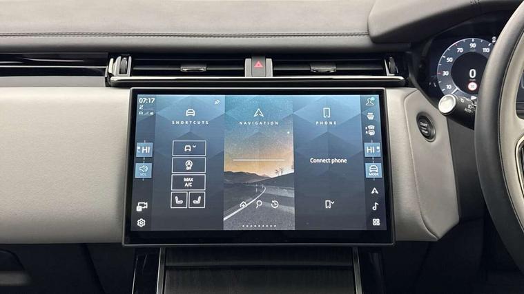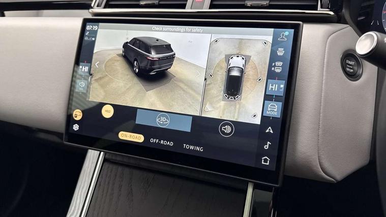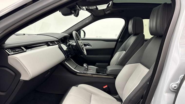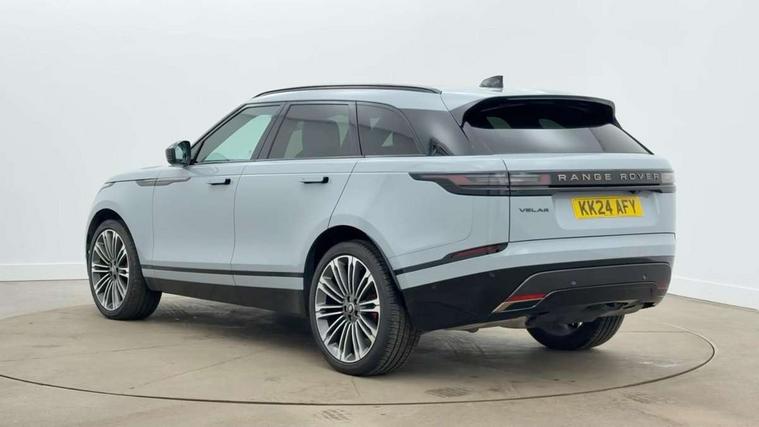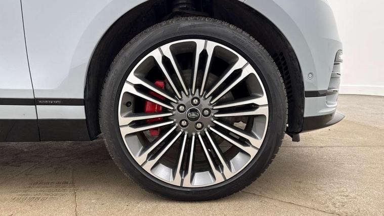 3D surround camera includes forward traffic detection and vehicle guidance, Adaptive cruise control with steering assist, Android Auto, Apple CarPlay, Blind spot assist, Bluetooth connectivity, Brake pad wear indicator warning light, Driver condition monitor, eCall emergency call system, Front and rear parking aid, Head up Display, InControl remote, Land Rover InControl apps, Lane keep assist, Pivi pro with connected navigation, Rear collision monitor, Rear traffic monitor, Service indicator, Speed proportional electronic power assisted steering (EPAS), Traffic sign recognition with adaptive speed limiter, Trip computer, Voice control system, Wade Sensing, Wireless device charging, 8 speed automatic transmission, Adaptive dynamics, All terrain progress control, Electronic air suspension, Open differential with torque vectoring by braking, Single speed transfer box, Terrain Response 2 with dynamic program, DAB radio, Steering wheel mounted controls, 3rd brake light, Acoustic laminated windscreen, Auto dimming interior rear view mirror, Autobiography badge, Automatic headlamp levelling, Automatic headlights, Body coloured bumpers, Boot protection plate, Contrast bonnet in burnished copper & rear lettering, Electric windows with one touch open/close and anti trap, Flush deployable exterior door handles, Follow me home headlights, Heated rear window with timer, Heated washer jets, Heated windscreen, Illuminated front and rear metal tread plates, Metal load space scuff plates, Pixel LED headlights with signature DRL, Power fold, auto-dimming, heated door mirrors with memory and approach lights, Rain sensor windscreen wipers, Rear animated directional indicators, Rear fog lights, Rear side wing doors, Rear wash/wipe, Tailgate/boot lid spoiler, Trailer stability assist, Velar badge, 20 way electrically adjustable massage front seats with driver's memory function and rear power recline, 3 seat bench in 2nd row, Ambient lighting, Bright metal pedals, Cabin Air Purification plus, Carpet mats, Configurable cabin lighting, Driver/passenger sunvisors with illuminated vanity mirrors, Ebony suedecloth headlining, Electrically adjustable steering column, Four zone climate control, Full extended leather upgrade, Heated and cooled front seats, Heated steering wheel, Isofix system on outer rear seats, Loadspace cover, Lockable cooled glovebox, Overhead lighting console, Overhead stowage for sunglasses, Passive front headrests, Rear air vents, Rear centre headrest, Single front passenger seat, Twin front cupholders, Twin sliding front centre armrest, Online pack with data plan - Velar, Power socket pack 2 - Velar, 380mm front brakes and 325mm rear brakes, 3x3 point rear seatbelts, Anti-lock braking system (ABS), Cornering brake control, Curtain airbags, Customer configurable autolock, Door side intrusion beams, Driver airbag, DSC - Dynamic Stability Control, Electronic brake force distribution, Electronic parking brake, Electronic traction control, Emergency braking, Front and rear seatbelt reminder, Hill descent control, Hill launch assist, Low traction launch, Passenger airbag, Power operated child locks, Rear airbags, Red brake calipers, Roll stability control, Side airbags, Tyre pressure monitoring system (TPMS), Global lock and unlock switch on driver door, Immobiliser, Intrusion sensor, Keyless entry, Lock only switch on front passenger door, Locking wheel nuts, Perimetric alarm, Remote central locking, All season tyres,