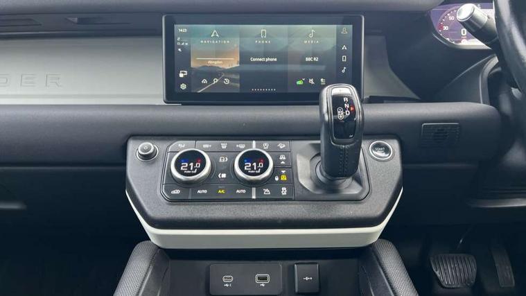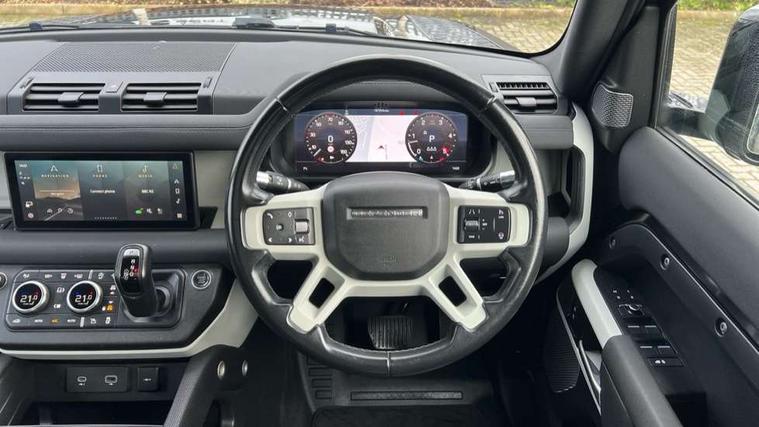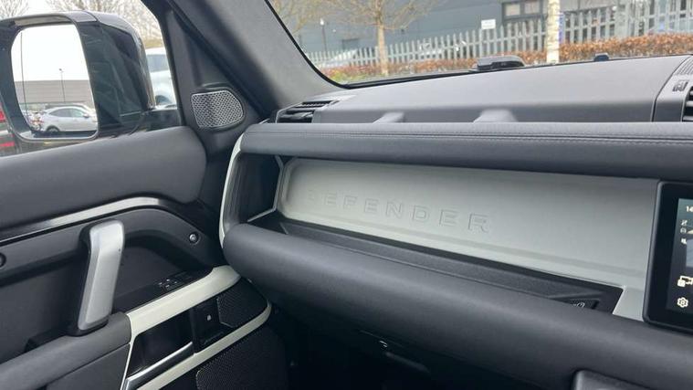 360 degree parking aid, 3D Surround Camera with 360 View, 180 Rear View, Front Traffic Detection, Forward Vehicle Guidance, Tow Hitch Assist and clear sight Ground View, Android Auto, Apple CarPlay, Assisted tailgate with soft close, Blind spot assist, Bluetooth system, Brake pad wear indicator, Clear exit monitor, Click and go integrated base unit, Connected navigation pro, Driver condition monitor, Electric power assisted steering (EPAS), Interactive driver display, Lane keep assist, Push button start, Rear traffic monitor, Traffic sign recognition with adaptive speed limiter, Trip computer, Wade Sensing, Adaptive dynamics, DAB Radio (Digital Audio Broadcasting), Meridian 400w sound audio system with 11 speakers and subwoofer, Pivi pro connected, Automatic headlight levelling, Automatic headlights, Black exposed rear recovery eyes, Centre high mounted stop light, Electric heated/power fold door mirrors with approach lights and auto dimming driver side, Electric windows with one touch open/close and anti-trap, Follow me home lighting, Front fog lights, Heated rear window with timer, Heated windscreen, Illuminated metal tread plates with brand name script, LED tail lights, Matrix LED headlights with signature DRL, Privacy glass, Puddle lights, Rain sensing windscreen wipers, Rear fog lights, Trailer stability assist, X-Dynamic badge, 12V power socket in loadspace, Cabin lighting, Carpet mats, Durable rubber cabin flooring, Durable rubber loadspace flooring, Electric reach + rake adjustable steering column, Footwell lights, Front passenger isofix child seat attachment, Loadspace cover, Loadspace Hook, Multifunction steering wheel, Overhead stowage for sunglasses, Rear headrests, Rear ISOFIX, Rear reading lights, Storage glovebox, Sunvisors with illuminated vanity mirrors, Online pack with data plan - Defender, X-Dynamic exterior pack - Defender, 5 x 3 point seatbelts, ABS, Brake hold function, CBC - (Cornering brake control), Customer configurable autolock, Driver and passenger airbags, DSC - Dynamic Stability Control, EBD - Electronic brakeforce distribution, Electric parking brake (EPB), Emergency braking, ESP + traction control, Front airbags with passenger seat occupant detector, HDC - Hill descent control, Hill launch assist, Low traction launch, Power operated child locks, Remote for (e-Call, Optimised assistance call, InControl app, Climate, beep and flash and door), RSC - Roll stability control, Seat belt reminder, TPMS (Tyre pressure monitoring system), Alarm, Immobiliser, Intrusion sensor, Keyless entry and go, Locking wheel nuts,