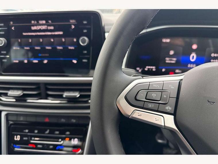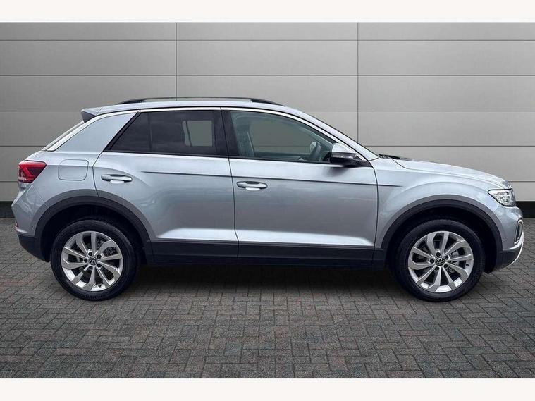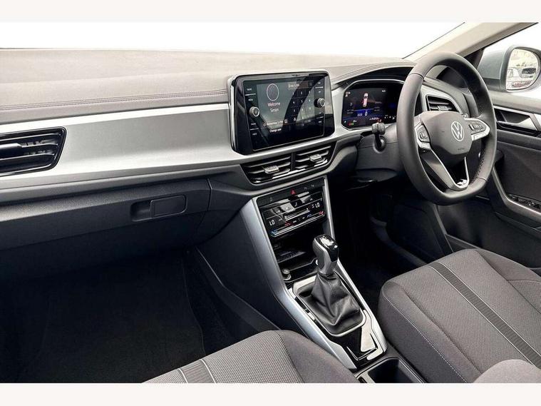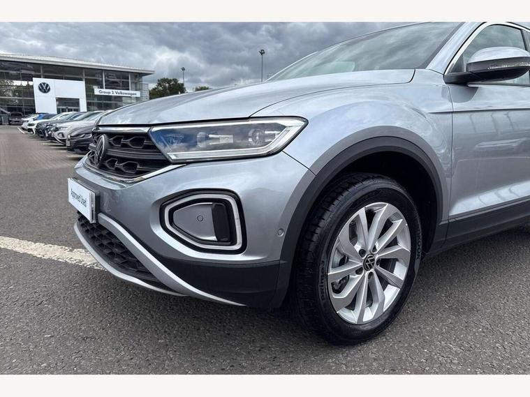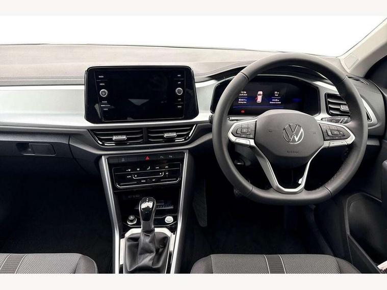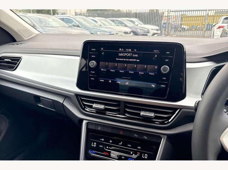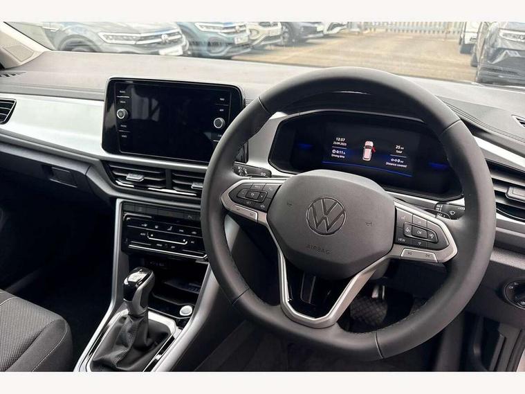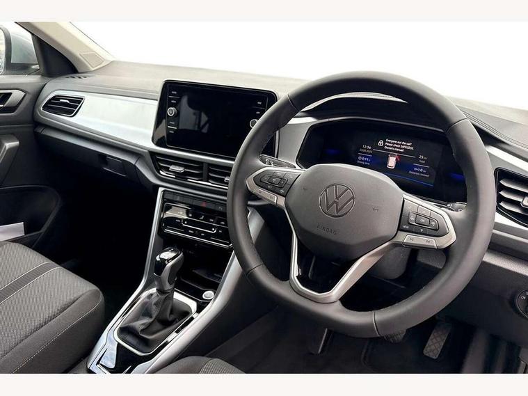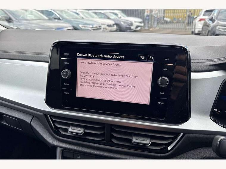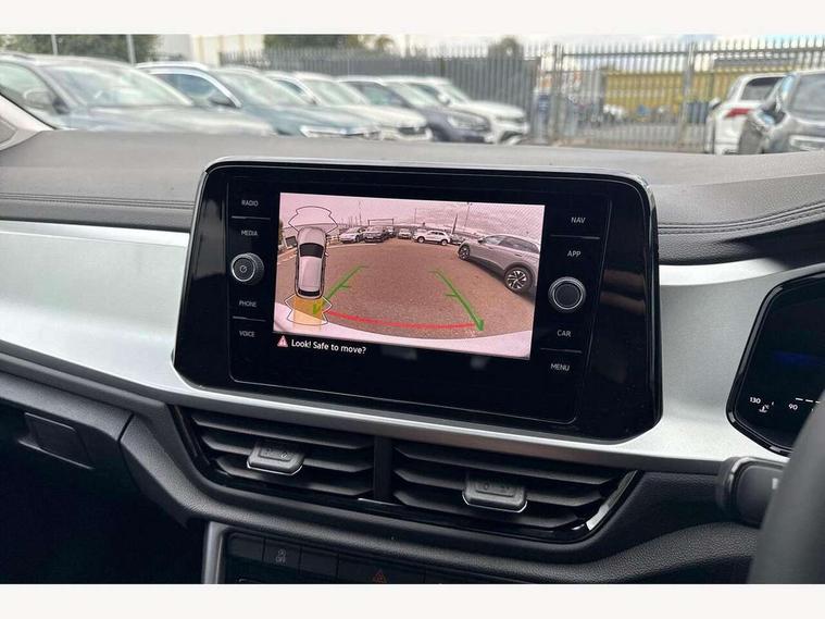 Advanced driver attention and drowsiness monitor, Dynamic road sign display, Emergency call service, Lane keeping system Lane Assist, Mobile phone interface, Modified key software - reduce switch off time for key status change to Long no motion, Online services, Park assist including front and rear parking sensors, Power assisted speed sensitive steering, Rear view camera, Service interval indicator, Tailgate/trunk lid release from outside, Think blue trainer driver tips and journey analysis, Warning sound and light for front seatbelts unfastened, Wireless app connect, Battery regeneration during braking, Front shock absorption, Rear shock absorption chassis with increased ride height, Start/stop function with battery regeneration, DAB Digital radio, Diversity antenna for FM reception, Music playback - MP3, WMA and AAC files, SD card slot, Simultaneous pairing of 2 compatible mobile devices, Title and cover art display, We Connect and We Connect Plus functionality, Auto dimming interior rear view mirror, Automatic hazard lights activation under emergency braking, Automatic headlight control with LED separate daytime running lights with coming/leaving home function, Black roof rails, Body coloured bumpers and radiator grille with chrome trim and front fog lamps with chrome bezel, Body coloured exterior mirror housings and door handles, Electrically adjustable and heated door mirrors, Extended roof spoiler, Exterior mirrors aspherical on driver side, convex on front passenger side, External USB type C socket and charging sockets, Front windscreen wiper with intermittent wipe and 4 position delay, Heated rear window, LED 3rd brake light, LED rear combination lamps, LED rear number plate lights, Power windows with comfort operation and circuit breaker, Privacy glass for rear side windows and rear window, Rain sensor, Rear exhaust tailpipe, Rear fog light on one side and reversing lights on both sides, Rear side wing doors, Rear wash/wipe with intermittent wipe setting, Remote electrically foldable door mirrors, puddle lights and reverse activated passenger's door mirror, 12V power socket in centre console, 3 rear head restraints, 3 seat bench in 2nd row, 4 load lashing points in luggage compartment, Air care climatronic air conditoning system with active combination filter and 2-zone temperature control, Black stitching for floor mats, Ceramique roof liner, Cloth upholstery, Door and side trim panel in cloth, Drawer under drivers seat, Driver/front passenger seat height adjustment, Front centre armrest, Front comfort sports seats, Front cupholders x 2, Front reading light, Front seat back storage pockets, Glove compartment door with light, Instrument lighting, white adjustable panel illumination, Interior ambient lighting and surround lighting, Interior light delay, Isofix child seat preparation, Leather gearshift handle, Load-through provision with cup holder when folded down ('Unsplit rear seat bench, split folding backrest, with centre armrest), Luggage compartment lighting, Lumbar support for driver's and front passengers seat, Non-folding front passenger seat backrest, Single front passenger seat, Storage compartment in left and right luggage area, Storage compartment in rear doors, Storage compartments in driver and front passenger doors, Sunvisors with illuminated vanity mirrors, Variable boot floor, height adjustable and removable, Driver assistance pack without proactive passenger protection - T-Roc Life/Match, 3 point height adj front seatbelts + pretensioners, 3 point seatbelts in outer rear with ECE label, ABS, Child locks on rear doors, City emergency braking and pedestrian monitoring, Driver and front passenger airbag with front passenger airbag deactivation, Driver and front passenger safety-optimised head restraints, Drivers seatbelt reminder, Electronic parking brake, Electronic Stability Control (ESC) inc EDL (Electronic Differential Lock) and ASR (Traction Control), Front and rear passengers curtain airbag system including front side airbags, Front disc brakes, Hill start assist, Predictive pedestrian protection, Rear disc brakes, Two tone horn, Tyre pressure loss indicator, Volkswagen roadside assistance, Alarm with interior protection, Keyless locking and starting system keyless access with safelock, Pewter matt decorative inserts for intrument panel, centre console and door panels at the front, Trims for alloy wheels,