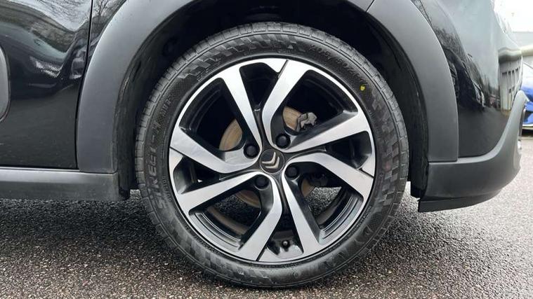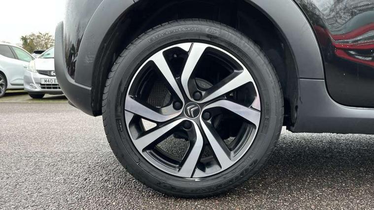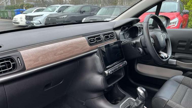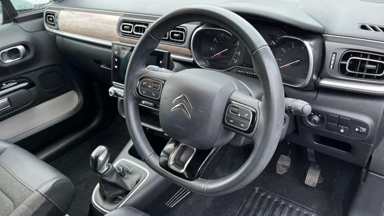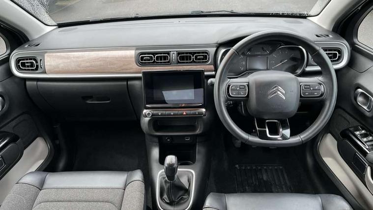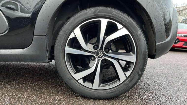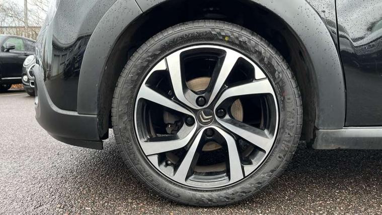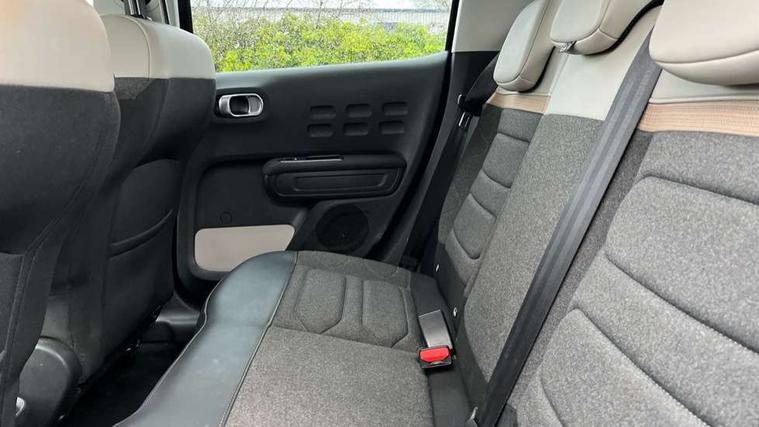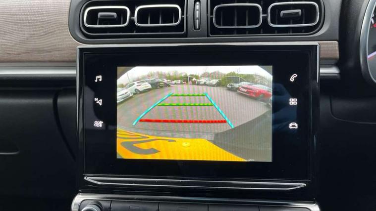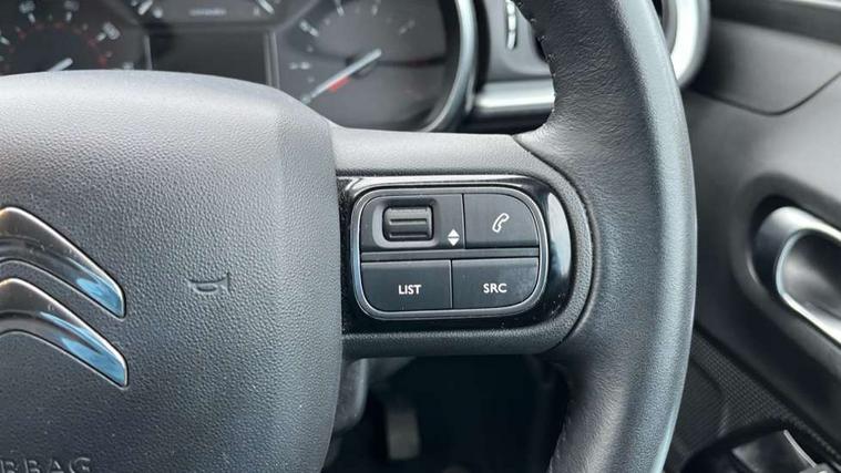 Citroen connect box emergency and assistance system, Citroen connected nav with DAB, 6 speakers, 7" captive touch screen, mirror screen includes apple carplay/android auto and bluetooth, Coffee Break Alert, Cruise control + speed limiter, eCall emergency call system, Exterior temperature display, Multi function trip computer, Reversing camera, Satin chrome surround instrument cluster with white LCD and analogue gauges, Variable assistance power steering, USB connection, 3D rear light signature, Airbump on side door panel, Auto dimming electrochrome rear view mirror, Auto headlights, Automatic activation of hazard warning lights, Body colour bumpers, Body colour door handles, Chrome decoration on front face, under chevrons and around daytime running lights, Citroen illuminated signature in LED headlights and LED daytime running lights, Dark tinted tailgate and rear side windows, Electric folding and heated door mirrors, Fog lights integrated into front bumper, Front sequential electric windows with one-touch open/close and anti-pinch system, Gloss black finish B pillar, LED Headlights, LED third brake light, Rear sequential electric windows with one-touch open/close and anti-pinch system, Rear side wing doors, Rear windscreen wiper with intermittent mode linked to vehicle speed and automatic activation when reverse gear selected, Roof colour rear view mirror caps, Variable front intermittent wipers, 1/3 to 2/3 split folding rear seat, 12V socket, 3 seat bench in 2nd row, Automatic air conditioning, Boot light, Cloth/leather effect upholstery, Driver and passenger's sun visor with courtesy mirror, Driver's central armrest, Driver's seat height adjustment, Front lighting panel with map reading lights, Front seats adjustable with forward back slide and adjustable backrest, Height adjustable front head restraints, Height/reach adjust steering wheel, ISOFIX mounting on outer rear seats with top tether and labels indicating fixing points, Leather steering wheel with gloss black + satin chrome elements and audio/telephone controls, Leather trimmed gear lever with leather effect gaiter and overstitching, Map pockets in back of driver and front passenger seats, Parcel shelf, Seatbelt unfastened on the move audible and visual alert for front and rear seats, Single front passenger seat, Storage space under touchscreen with rubber mat, Three rear headrests, Upholstered armrest in front and rear doors, Safety pack 1 - C3, Safety pack 2 - C3, Visibility pack with automatic lights - C3, ABS with Electronic brakeforce distribution and Emergency braking assistance, Driver and front passenger seatbelts with pyrotechnic pretensioners and force limiters, Driver's airbag, Electric child locks, ESP with anti skid system, Front passenger airbag, Front passenger airbag deactivation, Front side airbags + front/rear curtain airbags, Hill start assist, Manual parking brake with leather handle and chrome finish button, Mono-tone horn, Outer rear seats with pretensioners and force limiters, Three rear 3-point seatbelts, Tyre pressure monitoring system, Anti theft alarm, Automatic door and boot locking when moving off with automatic unlocking in case of impact, Central locking with locked indicator and interior one touch lock button, Immobiliser, Remote control central locking with two plip keys, 17" Vector diamond cut alloy wheels, Tyre puncture repair kit,