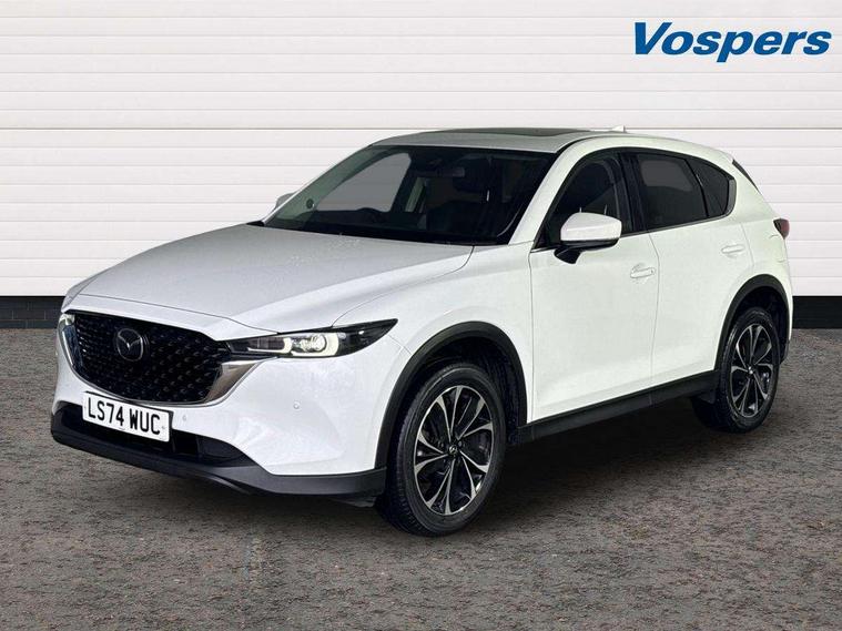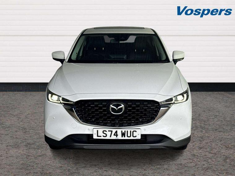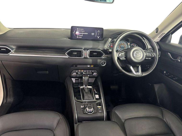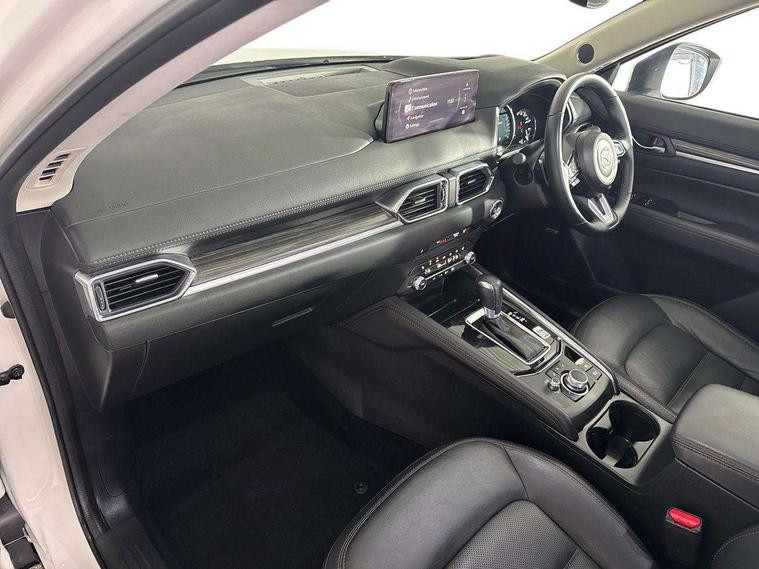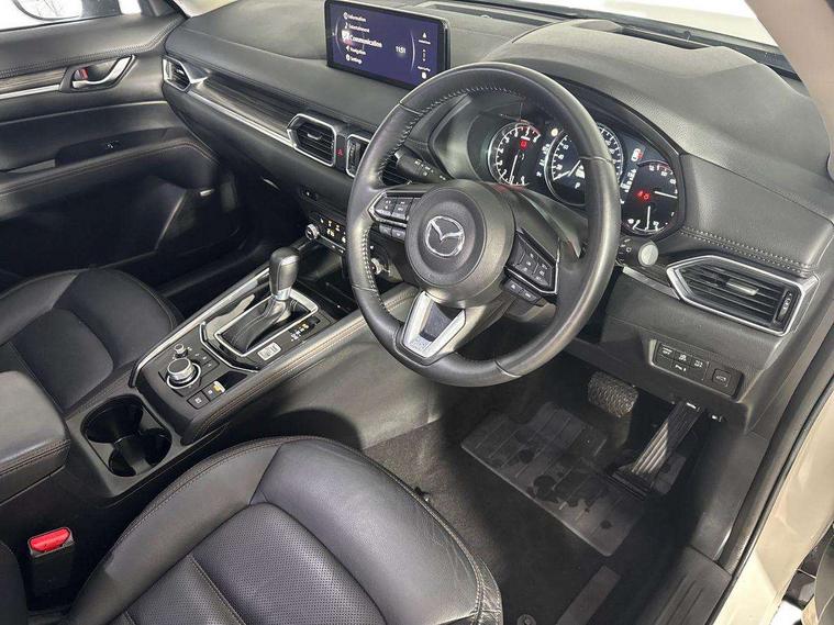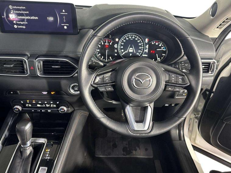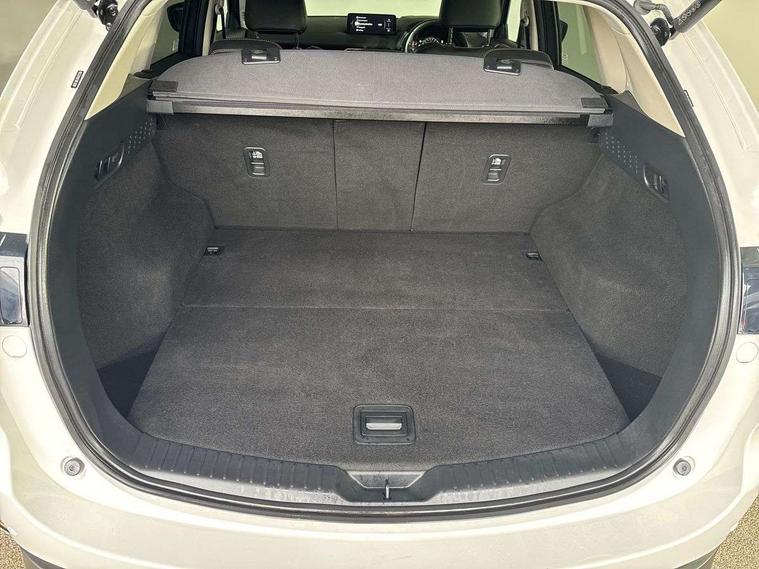 10.25" display with Mazda Connect infotainment, 7" colour TFT display, Advanced blind spot monitoring, Bluetooth connectivity with voice control, Collision prevention assist, Connected services, Cruising Traffic Support, Drive mode selector, Electric power steering, Emergency stop signalling system, Engine start/stop button, Forward collision warning, Front and rear parking sensors, Integrated navigation system, Intelligent speed assist, Lane departure warning system, Lane keep assist, Power liftgate, Qi wireless phone charging, Radar cruise control with Stop and Go, Rear cross traffic alert, Reversing camera, Service indicator, Traffic sign recognition (TSR), Trip computer, Windscreen projected colour active driving display (HUD) with memory, Wireless apple car play/android Auto, Cylinder Deactivation, i-stop, AM/FM radio, Bluetooth audio streaming, Bose premium sound system with 10 speakers, DAB Digital radio, Multimedia Commander including separate volume dial, Steering wheel mounted audio controls, Adaptive front lighting system, Auto dimming rear view mirror, Automatic headlights, Black inlay dashboard panel, Body colour door mirrors, Body colour roof spoiler, Body coloured front and rear black lower bumper mouldings, Coming/leaving home lighting function, Door mirror integrated indicators, Dual chrome tailpipes, Electric front/rear windows with one touch auto up/down, Front grille in gloss black finish with chrome signature wing, Gloss black B and C pillars garnish, High beam assist, Intermittent rear wash/wipe, LED auto levelling, LED daytime running lights, LED front fog lights, LED Headlights, LED third brake light, Power folding and heated door mirrors, Power tilt/slide sunroof, Privacy glass (rear side windows only), Rain sensing front wipers, Rear side wing doors, Satin black side mouldings, Scuff plates, Shark fin antenna, Signature LED rear combination lights, Variable intermittent front wash/wipe, Vinyl with wood grain metal inlay door trim panel, Windscreen wiper de-icer, 12v electrical power outlet, 3 seat bench in 2nd row, 3 stage heated front seats, 40:20:40 Karakuri fold-flat seat system, 6 way electric adjustable passenger seat, 8 way electric driver seat with lumbar support + memory, Cargo room flat floor board with waterproof undertray, Driver seat power slide, recline and height adjustment, Driver, Front passenger and two rear grab handles with coat hooks, Driver/passenger front seatback pockets, Driver/passenger sunvisors + illuminated vanity mirrors (drivers with ticket holder), Dual zone climate control, Folding centre armrest with 2 cup holders, Front and rear door pockets, Front centre storage with two cupholders, Front passenger seat power slide, recline and height adjustment, Heated steering wheel, Humidity sensor, Illuminated glovebox, Interior dome light with integral spotlight, ISOFIX child seat anchorage points attached on outer rear seats, Karakuri tonneau cover, Leather upholstery, Leather wrapped steering wheel and gear knob, Light roof lining, Luggage compartment LED lighting, Luggage compartment power outlet, Paddle shifts, Rear air vents, Rear headrests, Rear seat recline, Roof mounted sunglasses holder, Single front passenger seat, Three height adjustable head restraints, Tilt/height adjustable steering wheel, USB Connectivity (2x front Type-C, 2x rear Type-B), White interior LED illumination lighting, 3 point front seatbelts with pre-tensioners, 3 rear 3 point seatbelts, ABS, Advanced Smart City Brake Support - SCBS, Child locks on rear doors, Driver and front passenger side airbags, DSTC-Dynamic Stability and Traction Control, Dual front airbags, Electronic brake force distribution, Electronic parking brake with auto hold, ESP, Front and rear curtain airbags, Front passenger airbag deactivation, G-Vectoring control, Hill hold assist, Seatbelt reminder front and rear, Single stage passenger airbags, Smart brake support with forward obstruction warning, Tyre pressure monitoring system, Automatic door locking when moving off, Deadlock, Immobiliser, Power door locks, Remote central locking, Smart keyless entry, Thatcham Cat.1 alarm, 19" diamond cut black alloy wheels, Tyre repair kit,