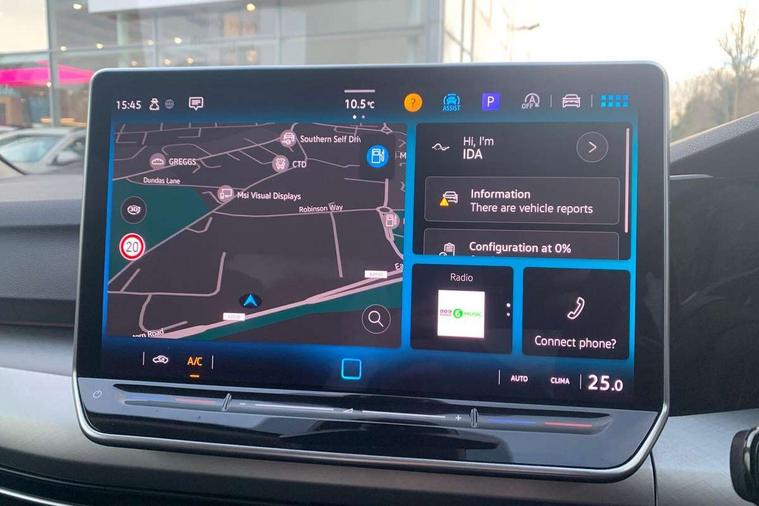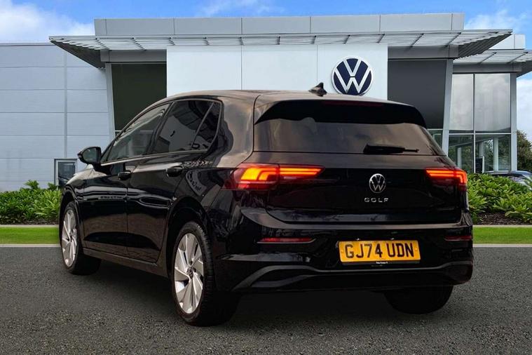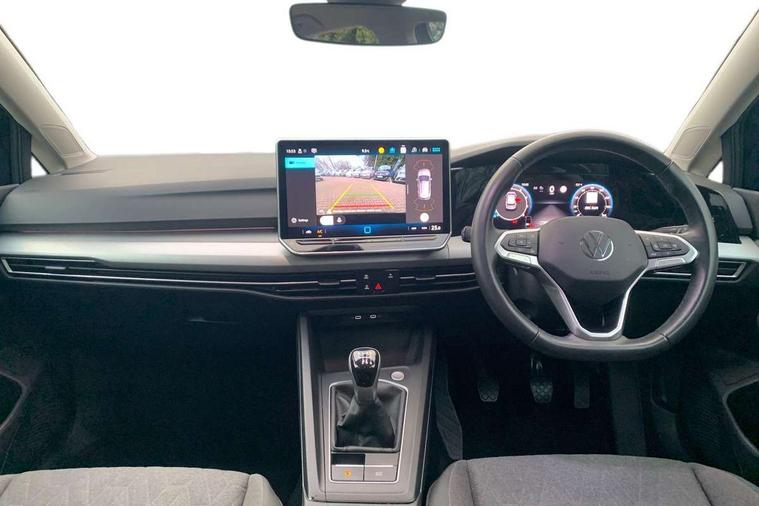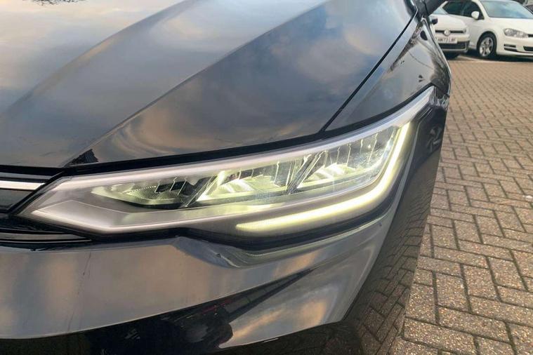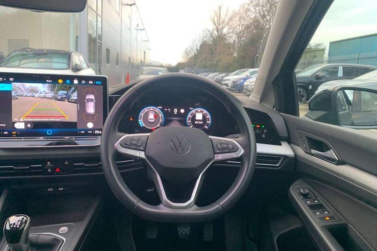 Activated carbon canister, Adaptive cruise control (ACC), Advanced driver attention and drowsiness monitor, Dynamic road sign display, E-Sim card for online connectivity, eCall emergency call system, Multi-color Digital cockpit pro, selection of different info profile possible, Multifunction front facing camera for distance control, Navigation system, Oncoming vehicle braking when turning including swerve support, Preparation for light assist system, Speed limiter, Speedo, rev counter, electronic odometer, trip, service interval display, exterior temperature and fuel gauge, Voice enhancer and voice control, Warning signal and warning light for front and rear seatbelts not fastened, We connect plus preparation, We connect preparation, Wireless app connect, Petrol Particulate Filter, Start-stop system with battery regeneration (recuperation - energy recovery during braking), XDS electronic differential lock for improved traction and handling, 2 USB C ports in front, 2 USB charging sockets on the centre console in the rear charging capacity upto 45W, Comfort telephony + wireless charging, without wireless aerial connection, Digital radio reception (DAB), Diversity antenna for FM reception, Gaming platform via car app, Infotainment system with 12.9" display, Mobile phone interface with inductive charging feature, 3rd brake light, Auto dimming rear view mirror, Auto headlights, Automatic headlamp activation with Coming home and Leaving home feature, Body colour door handles, Body colour door mirrors, Exterior ambient lighting with illuminated door handles, Exterior mirrors convex on the left and aspherical on the right, Front and rear electric windows, Heat insulating windshield made of laminated glass, LED daytime running lights, Rain sensor, Rear exhaust tailpipe, Rear fog light on one side and reversing lights on both sides, Rear side wing doors, Rear tinted glass 65% light absorbing from B pillar backwards, Rear windscreen washer and wiper with interval delay, Remote electrically foldable door mirrors, puddle lights and reverse activated passenger's door mirror, Standard bumpers, Welcome light with surround lighting, 12V socket in front centre console, 12V socket in luggage compartment, 3 rear head restraints, 3 seat bench in 2nd row, Chrome plated radiator grille inserts, air vent surrounds and light switch surrounds, Front centre armrest, Front head restraints, ISOFIX anchors for child seats on outer rear bench seats and on front passanger seat compatible for i-Size, Leather gearshift handle, Luggage compartment lighting, Rear cupholder and loadthough, Single front passenger seat, Soul black instrument panel, Split folding backrest with centre armrest and unsplit rear seat bench, Standard pedal cluster, Storm grey roof lining, Sun visors with illuminated vanity mirrors, Parking and comfort pack - Golf Estate/Hatchback, 3 point height adj front seatbelts + pretensioners, 3 rear three point seatbelts, ABS, Autonomous emergency braking front assist with pedestrian and cyclist monitoring, Child locks on rear doors, Driver and front passenger airbag with front passenger airbag deactivation, Electronic parking brake with auto hold, ESC (Electronic Stability Control), Extended pedestrian protection measures, Rear disc brakes, Two tone horn, Tyre pressure loss indicator, Volkswagen roadside assistance, Alarm with interior protection, Anti theft wheel bolts, Keyless start with SAFE lock, Preparation for alcohol interlock, Nature cross brushed decorative inserts for dashboard and front door panels,