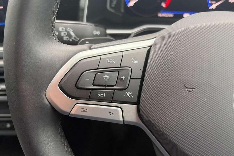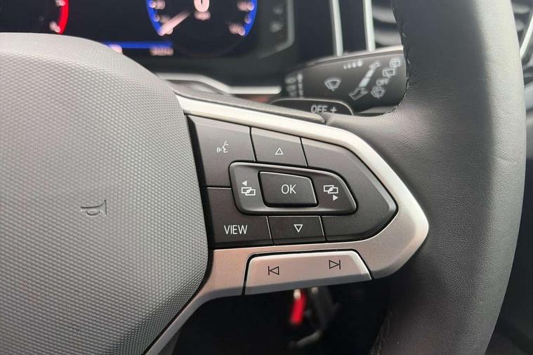Adaptive cruise control, Advanced driver attention and drowsiness monitor, Digital cockpit pro - 10.25" high resolution TFT dash display screen with customizable menus and information, Driving profile selection, e-Call (emergency call), Power Steering, Travel assist including emergency assist, Washer fluid level indicator, Wireless Charging including Bluetooth, Start-stop system with battery regeneration (recuperation - energy recovery during braking), XDS electronic differential lock for improved traction and handling, Digital radio reception (DAB+), WeConnect plus, Ambient lighting with logo projection, Aspherical driver's exterior mirror, Auto headlights, Body coloured bumpers, Body coloured door handles, Cornering headlights, Electric windows, External USB type C socket and charging sockets, LED rear combination lamp, LED third brake light, Left convex exterior mirror, Power folding adjustable/heated exterior mirrors and front passenger exterior mirror lowering function, Rear fog light on one side, reversing light on both sides, Rear side wing doors, Rear wash/wipe with intermittent wipe setting, 12V socket in centre console, 2 front reading lights, 3 rear head restraints, 3 seat bench in 2nd row, Air care climatronic air conditoning system with active combination filter and 2-zone temperature control, Black carpets, Black roof lining, Child seat anchor for child seat system i-Size, 2x top tether and child seat anchor in front on front passenger side, Chrome bezel for instrument cluster, vents, door handles + gear shift, Driver and front passenger seat height adjustment, Front + rear carpet mats, Front centre armrest, Front footwell illumination, Front sports comfort seats, Heated front seats, Height and reach adjustable steering wheel, Interior ambient lighting and surround lighting, Karoso artvelours cloth upholstery, Leather trimmed gear knob, Leather wrapped multifunction steering wheel, Luggage compartment floor, Luggage compartment light, Lumbar support for driver's and front passengers seat, Seat covers in grey + titanium black, Single front passenger seat, Split folding backrest with centre armrest and unsplit rear seat bench, Stainless steel pedals, Storage compartment under front seats, Sun visors with illuminated vanity mirrors, Black design pack - Taigo Black Edition, Black roof pack with mirror housing - Taigo, IQ.LIGHT - LED matrix headlights pack - Taigo, Light and Sight pack including High beam assist - Taigo, 2 x 3-point seatbelts/outer rear seats with ECE label, 3-point seat belts in front with pretensioner and height adjustment, 3-point seatbelt for centre rear seat, Adaptive driver and front passenger airbags with passenger airbag deactivation function, Driver and front passenger safety-optimised head restraints, Electronic stability control, Extended and predictive pedestrian/ cyclist protection, Front and rear disc brakes, Front curtain and side airbags with center airbag, Hill start assist, Manual rear child locks, Single tone horn, Tyre pressure loss indicator, Anti-theft alarm system with interior monitoring, backup horn, and towing protection, Grey anodised matte decorative inserts in dash and front door panels, 18" York black alloy wheels with anti theft wheel bolts, Breakdown kit, Low rolling resistance tyres,