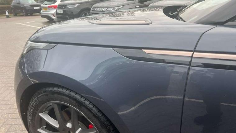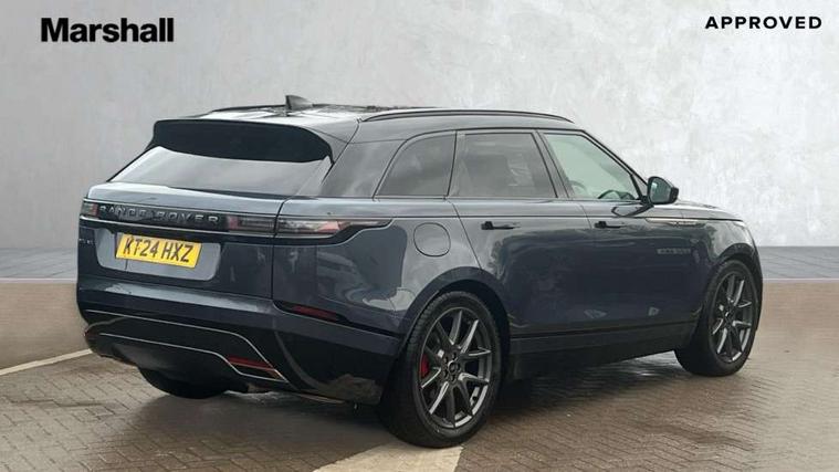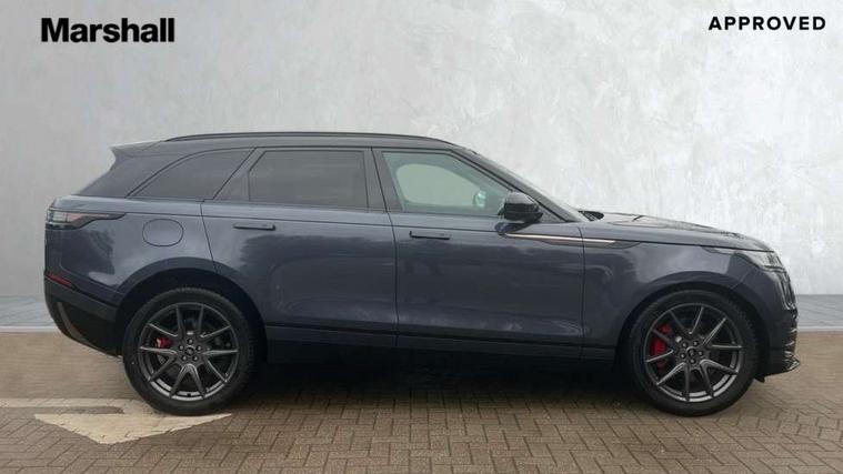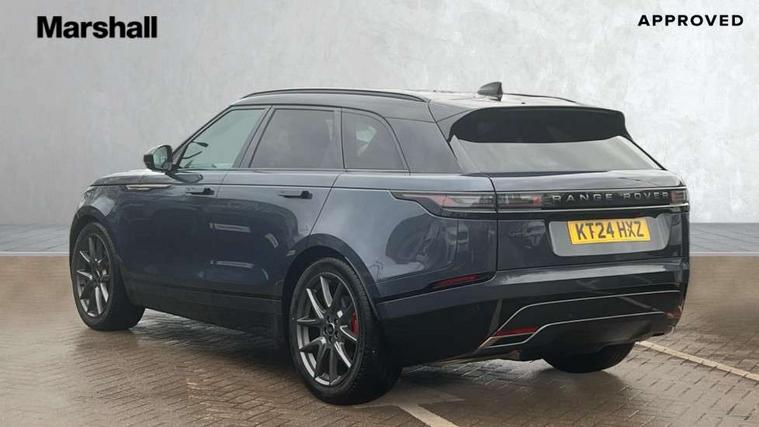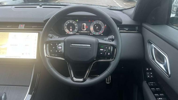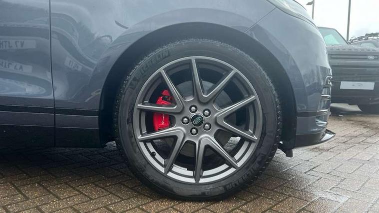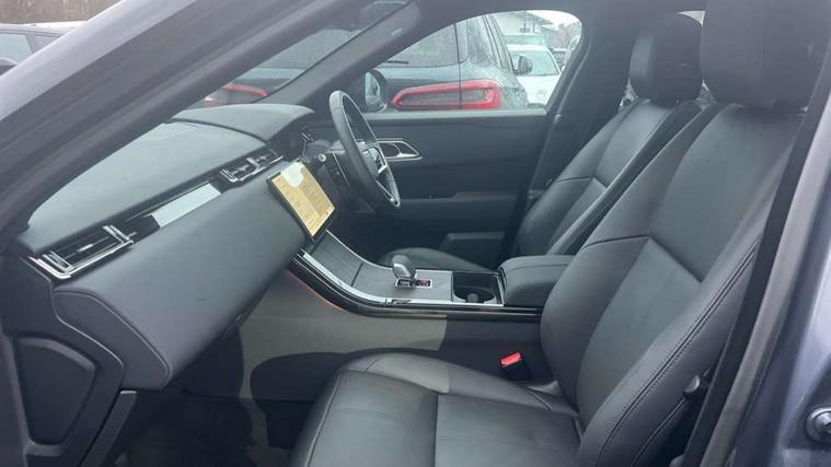 Android Auto, Apple CarPlay, Blind spot assist, Bluetooth connectivity, Brake pad wear indicator warning light, Driver condition monitor, eCall emergency call system, Front and rear parking aid, InControl remote, Land Rover InControl apps, Lane keep assist, Pivi pro with connected navigation, Rear traffic monitor, Service indicator, Speed proportional electronic power assisted steering (EPAS), Traffic sign recognition with adaptive speed limiter, Trip computer, Voice control system, Wireless device charging, 8 speed automatic transmission, Adaptive dynamics, All terrain progress control, Coil suspension system, Open differential with torque vectoring by braking, Single speed transfer box, DAB radio, Steering wheel mounted controls, 3rd brake light, Acoustic laminated windscreen, Auto dimming interior rear view mirror, Auto high beam assist, Automatic headlamp levelling, Automatic headlights, Body coloured bumpers, Boot protection plate, Electric windows with one touch open/close and anti trap, Flush deployable exterior door handles, Follow me home headlights, Heated rear window with timer, Heated washer jets, Heated windscreen, LED headlights with signature DRL, Metal front tread plates, Metal load space scuff plates, Power fold, auto-dimming, heated door mirrors with memory and approach lights, Rain sensor windscreen wipers, Rear animated directional indicators, Rear fog lights, Rear side wing doors, Rear wash/wipe, Tailgate/boot lid spoiler, Trailer stability assist, Velar badge, 14 way electrically adjustable front seats with driver's memory function, 3 seat bench in 2nd row, Ambient lighting, Bright metal pedals, Driver/passenger sunvisors with illuminated vanity mirrors, Ebony morzine headlining, Electrically adjustable steering column, Heated steering wheel, Isofix system on outer rear seats, Loadspace cover, Overhead lighting console, Overhead stowage for sunglasses, Passive front headrests, Rear air vents, Rear centre headrest, Single front passenger seat, Twin front cupholders, Twin sliding front centre armrest, Online pack with data plan - Velar, Power socket pack 2 - Velar, 380mm front brakes and 325mm rear brakes, 3x3 point rear seatbelts, Anti-lock braking system (ABS), Cornering brake control, Curtain airbags, Customer configurable autolock, Door side intrusion beams, Driver airbag, DSC - Dynamic Stability Control, Electronic brake force distribution, Electronic parking brake, Electronic traction control, Emergency braking, Front and rear seatbelt reminder, Hill descent control, Hill launch assist, Low traction launch, Passenger airbag, Power operated child locks, Rear airbags, Roll stability control, Side airbags, Tyre pressure monitoring system (TPMS), Unpainted brake calipers, Global lock and unlock switch on driver door, Immobiliser, Intrusion sensor, Keyless entry, Lock only switch on front passenger door, Locking wheel nuts, Perimetric alarm, Remote central locking, All season tyres,