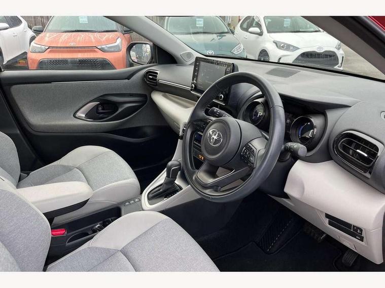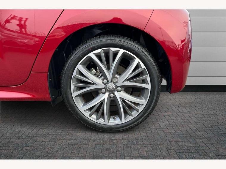 Adaptive cruise control, Adjustable speed limit with speed warning, Blind spot monitoring, Bluetooth connectivity, Colour binocular inspired displays with digital speedometer, E-call, Electric power steering, Front and rear parking sensors with intelligent clearance sonar and automatic braking, Hybrid energy display, Multi information display switches on steering wheel, Reversing camera, Smartphone integration with Apple CarPlay and Android auto, Vehicle Stability Control (VSC), 6 speakers, 8" Multimedia display touch screen, USB connection, Acoustic windscreen glass, Automatic headlights, Automatic windscreen wipers with rain sensor, Automatically retractable door mirrors, Body coloured door mirrors, Electric adjustable heated door mirrors, Follow me home headlights, Front auto power windows with anti jam protection, Full LED rear lights, LED daytime running lights, LED front fog lights, LED Headlights, LED High mounted stop lamp, Painted front grille, Rear auto power windows with anti jam protection, Rear privacy glass, Rear side wing doors, Rear spoiler, Rear wiper, Satin lower front grille, Shark fin antenna, Turning signal integrated indicators in door mirrors, 3 adjustable rear headrests, 3 spoke leather steering wheel, 60/40 split folding rear seat, Active headrests, Adjustable boot height, Coat hooks in rear grab handles, Cup holders (2 front & door), Data Communication Module (DCM) connected services, Dual zone automatic air conditioning, Fabric seat with partial synthetic leather upholstery, Front armrest, Front sport seats, Glovebox, Height adjustable driver's seat, Height adjustable passenger seat, Isofix seat fixing, Leather gearshift, Map pockets on the backs of the front seats, Pollen filter, Shopping bag hooks, Single front passenger seat, Tilt/telescopic steering column, 3 point seatbelts on all rear seats, ABS+EBD+Brake assist, Electronic parking brake, Emergency brake light system (EBS), Front passenger airbag on/off switch, Front seatbelt reminder, Hill start assist control (HAC), Rear child proof door locks, Rear seat belt reminder, Supplemental Restraint System (SRS) 8 airbags: Driver & passenger's airbags, dual side curtain airbags, side impact airbags, front centre airbag, Toyota Safety Sense 2, Precollison + Night time Pedestrian & Cyclist Detection, Lane Trace Assist, Auto High Beam, Intelligent ACC & Road Sign Assist, Tyre pressure warning system, Alarm/immobiliser, Keyless smart entry with push button start, Remote powered central double locking doors, Satin chrome interior styling, Soft touch instrument panel, Space saver spare wheel,