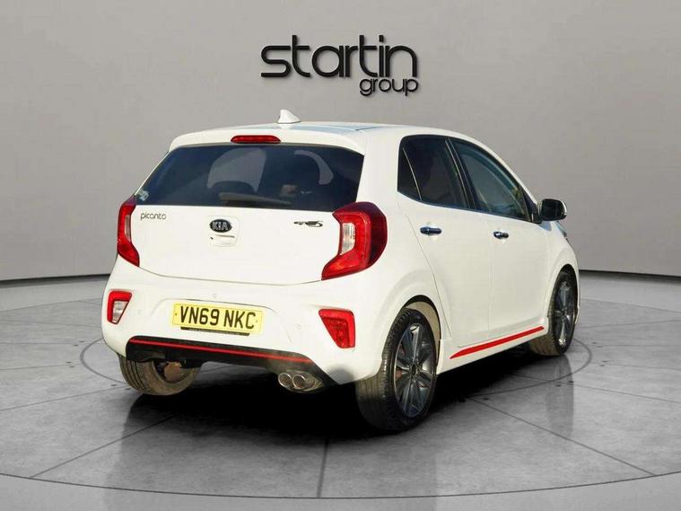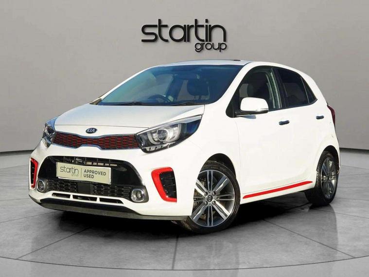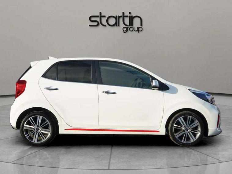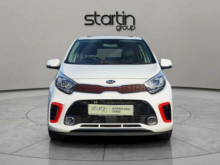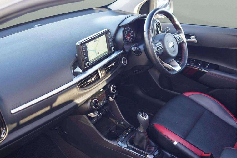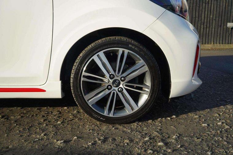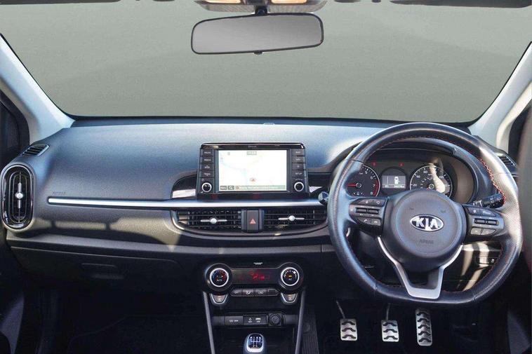 7" Touch screen satellite naviagtion with RDS and DAB, Apple car play/Android Auto with voice control, Cruise control + speed limiter, Digital clock, Emergency stop signalling system, External temperature gauge, Kia connected services, Motor driven power steering, Rear parking sensors, Reversing camera system with dynamic guidelines (Integrated into centre fascia screen), Tachometer, Trip computer, Wireless Smartphone charger, 6 speaker audio system, Bluetooth with music streaming, Steering wheel mounted controls, USB and auxiliary socket, Automatic headlights, Bi-function projection headlights, Black radiator grille with chrome surround, Body colour bumpers, Body colour side sill mouldings, Body coloured mirrors and chrome exterior handles, Chrome side window trim, Day/night rear view mirror, Electric adjustable/heated/folding door mirrors with LED indicators lights, Electric sunroof, Front and rear electric windows with drivers's auto up/down function, Front fog lights, Headlamp levelling, Heated rear window, High mount brake light, LED daytime running lights, LED rear lights, Privacy glass - Rear windows and tailgate, Rear fog lights, Rear wash/wipe, Sports front and rear bumpers with twin exhaust, Tinted glass, Variable front intermittent wipers, Visible VIN plate, Welcome and follow-me home light functionality, 12V power point front, 3 x passenger assist grips, 60/40 split/folding 2nd row of seats, All round height adjustable headrests, Aluminium pedals, Automatic air conditioning, Black and red accents front door armrest, Centre Console with Storage Box and Sliding Armrest, Coat hooks, Cupholders in centre console, Driver and front passenger sunvisors with driver's side illuminated vanity mirrors, Driver seat height adjust, Dual Height Luggage Area Floor, Faux leather upholstery, Front cabin lights, Glovebox, Heated front seats, Heated steering wheel, High gloss lower centre fascia trim, door armrest and air vents, ISOFIX Child seat top tethers and anchor fixings, Leather trimmed steering wheel and gearshift, Luggage area light, Luggage area parcel shelf, Luggage net with hooks, Passenger front seatback pockets, Satin chrome interior door handles, Slide/reclining front seats, Tilt adjustable steering wheel, Advanced Driver Assistance Pack - Picanto, 3x3 point rear seatbelts, ABS/EBD, Automatic unlocking of doors in case of impact, Dual front airbags, ESC + BAS + VSM + HAC, Front seatbelt height adjusters, Front seatbelt pretensioners + load limiters, Passenger airbag deactivate switch, Rear child proof door locks, Seatbelt warning, Side impact protection, Traction control, Twin curtain airbags, Twin front side airbags, Tyre pressure monitoring system, Anti theft alarm, Engine immobiliser, Locking wheel nuts, Smart key with engine start/stop button, High gloss black centre fascia, 16" alloy wheels, Tyre mobility kit,