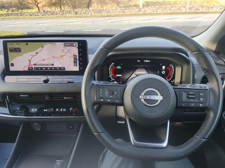 Android auto/Apple CarPlay (Wired), Blind spot warning, Drive modes (sport, normal, eco), Electric speed sensitive power steering, Emergency and breakdown call, Front and rear parking sensors, Full Digital 12.3" TFT Digital Combimeter, Google maps services - search, weather, 3D maps and Google street view, Idle stop/start system, Intelligent around view monitor, Intelligent Cruise control (ICC), Intelligent driver alert system, Intelligent forward collision warning, Intelligent lane intervention, Lane departure prevention, Lane departure warning system, Maximum speed limiter, Moving object detection, Nissan connect 12.3 inch touchscreen infotainment system, Nissan connect navigation, Push button starter, Rear cross traffic alert, Rear view camera, Remote control services - door locks, lights, horn and car locator, Telematics - notifications and connectivity services, TomTom live traffic services, Traffic sign recognition with legal speed adjustment, Trip computer, Virtual personal assistant and firmware over the air capability, Wireless apple carplay, 6 speakers, AM/FM audio system with DAB, Bluetooth audio streaming, Front USB connections (Type-A and Type-C), Rear USB charging only ports (Type-A and Type-C), Auto dimming rear view mirror, Auto rear wiper when reversing, Automatic hazard signal with emergency stop signal, Body colour mirror caps, Body coloured door handles, Bodyside mouldings, Chrome side window finisher, Door handle with button, e-POWER badging, Electric auto folding door mirrors, Electrically adjustable and heated door mirrors with LED turn indicator, Follow me home headlights, High beam assist, Intelligent auto headlights, LED daytime running lights, LED Headlights, LED rear lights, One touch front and rear electric windows with remote opening and closing, Partially body coloured bumpers, Privacy glass, Rear bumper with graphite insert, Rear reversing light (bulb lighting), Rear roof spoiler, Rear side wing doors, Rear styling plate, Shark fin antenna, Splash free rain sensing wipers, Super UV and infrared cut glass, Three blink turn signal, 12v power socket in dashboard and luggage, 2x Rear coat hooks, 3 bench rear seats in 2nd row, 3 rear headrests, 4 folding assist grip, 6-way manually adjustable driver's seat, 60/40 split folding rear seat bench, Ambient lighting around centre console, Centre console storage tray, Chrome interior door handles, Cloth monoform upholstery, Driver and front passenger sunvisors with illuminated vanity mirrors, Driver seat back pocket, Dual zone automatic climate control with pollen filter, e-POWER shifter, Front and rear door storage, Front centre console and armrest, Front cupholders x 2, Front door with bottle holders, Glovebox with light, Hard trunk cover, Height adjustable driver's seat, Height adjustable front headrests, Height adjustable passenger seat, Leather steering wheel, Luggage board system, Luggage space lighting, Manually adjustable passenger (slide recline + lifter), Multifunction steering wheel, Passenger seat back pocket, Rear armrest with 2 cupholders, Rear door bottle holders, Single front passenger seat, Soft PVC kneepad, Steering wheel switches, Sunglasses holder, Tilt/telescopic adjustable steering wheel, Two rear isofix child seat anchorage points with top tether, Welcome light and console tray ambient lighting, 3x3 point rear seatbelt pretensioners + load limiters, ABS with EBD and brake assist, Active brake limited slip, Auto hold function, Child locks on rear doors, Curtain and front side, far side airbags, Driver and passenger airbags, Driver, passenger and 2nd row rear seat belt reminder, Electronic parking brake, Front seatbelt pretensioners + load limiters, Height adjustable front seatbelts, Hill start assist, Intelligent blind spot intervention, Intelligent front emergency braking with pedestrian, cyclist recognition and junction assist, Intelligent rear automatic braking, Tyre pressure monitoring system, Vehicle dynamic control, Capless fuel filler, Engine immobiliser, Intelligent Key, Remote central door locking with deadlocking, Thatcham Cat.1 alarm, Interior instrumental panel B finisher, 18" Diamond cut alloy wheels, Tyre puncture repair kit,